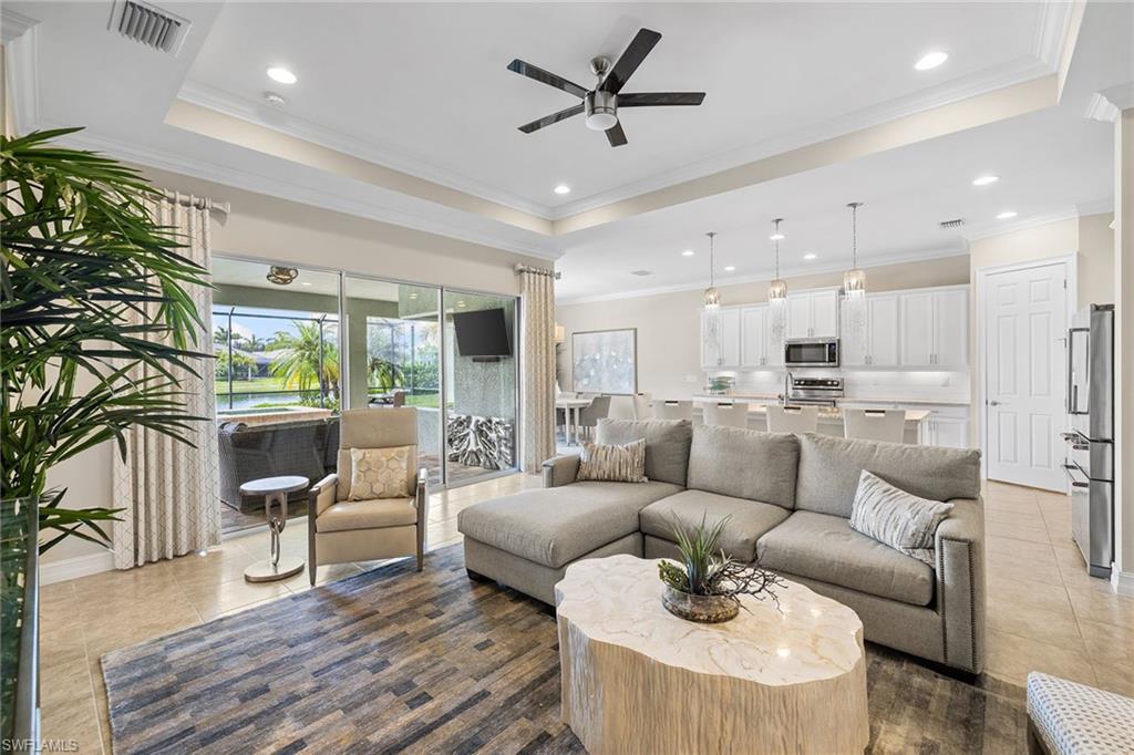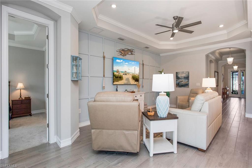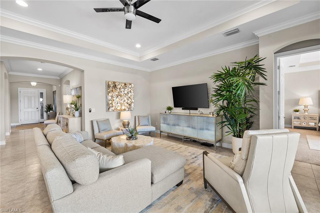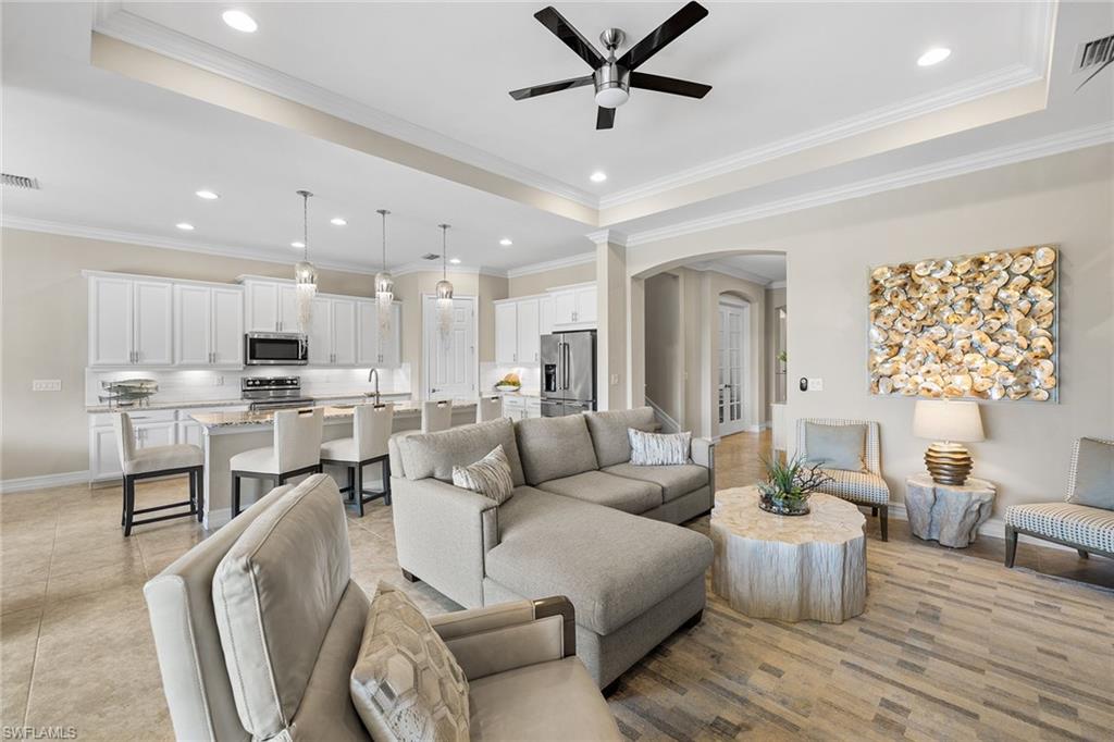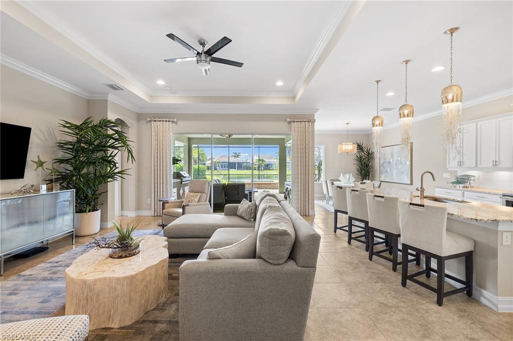Welcome to this beautifully upgraded Ashbury floorplan, offering breathtaking southern exposure and long lake views. Designed for comfort and elegance, this residence features a spacious three-car garage and an open-concept layout that invites natural light to flow throughout. Inside, you’ll find a custom board and batten wall, wood-look tile flooring, custom light fixtures and crown molding in the main living areas, adding warmth and sophistication. The gourmet kitchen is a chef’s dream, boasting quartz countertops, an induction cooktop and a wine cooler, ideal for entertaining. Step outside to your private oasis, where a heated saltwater pool and spa overlook the tranquil lake, ideal for hosting gatherings or simply unwinding in the sunshine. Electric Storm Smart roll-down screens provide peace of mind. In the amenity-rich Naples Reserve, residents enjoy a resort-style clubhouse, pool, private island, tiki bar, fitness center, tennis, pickleball and more. Just minutes from Naples' pristine beaches and upscale dining, this home offers a blend of luxury and lifestyle. Schedule your private tour today!