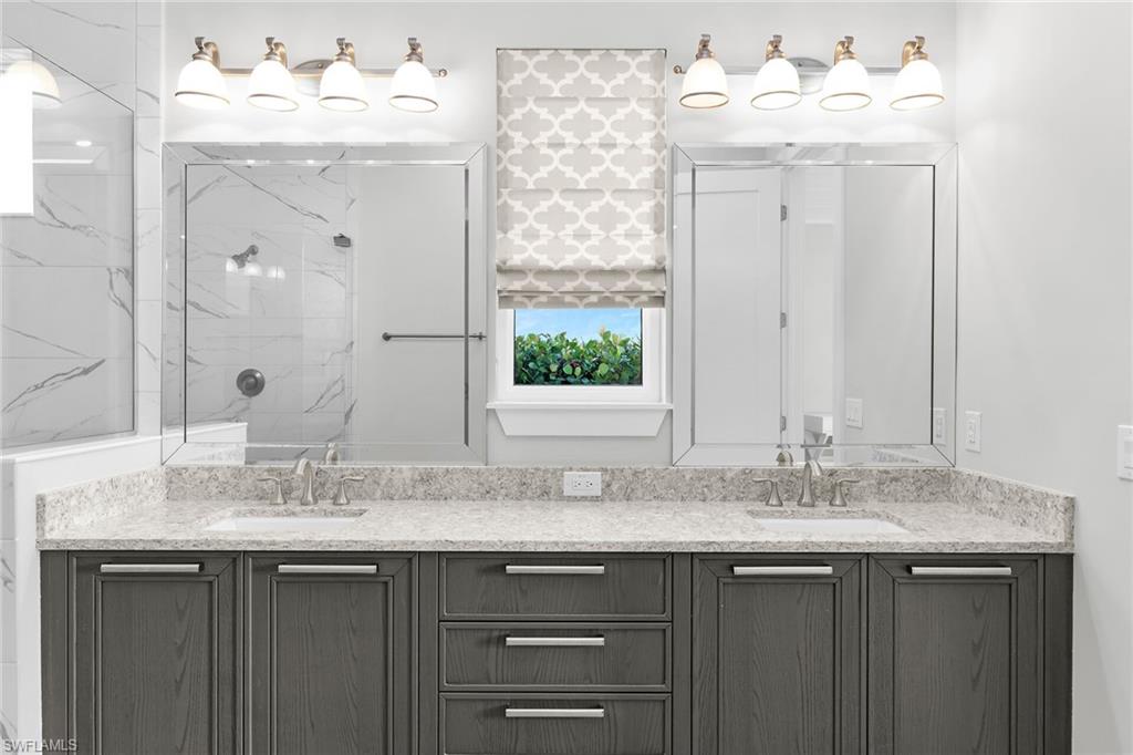 Absolutely Beautiful, Coastal decor with class and functionality. Professionally decorated to give the home a feel of sophistication and comfort. Spacious rooms throughout, this floor plan offers private bedrooms with en suite bathrooms. A large Primary bedroom features two walk in closets and a bathroom with a dual sink vanity, private walk in water closet and walk in shower. Expansive Lanai with heated pool and spa, outdoor kitchen and outdoor half bathroom, all surrounded by tropical landscaping providing privacy and beauty. Naples Reserves is an award winning community with so much to offer. Enjoy the resort style amenities including a pool, beach volleyball, bocce ball, tennis, pickle ball, fitness center, Tiki bar and restaurant. This community is close to both downtown Naples and Marco Island, come and enjoy this Tropical Oasis in Naples Reserve.