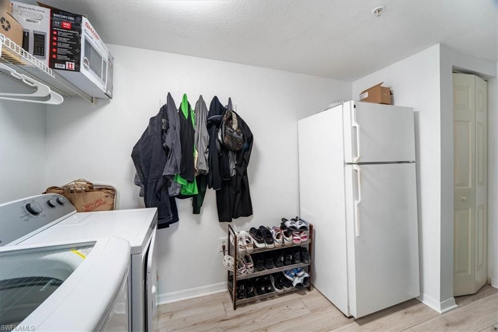 Spacious Living Area: 1500 sq-ft of open-concept living space, fully tiled for easy maintenance and a sleek, modern look. Crown Molding throughout living and kitchen area. Gourmet Kitchen: Granite countertops, black stainless steel appliances, and ample cabinet space make this kitchen a chef's dream. Luxurious Bathrooms: The master bathroom features an enlarged walk in shower, double sink vanity and both bathrooms are adorned with granite countertops. Energy Efficiency: Equipped with an instant hot water heater for lower electric bills. Convenient Storage: Additional storage cabinets in the laundry room and a water softener system for your convenience. Parking: Comes with a deeded carport and an additional open parking spot. Community Highlights: The (SIRS) Report was completed December 2024. Association fully funded per the study requirements, 2025 assessment includes full funding of reserves as directed by study. Roofs new in 2024. Pool and Spa completely refinished in 2024, pool deck pavers and pool furnishing replaced 2024, exterior of all buildings painted 2025. Very well managed community with no upcoming expected special assessments. Enjoy the convenience of being in a premier North Naples location, close to top-rated schools, shopping, dining, and beaches. This upgraded home is perfect for those seeking a blend of luxury, convenience, and efficiency. Don’t miss the opportunity to make this your new home in Fairway Preserve!