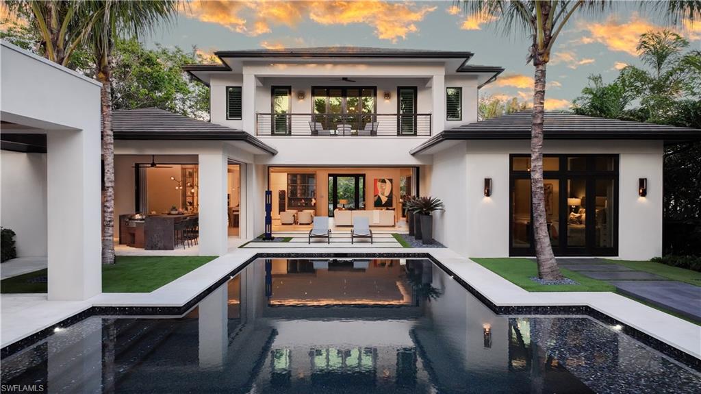 Step into refined coastal living with this exceptional new construction home located just two blocks from the beach in the heart of Olde Naples. Designed by Stofft Cooney Architects, built by Equinox Construction Group, and styled by Freestyle Interior Design, this residence blends timeless elegance with modern functionality. The spacious great room floor plan invites seamless indoor-outdoor living, ideal for both relaxed family life and sophisticated entertaining. A chef’s kitchen equipped with premium appliances and a separate prep kitchen offers versatility for everyday meals or catered gatherings. The home features five bedrooms, five full baths, and three half baths, including two luxurious master suites, one on each level, providing privacy and flexibility for family and guests. Additional spaces include a club room, two laundry rooms, and thoughtfully designed living areas throughout. A three-car garage with alley access preserves the classic charm of the front facade while adding convenience. With white oak wood flooring, high-end finishes, a whole-house generator, and an unbeatable location in one of Naples’ most coveted neighborhoods, this property presents a rare opportunity to enjoy brand-new luxury living just moments from the Gulf of Mexico.