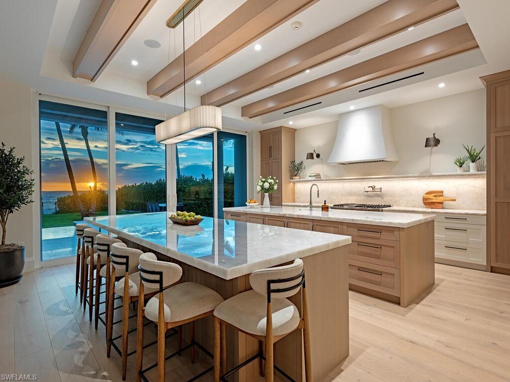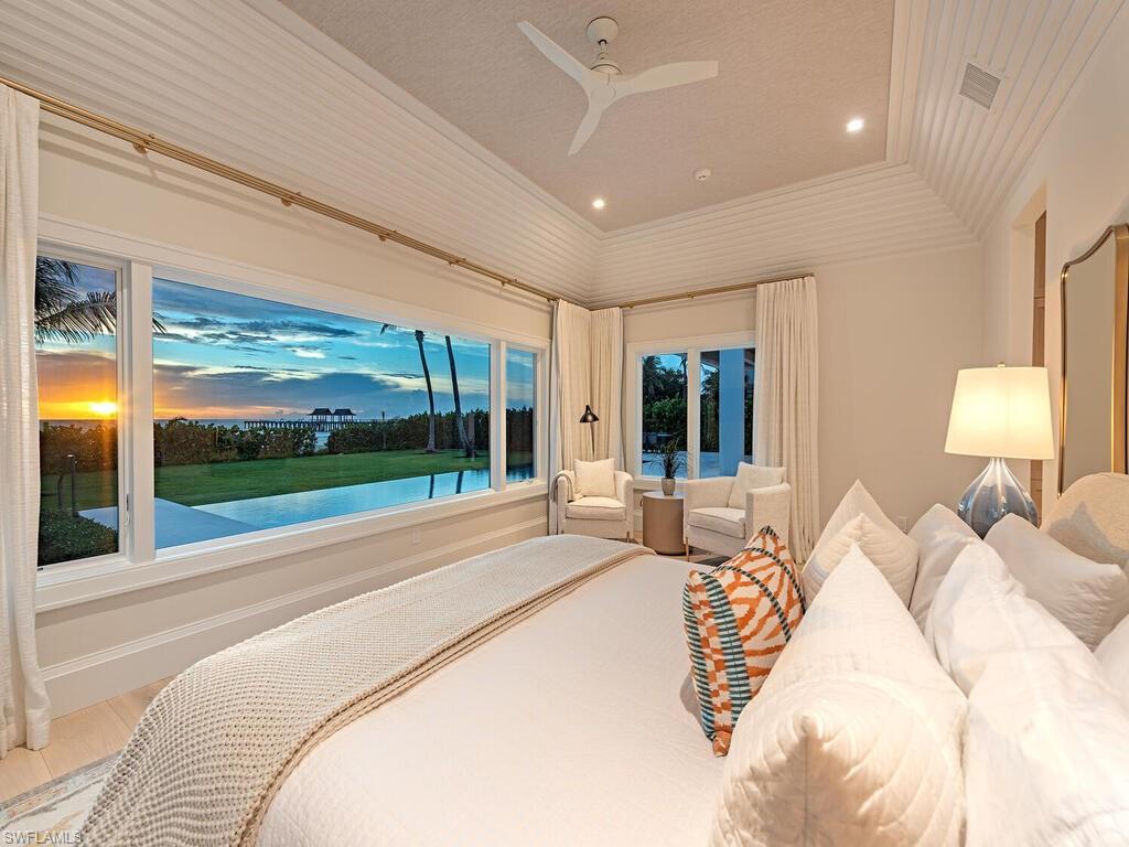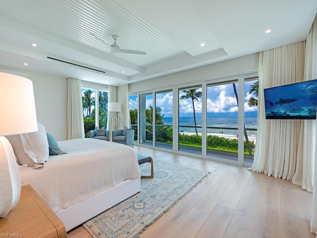 This Gulf-front masterpiece offers an unparalleled blend of location, luxury, and resort-style living. Elevated above FEMA height standards, the home has experienced no water intrusion in living areas during recent weather events. The residence combines historic charm with sophisticated elegance. Originally built in 1886, the home underwent an extensive three-year renovation and reconstruction, completed in 2024 with Kukk Architecture. Now practically new, the residence preserves its heritage, grandfathered footprint, and distinctive character while offering modern luxury throughout. The 6,100-square-foot, fully air-conditioned living space maximizes its premier beachfront setting. The well-designed layout offers five spacious bedrooms, five full and two half baths, a private study, and a flexible sixth bedroom. Sweeping Gulf views provide a stunning backdrop. The gourmet kitchen boasts dual Cristallo quartzite islands, top-tier appliances, custom cabinetry, and a service kitchen. Additional features include a private gated entry, two fireplaces, elevator, whole-house generator, automated screens/shutters, water filtration, and ultra-efficient air conditioning. Perfectly positioned on the Gulf, just moments from the dining and boutique shopping of Third Street South and Fifth Avenue South. A rare opportunity in the heart of Old Naples.