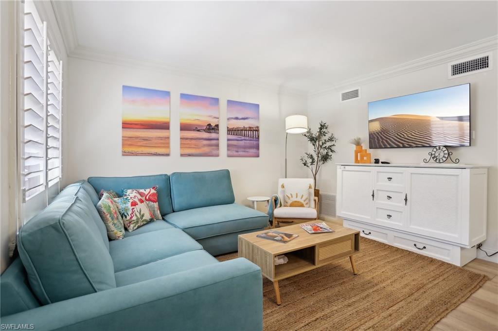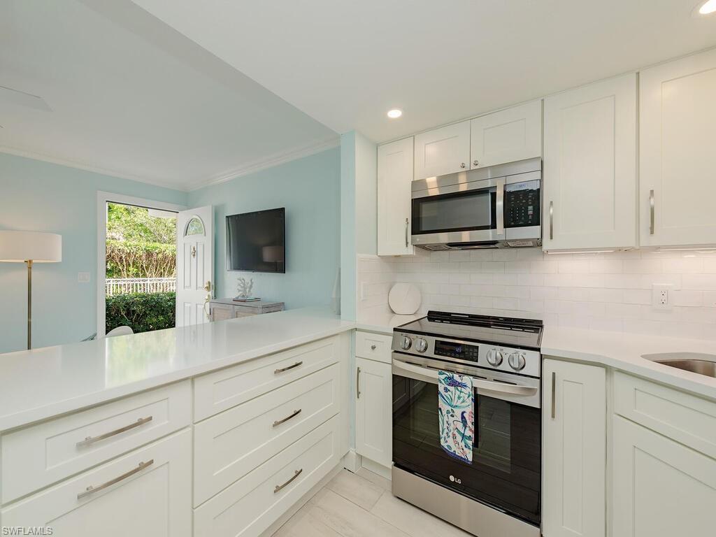 Welcome to this beautifully renovated first-floor condo in Castleton Gardens, ideally located in the vibrant downtown district of Olde Naples. This stylish condo features stunning white oak floors, brand-new appliances, a new HVAC system and water heater, and quartzite countertops. Just steps from the iconic 5th Avenue South, Naples Bay, Tin City, Third Street South, Cambier Park, and the Arthur L. Allen Tennis Center, you'll find the finest dining, shopping, arts, boating, and pristine Gulf beaches right outside your front door. Castleton Gardens is a quintessential boutique community offering a resort-style pool, spa, grilling area, and additional storage options. Residents enjoy ample off-street parking, gated secure entry, and a pet-friendly environment. Whether you're seeking a perfect Olde Naples pied-à-terre or a savvy investment opportunity, this condo delivers—with the ability to rent 12 times per year, each for a minimum of 30 days. Don’t miss this exceptional opportunity to own a piece of paradise in one of Naples' most sought-after neighborhoods!