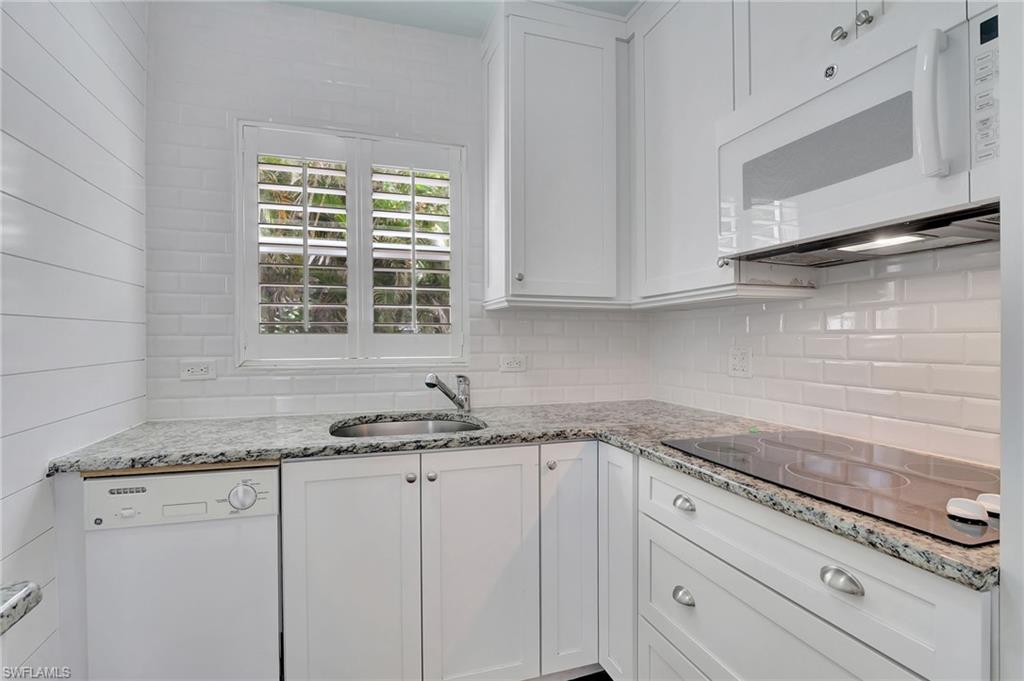 This rarely available, corner, end unit has so much to offer, from being completely renovated to its picturesque views of Naples Bay and the prime location in historic Old Naples. The kitchen combines function and character, with a larger refrigerator, 4-burner stove top, granite counter tops, and fun microwave and backsplash. The bathroom has been updated to include an additional closet, contemporary glass shower doors and tile, and granite vanity top. Other features include a tile floor, attractive furnishings, and sheer and room darkening draperies, storage locker. One of the more special upgrades is the aluminum panel water barrier system by Garrison that is effective and simple to install. For additional sleeping space the chair converts to a single bed and includes the linens. The Cove Inn on Naples Bay is a quintessential get-away home, as well as an opportunity to earn rental income. Owners automatically have membership to the exclusive Cove Yacht Club which provides use of the coveted private Chickee Bar. Amenities also include beach chairs, umbrellas and pool towels available for check-out, on-site laundry facilities, complimentary WiFi, a business center, and for a nominal fee bike rentals and a pass for access to the NCH Briggs Wellness Center. The Cove Inn' s Coffee Shoppe is also well known among locals for its delicious, classic, American breakfast. The ideal location is adjacent to the Boathouse, the Dock and other Crayton Cove restaurants, and less than a mile to downtown Naples’ bustling shops, restaurants and festivities, not to mention its famous Gulf of Mexico beaches.