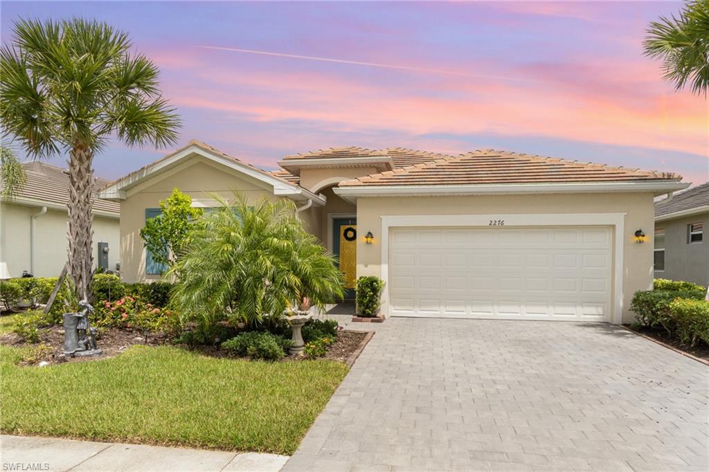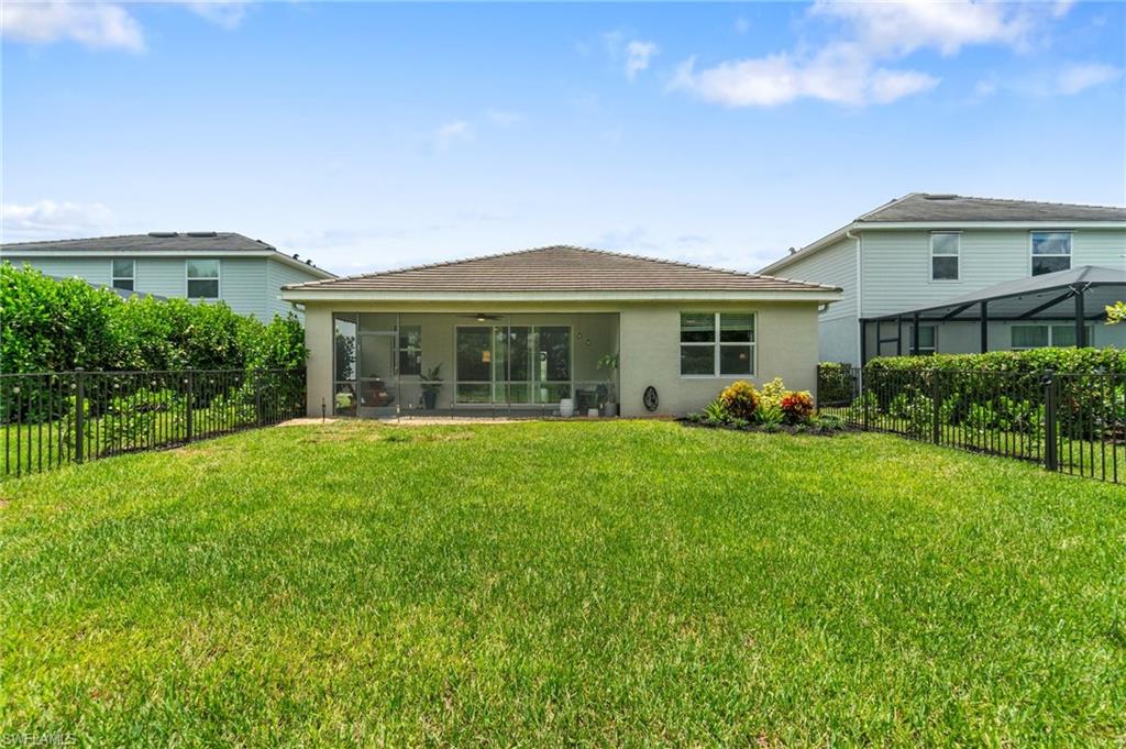 Discover the highly sought-after Marsala model in the premier gated community of Orange Blossom Ranch, Naples, Florida. This 3-bedroom plus den, 3-bath single-family home spans 2,217 square feet of open-concept living with soaring ceilings, modern finishes, and natural light pouring in from every angle. The smart split-bedroom design creates a seamless flow between living, dining, and kitchen areas, offering the perfect balance of comfort, privacy, and function. Enjoy serene mornings from your screened-in lanai overlooking the sparkling lake with rear sunrise exposure, and unwind in your grandfathered-in fenced backyard! A rare, highly coveted feature in this section of the neighborhood that provides exceptional privacy and peace of mind. Several other upgrades include a Level 2 EV charger, feature walls, and modern touches throughout. Life in Orange Blossom Ranch means embracing true resort-style living with two resort-style pools, basketball and tennis courts, pickleball, bocce ball, a freshly remodeled fitness center, multiple playgrounds, and a beautiful clubhouse. The location is unbeatable, adjacent to top-rated schools and just seconds from the brand-new Publix plaza with a direct community road for easy access, making everyday convenience part of your routine. Combining luxury, livability, and location, 2110 Clementine stands out as one of the most desirable Naples homes for sale, offering space, privacy, and amenities that make it truly one of a kind. Schedule your showing today and experience why this Marsala model continues to be one of the most in-demand floor plans in Southwest Florida.