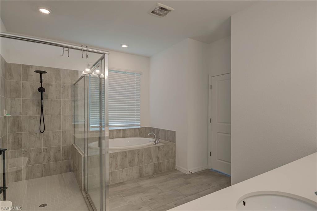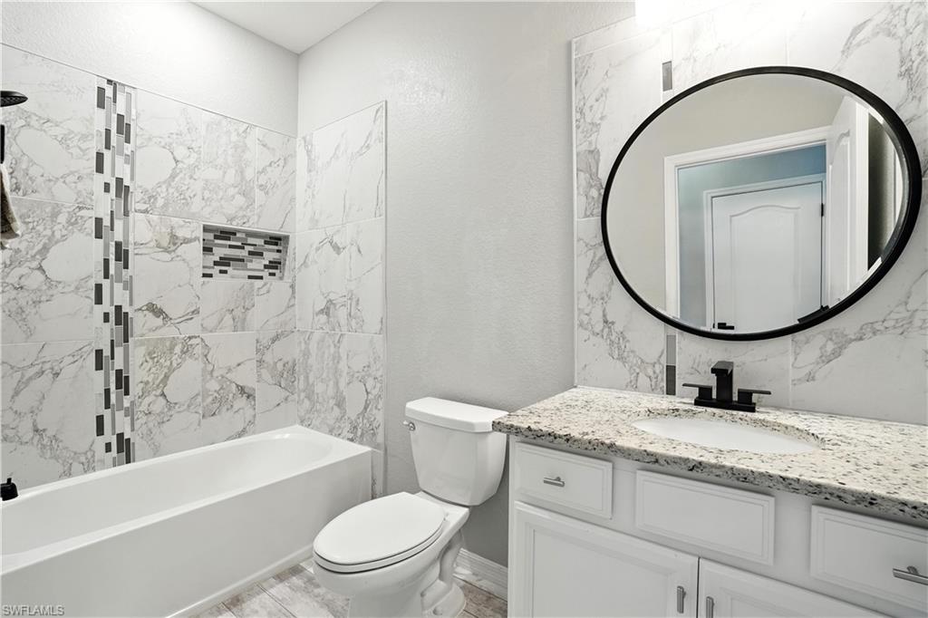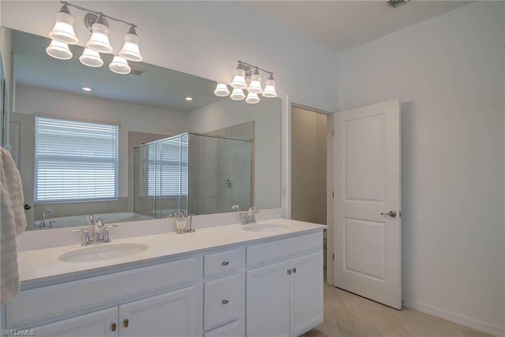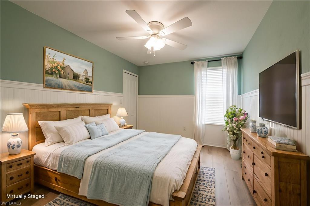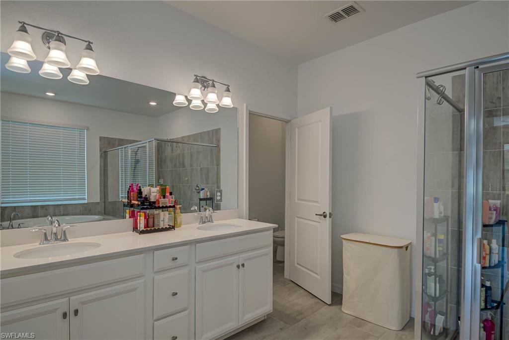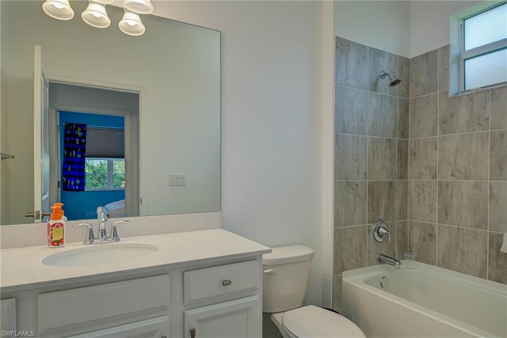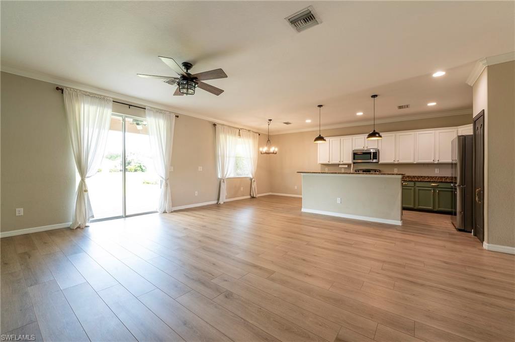 Welcome to Orange Blossom Ranch—one of Naples’ most desirable communities, offering low HOA fees and a vibrant lifestyle. PRICE SIGNIFICANTLY REDUCED TO SELL This spacious two-story home features 4 bedrooms plus a den, 3 bathrooms, and a flexible second-floor bonus/media room—perfect for entertaining or unwinding. The ground level offers a private guest suite with a full bath and a den/office accented by a wood-stained barn door. A custom storage nook under the stairs adds functionality, while the open-concept kitchen shines with newly refinished cabinetry, granite countertops, stainless steel appliances, and a breakfast bar that flows into the main living space. Brand-new luxury vinyl flooring runs throughout—no carpet anywhere. Upstairs, the large primary suite includes an en-suite bath with dual vanities, soaking tub, glass-enclosed shower, and a walk-in closet. Step outside to your extended patio with a privacy hedge and a serene water view—the perfect spot to enjoy Florida’s famous sunsets. Located in an X Flood Zone (no flood insurance required), Orange Blossom Ranch offers exceptional amenities: a clubhouse with catering kitchen and bar, resort-style and lap pools, hot tub, fitness center, tennis, pickleball, basketball, sand volleyball, playgrounds, and a fishing pier. A new Publix and dining options are right outside the gates with direct community access. This home offers space, style, and convenience in an unbeatable location—schedule a showing today.