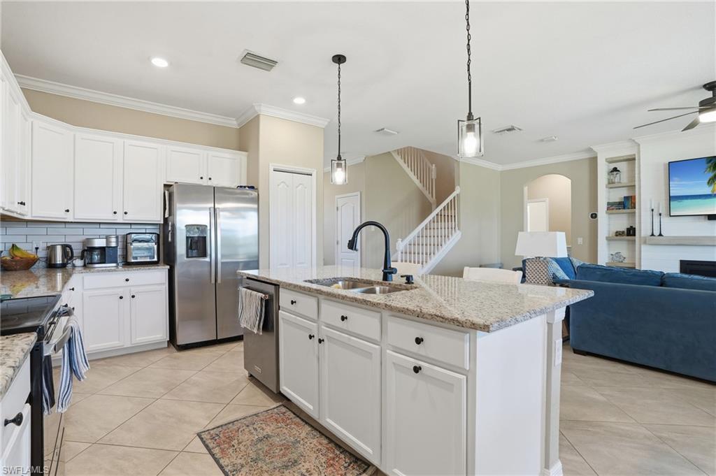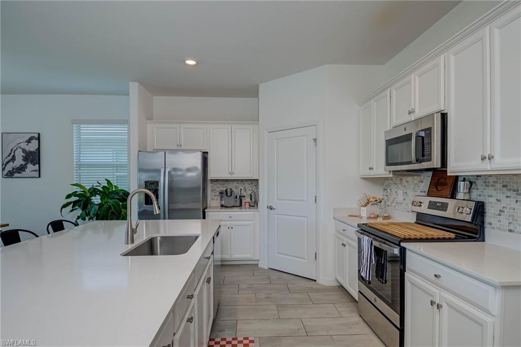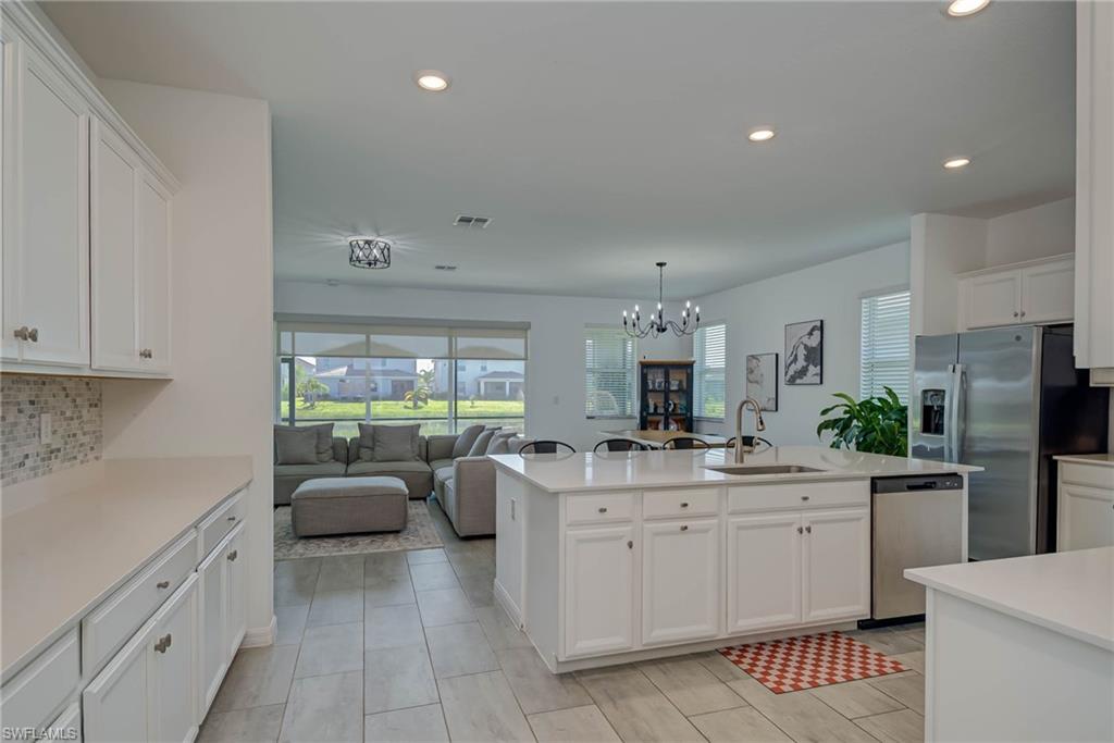 Like-New Marsala Model with Water Views in Orange Blossom Ranch! Welcome to 2438 Orchard Street in Naples, FL — a pristine Marsala model offering 3 spacious bedrooms, a versatile den, 3 full baths, and over 2,200 sq ft of thoughtfully designed living space — all set on a premium lot with tranquil water views. From the moment you step inside, this home impresses with like-new condition, sleek tile flooring throughout (no carpet!), and a flowing, open layout perfect for both everyday living and entertaining. The heart of the home boasts a chef’s kitchen with extensive cabinet space, stainless steel appliances, granite countertops, and a large island ideal for gatherings and prep work alike. Whether you're cooking for two or hosting a full house, this space was designed to keep up. The split-bedroom layout provides privacy, while the den offers the perfect flex space — home office, guest room, or playroom. The primary suite features peaceful water views, a spacious walk-in closet, and an ensuite bath with dual sinks and walk-in shower. Step out to your covered lanai and soak in the serene lake views — a perfect spot for morning coffee or evening wine. The yard offers space to add a pool if desired, or simply enjoy the quiet, low-maintenance outdoor setting as-is. Located in the gated, resort-style Orange Blossom Ranch, this family-friendly community is loaded with amenities: Two resort-style pools, lap pool, hot tubs, tennis, basketball, volleyball & pickleball courts, a fitness center, clubhouse, playgrounds & more! Just outside the gates, enjoy the brand new Publix shopping center — golf cart accessible for the ultimate convenience! You’re also minutes from top-rated schools and Big Corkscrew Island Regional Park — Collier County’s largest and newest park, featuring sports fields, splash pads, walking trails, and more.