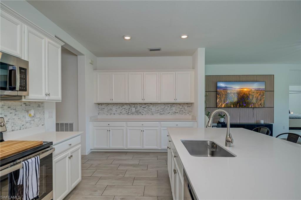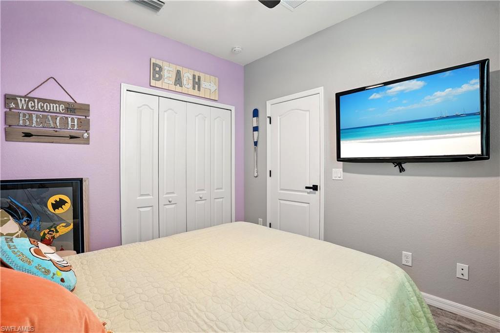 UPGRADES GALORE with this highly sought-after Marsala floor plan features 4 spacious bedrooms, 3 full bathrooms, and was built just 2 years ago. Enjoy the elegance of tile flooring, quartz countertops, and crown molding in every room for a seamless, elevated finish. The versatile 4th bedroom includes a custom Murphy bed—ideal for transforming the space into a home office or den when guests aren’t visiting. The open-concept kitchen and living area flow beautifully into the backyard, where there's plenty of room to add a pool. With its west-facing exposure, you’ll catch every picture-perfect Naples sunset right from your lanai. Located in one of the most desirable, family-friendly, PET FRIENDLY, gated communities in Naples, Orange Blossom Ranch offers resort-style amenities, top-rated schools, and a true sense of community. This home has it all—schedule your private showing today!