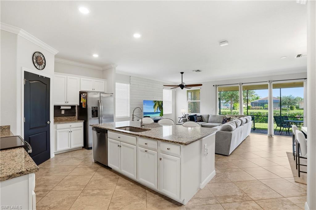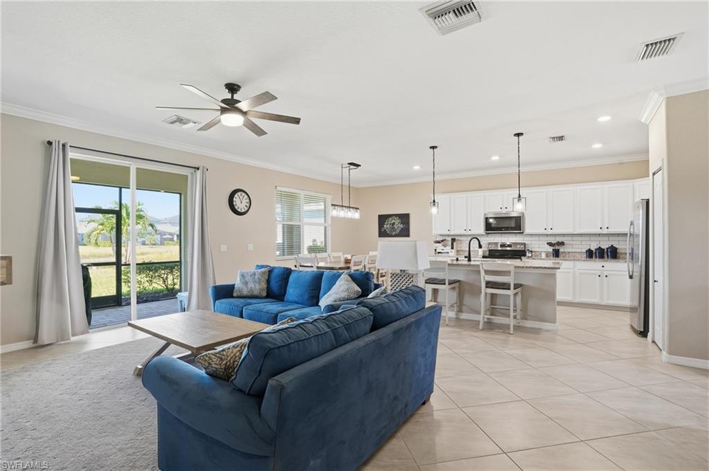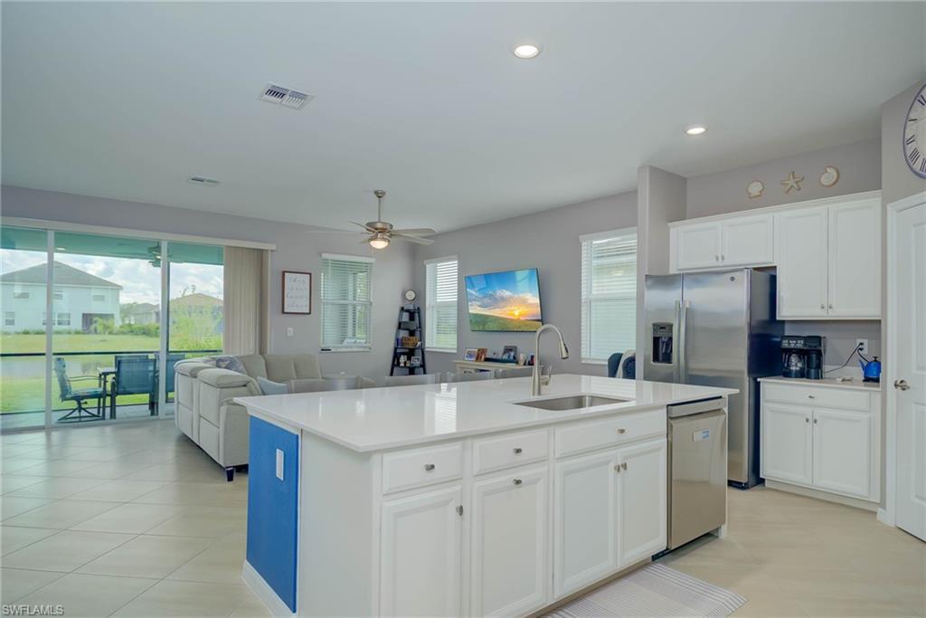 Like-New Marsala Model with Water Views in Orange Blossom Ranch! Welcome to 2446 Orchard Street in Naples, FL — a pristine Marsala model offering 3 spacious bedrooms, a versatile den, 3 full baths, and over 2,200 sq ft of thoughtfully designed living space — all set on a premium lot with tranquil water views. From the moment you step inside, this home impresses with like-new condition, sleek tile flooring throughout (no carpet!), and a flowing, open layout perfect for both everyday living and entertaining. The heart of the home boasts a chef’s kitchen with extensive cabinet space, stainless steel appliances, granite countertops, and a large island ideal for gatherings and prep work alike. Whether you're cooking for two or hosting a full house, this space was designed to keep up. The split-bedroom layout provides privacy, while the den offers the perfect flex space — home office, guest room, or playroom. The primary suite features peaceful water views, a spacious walk-in closet, and an ensuite bath with dual sinks and walk-in shower. Step out to your covered lanai and soak in the serene lake views — a perfect spot for morning coffee or evening wine. The yard offers space to add a pool if desired, or simply enjoy the quiet, low-maintenance outdoor setting as-is. Located in the gated, resort-style Orange Blossom Ranch, this family-friendly community is loaded with amenities: Two resort-style pools, lap pool, hot tubs, tennis, basketball, volleyball & pickleball courts, a fitness center, clubhouse, playgrounds & more! Just outside the gates, enjoy the brand new Publix shopping center — golf cart accessible for the ultimate convenience! You’re also minutes from top-rated schools and Big Corkscrew Island Regional Park — Collier County’s largest and newest park, featuring sports fields, splash pads, walking trails, and more.