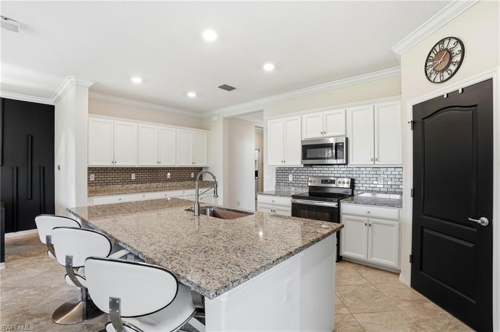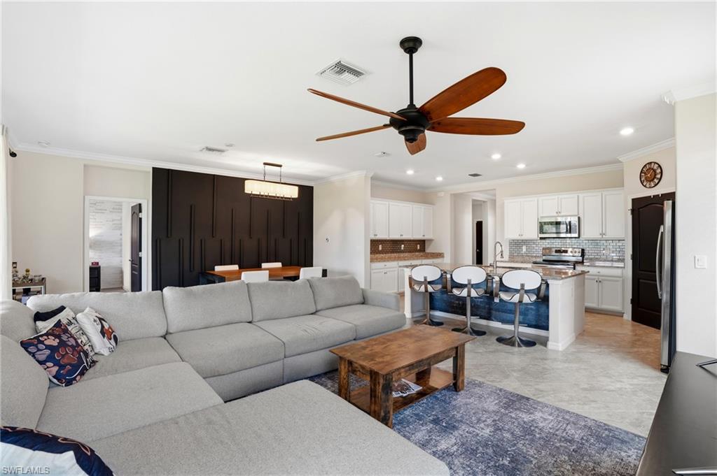 Welcome to Orange Blossom Ranch—one of Naples’ most sought-after gated communities, known for resort-style amenities, pristine landscaping, and an unbeatable location for the price! JUST STEPS FROM THE RESORT STYLE AMMENITIES, this beautifully upgraded 4-bed, 3-bath home offers modern comforts, thoughtful details, and a backyard retreat that brings tropical living to your doorstep. Step inside and be greeted by crown molding throughout, elegant tile flooring, and an open-concept layout designed for both relaxation and entertaining. The chef’s kitchen is the star of the home, featuring new stainless-steel appliances, an induction stove, convection oven, and generous counter space perfect for the culinary enthusiast. Storage is plentiful, and an upgraded bonus storage system in the garage adds even more convenience. The owner's suite is your private sanctuary, complete with seamless glass shower enclosure and refined finishes. An updated Samsung washer and dryer elevate the laundry room, while a generator hook-up provides peace of mind year-round providing the ability to use the home in a power outage! Step outside to your own tropical lagoon-style backyard, professionally landscaped to create a lush, serene oasis ideal for morning coffee or evening gatherings. Living in Orange Blossom Ranch means being just moments from A-rated schools, Collier County’s newest and largest park, and a brand-new Publix and shopping center accessible directly from the community’s newly added road. Enjoy the blend of luxury, comfort, and convenience in a vibrant neighborhood filled with amenities for all ages. This home truly has it all—modern upgrades, prime location, and resort-like living. Schedule your private showing today!