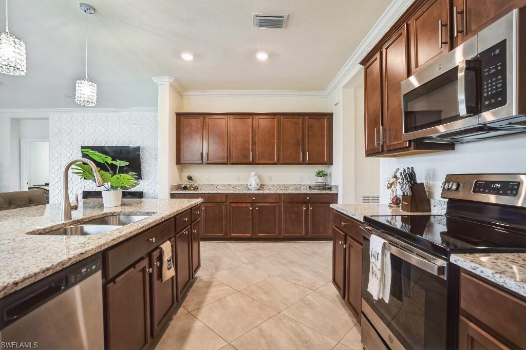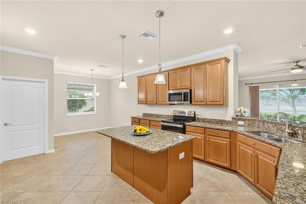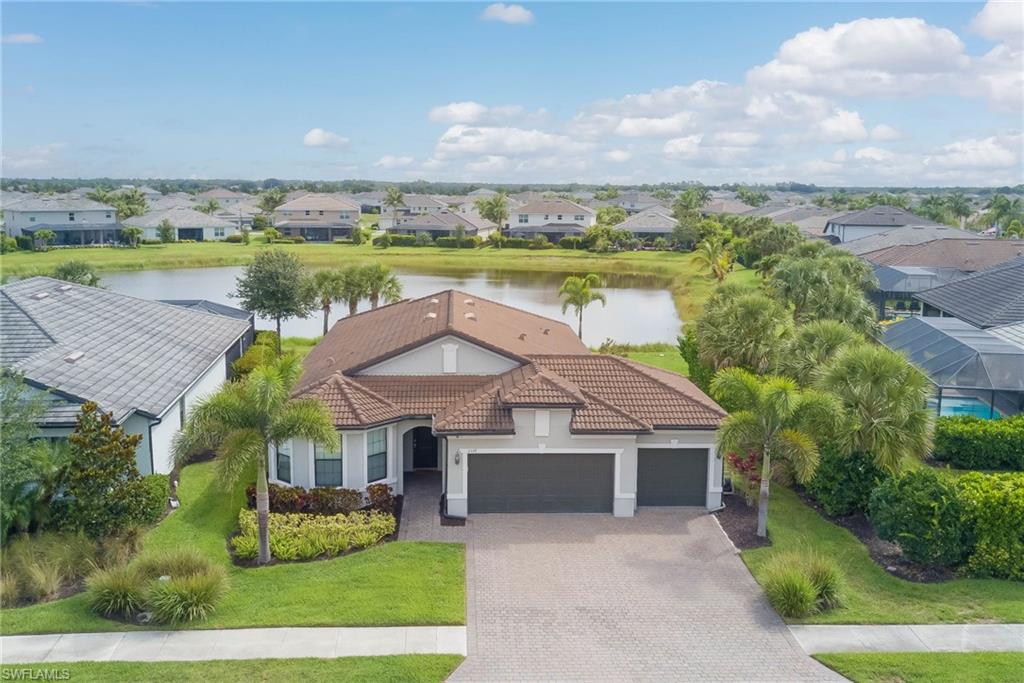 Welcome to your dream home in the prestigious Orange Blossom community! As soon as you step into 2290 Vermont Lane, you will be greeted by an inviting open concept floor plan that seamlessly blends the living, dining, and kitchen areas; combining both comfort and modern style to create the perfect oasis for you and your family. Serenity, sunshine, and sunsets are yours in this exceptional Naples home featuring four bedrooms, three bathrooms (two are en-suite), formal and kitchen island dining, and an open kitchen/great room with a bird’s eye view of the lanai and lake from multiple locations in the home. The spacious great room features high tray ceilings, an expansive sliding glass door, and a neutral color palette, creating a bright and airy atmosphere. It is the perfect spot to relax with family or entertain guests. This inviting and spacious Lennar Summerville II floor plan welcomes you in and provides countless options to suit your living style, including split bedrooms to lend privacy for guests or quiet areas for remote work options. A stunning oversized kitchen island with gleaming granite is a focal point that allows for seamless living or entertaining. Whether you're preparing a quick meal or hosting a dinner party, you will have everything you need at your fingertips with a spacious step-in pantry. The master suite is a luxurious retreat with two generous his/hers walk-in closets, and an en-suite bathroom featuring dual sinks and cabinetry, a soaking jet tub, and a separate shower. The three additional bedrooms are well-appointed ensuring comfort for family and guests alike. The back yard of the home allows for space to build your own custom pool or a fenced in area for your pets to run freely. Another highlight is the enormous three-car garage, with ample brick paver driveway parking. Plenty of room to store your wheels! HOA amenities include a clubhouse, exercise room, resort style swimming pool, basketball, tennis courts, pickleball, and children’s play area. In a prime area of Naples, this home is located minutes away from public golf courses, restaurants, and shopping centers. You deserve to live here! Enjoy luxury living and claim your slice of paradise today!