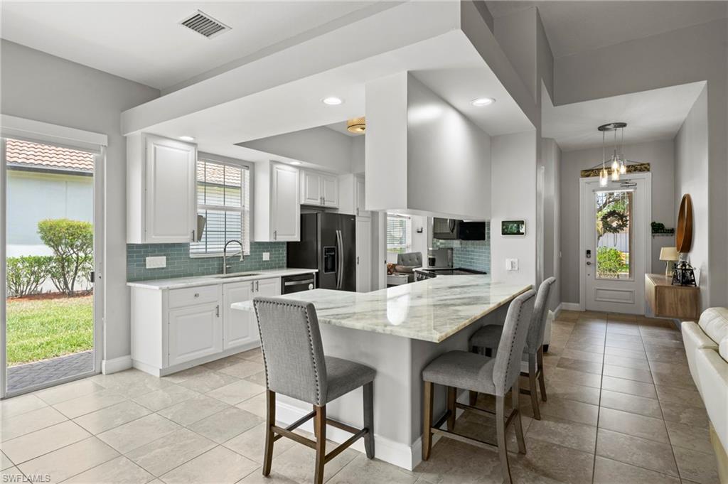 Experience modern living and everyday convenience in the gated community of Orange Blossom Ranch! This beautifully upgraded single-family home offers just under 2,000 square feet of open-concept living space with soaring 12-foot ceilings, 3 spacious bedrooms, plus a Den, and 2 full bathrooms. The interior features sleek, updated flooring, a stunning modern entertainment center, and a gourmet kitchen with translucent marble countertops, stainless steel appliances, and an oversized island ideal for entertaining. The open layout flows seamlessly into a bright and spacious living area, designed for both comfort and functionality. Step outside to a private backyard with lush landscaping—perfect for outdoor dining, relaxing, or soaking in the Florida sunshine. This home is situated on one of the best-located lots in the community—just steps from Orange Blossom Ranch’s resort-style amenities. Residents enjoy access to two heated pools and spas, a state-of-the-art fitness center, tennis and pickleball courts, basketball, beach volleyball, a fishing pier, clubhouse, and scenic walking paths. Additional highlights include concrete block construction, an attached 2-car garage, modern finishes throughout, low HOA fees, and a location within a top-rated school district. If you're looking for a move-in ready home with high-end upgrades and unbeatable access to one of Naples’ most amenity-rich communities, 2282 Heydon Circle W is a must-see!