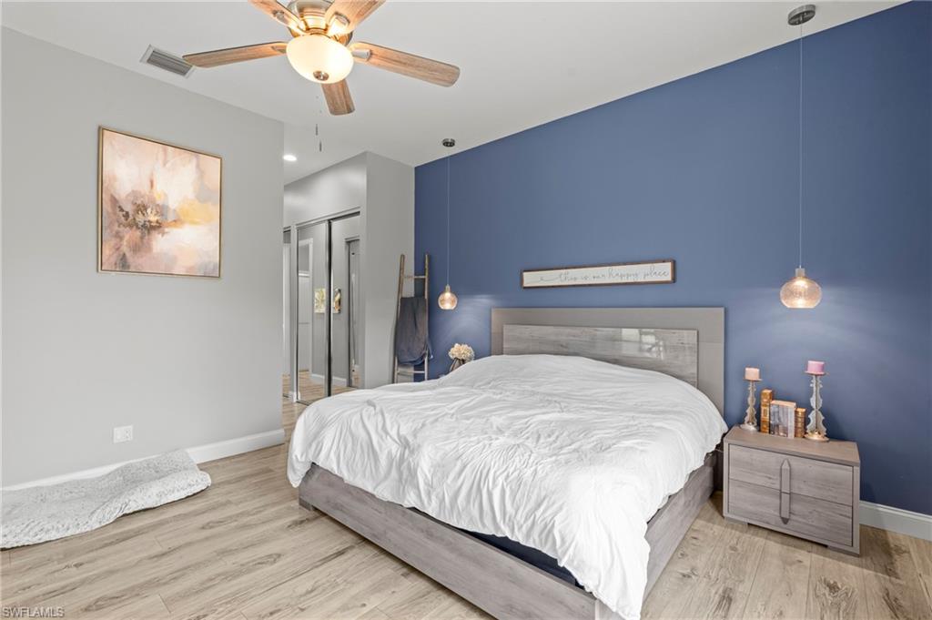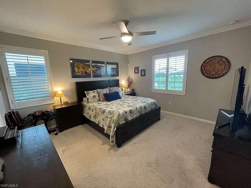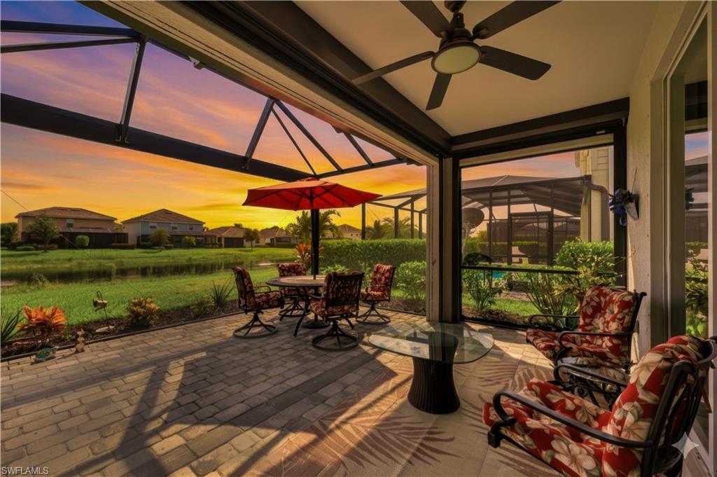 Greatly Improved Price! Excellent Value in the area. $88,000 in Upgrades and better than the builder's new basic home, compare! This Trevi model is located on a wide freshwater canal. As you enter, you will notice electric rolldown hurricane shutters on the front door and in the lanai! Crown moldings in most areas. Vivint home security system with package protection and cameras with an active deterrance system! Home automation lighting. A very popular, 4 bedroom, 3 bath home has a greatroom, and a split bedroom plan. Gourmet kitchen with granite island and newer high end stainless appliances. Upgraded washer & dryer in utility room! Nice tile floors throughout the home, beautiful Bahama plantation shutters on all windows - making them elegant! The master suite is beautiful with 2 walk-in closets, double sinks, a soaking tub, and a shower. Other bedrooms have extra features, like a murphy bed, office set-up, and TVs. One bedroom is en suite with a bathroom for guests! Custom built-in cabinets in all closets, including the pantry. Upgraded ceiling fans and light fixtures. Upgraded garage has epoxy floor and 3 overhead storage racks! Screened lanai is great to enjoy coffee/tea watching sunrise, and cool drinks in the evening! 1-YEAR AHS WARRANTY IS INCLUDED for your peace of mind. See floor plan and detailed Upgrade List in photos... APPROVED FOR HOMETOWN HERO, FHA and VA LOANS.. Please view virtual tour - click on link, click music icon, click 1st photo on the bottom left, then click slide show - you will see beautiful home and 3-D photos. Seller will remove office cabinets, if you don't need them... Orange Blossom Ranch is a lovely gated community with 2 resort style pools, 2 hot tubs/spas, a Splash pad, kids play area, excercise room, 2 tennis & pickleball courts, 2 basketball courts, beach volly ball court, 2 bocce courts, fishing pier, and a community Room with a nice kitchen - for parties... Minutes to shopping, public golf course, schools, Ava Marie University, and nature preserves... Enjoy good life in Beautiful Naples, FL...
