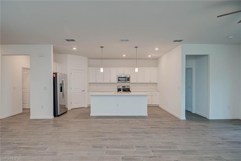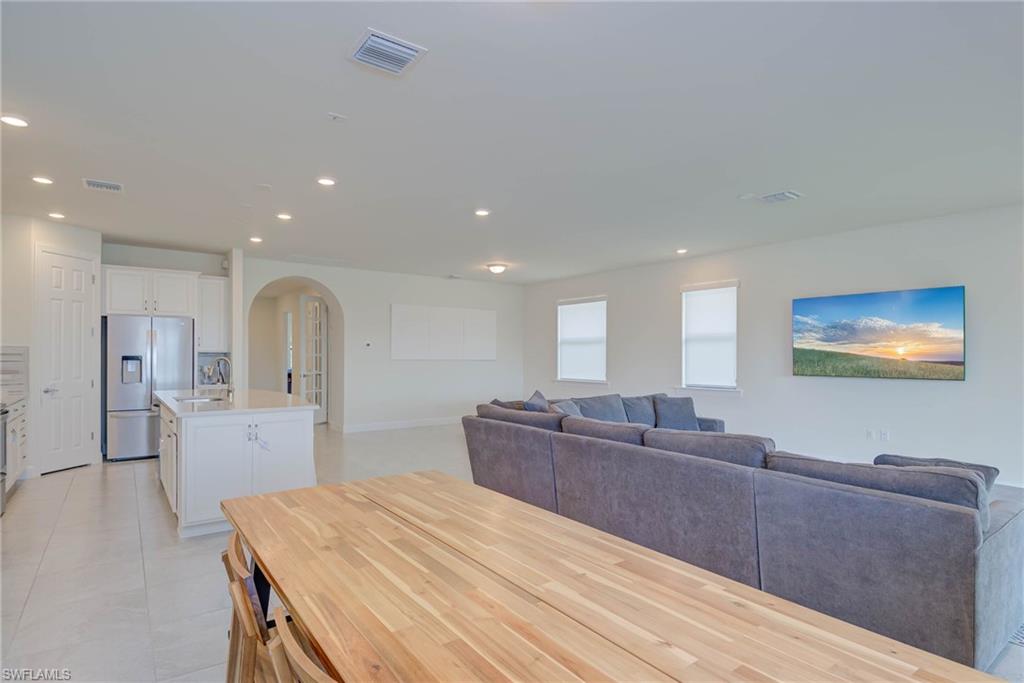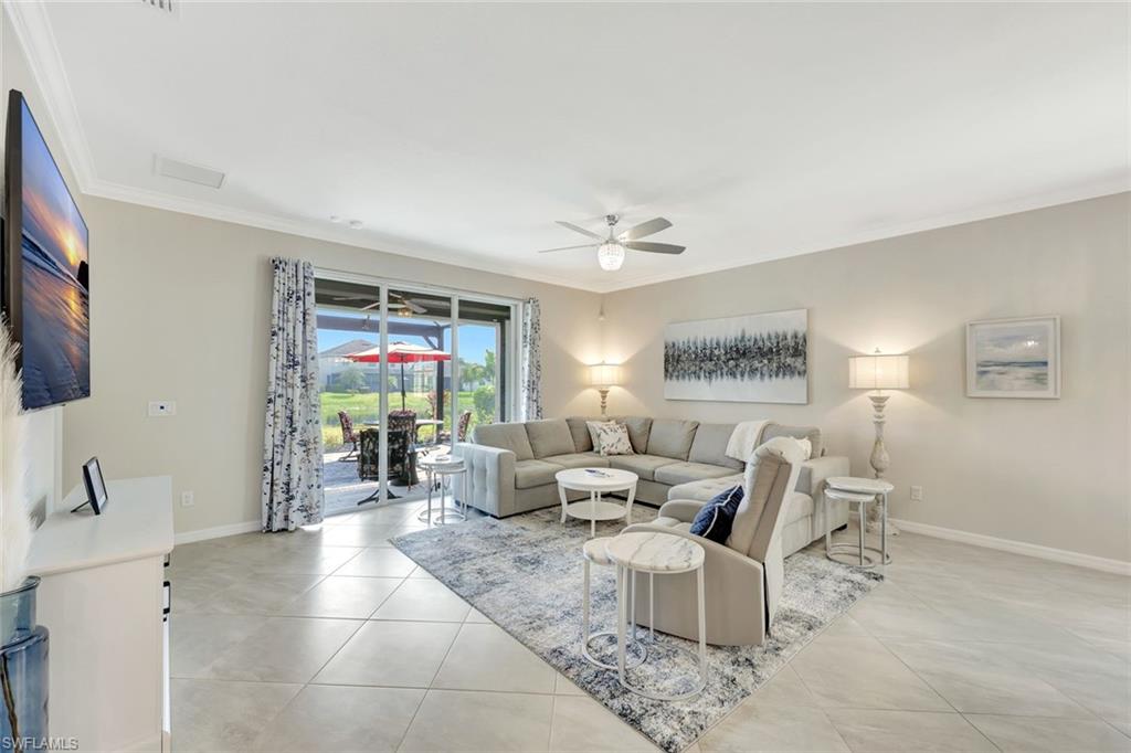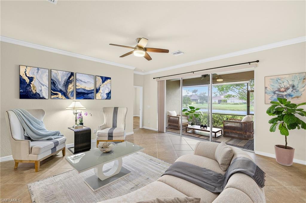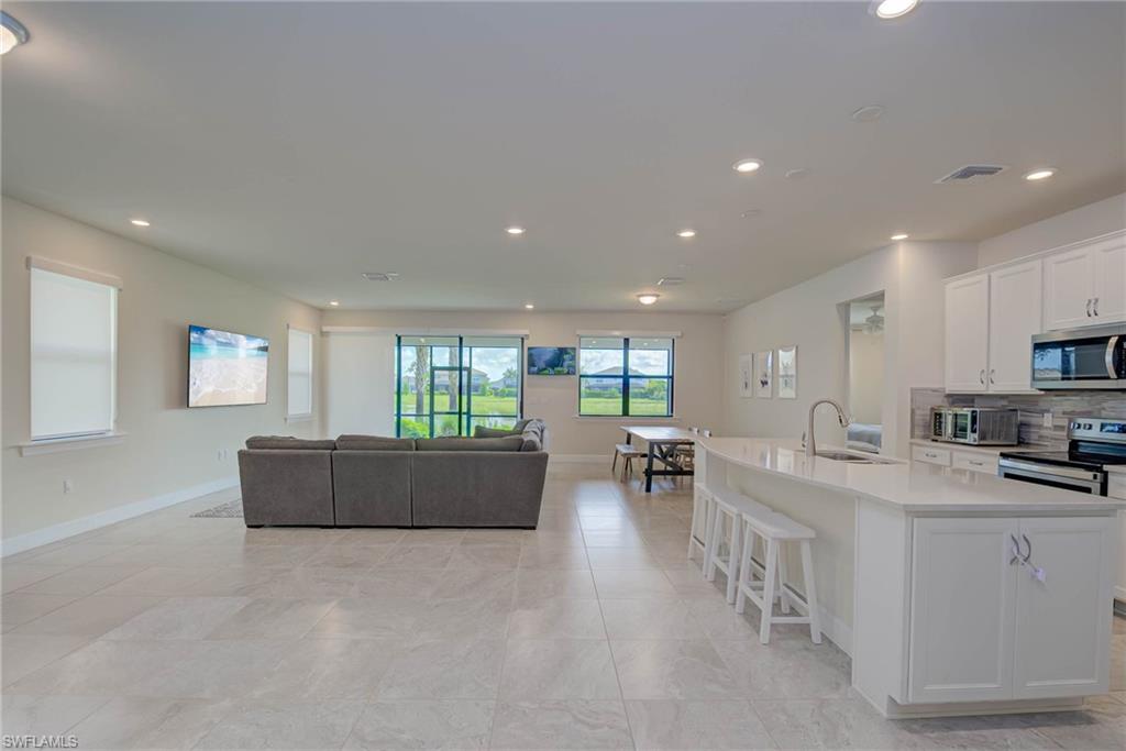 Welcome Home to Orange Blossom Ranch! This beautifully maintained and move-in ready former Pulte model home offers 3 bedrooms + den, 2 bathrooms, and a spacious open-concept layout designed for modern living. Featuring soaring 9'4" ceilings, 8' doors, and stylish upgrades throughout, this home is truly a must-see. Enjoy a bright and inviting kitchen with bright white cabinetry, stainless steel Whirlpool appliances, and light tile flooring that flows through the main living areas and primary bedroom. Tall, modern baseboards add a refined touch, epoxy floor 3-car garage provides ample storage space for all your needs. Step outside to your large covered lanai—perfect for sipping your morning coffee or winding down with an evening refreshment as you take in the peaceful water view. This home is also just a short walk from an incredible lineup of amenities, including resort-style and lap pools, a hot tub, state-of-the-art fitness center, tennis, pickleball, basketball, and sand volleyball courts, two playgrounds, and a fishing pier. Located in the highly sought-after and fast-growing Orange Blossom Ranch community, you'll also benefit from the upcoming arrival of a brand-new Publix, plus additional shopping and dining options set to open Summer 2025—right outside the gates. Don’t miss your opportunity to own this upgraded gem in one of Naples' most desirable neighborhoods!