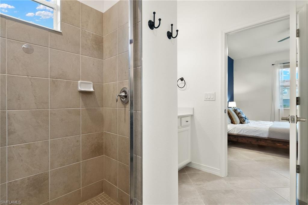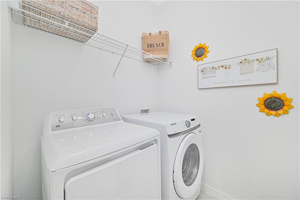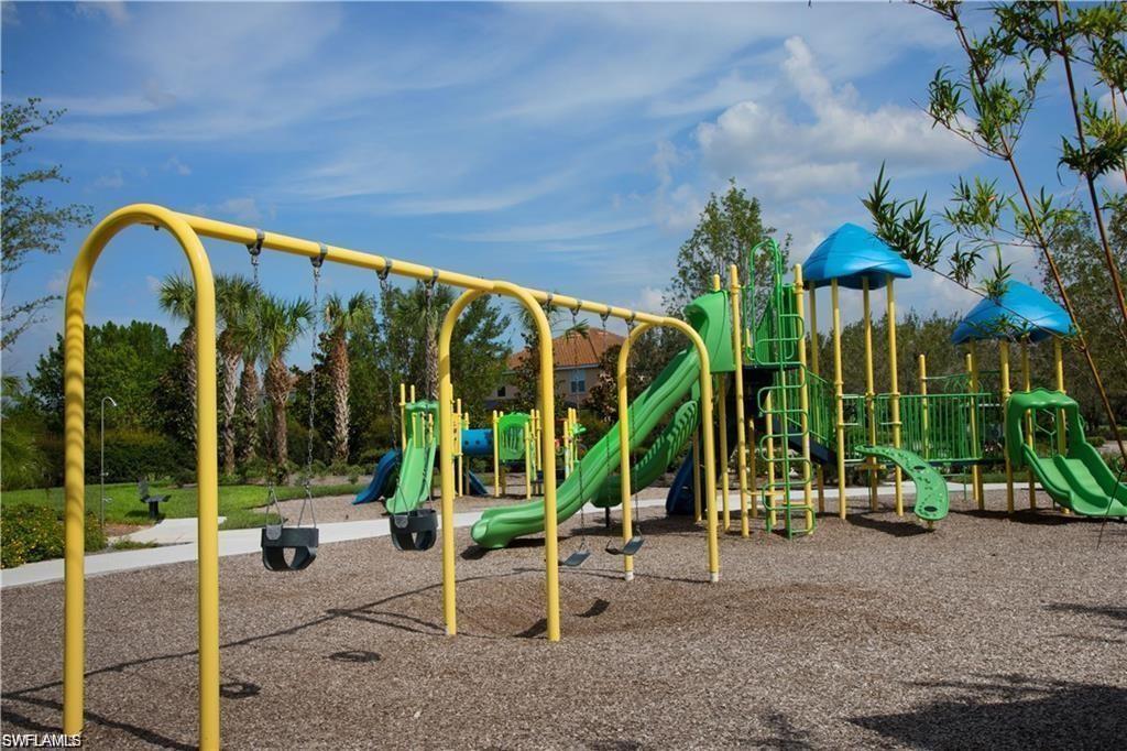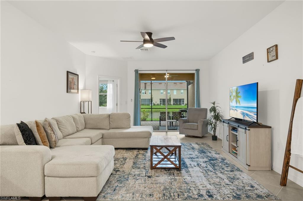 Paradise Resort-Style Living with Lake Views Enjoy spacious living in this beautifully maintained 2+Den, 2-bath home with a 2-car garage, perfectly situated on an oversized end-unit lot. The prime location offers added privacy, a generous yard, and peaceful lake views surrounded by lush landscaping. Step inside to an open-concept floor plan featuring split bedrooms, a large dining area, and a stunning kitchen with upgraded fixtures and finishes. The expansive lanai is ideal for seamless indoor-outdoor living and entertaining. The master suite boasts a walk-in closet, master bath with dual sinks, and a frameless glass shower enclosure. Guests will appreciate the spacious bedrooms with ample storage. Thoughtful upgrades throughout the home include stylish light and plumbing fixtures, ceiling fans (including the lanai), modern hardware, beautiful, angled tile flooring, garage shelving, and epoxy-sealed garage floors. With only 3 years of age, this immaculate home offers low-maintenance living. The community features low HOA fees that cover lawn care, irrigation, and access to incredible amenities: a newly renovated clubhouse, two resort-style pools and spas, tennis, basketball, and volleyball courts, fitness center, playground, bike paths, and secure gated entry. Conveniently located just minutes from a new shopping complex with a grocery store soon to be completed. This home truly has it all—comfort, convenience, and resort-style living. Schedule your private showing today.