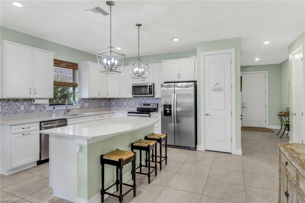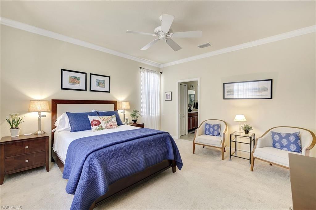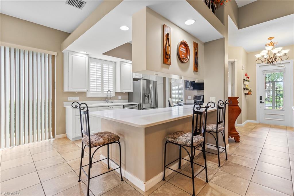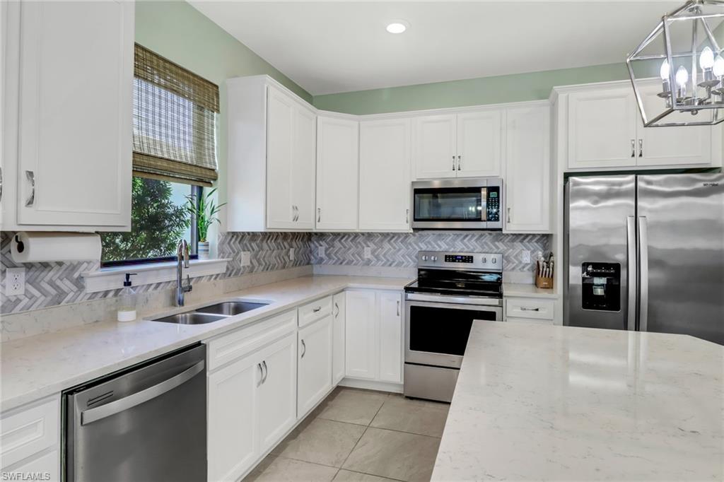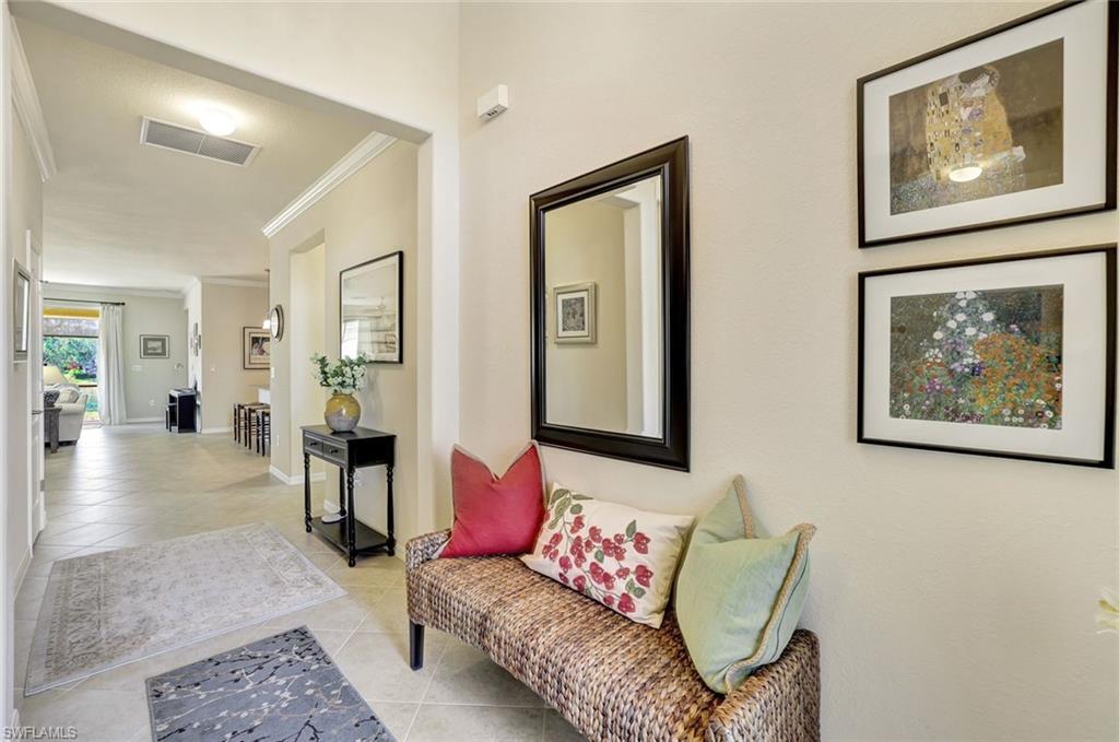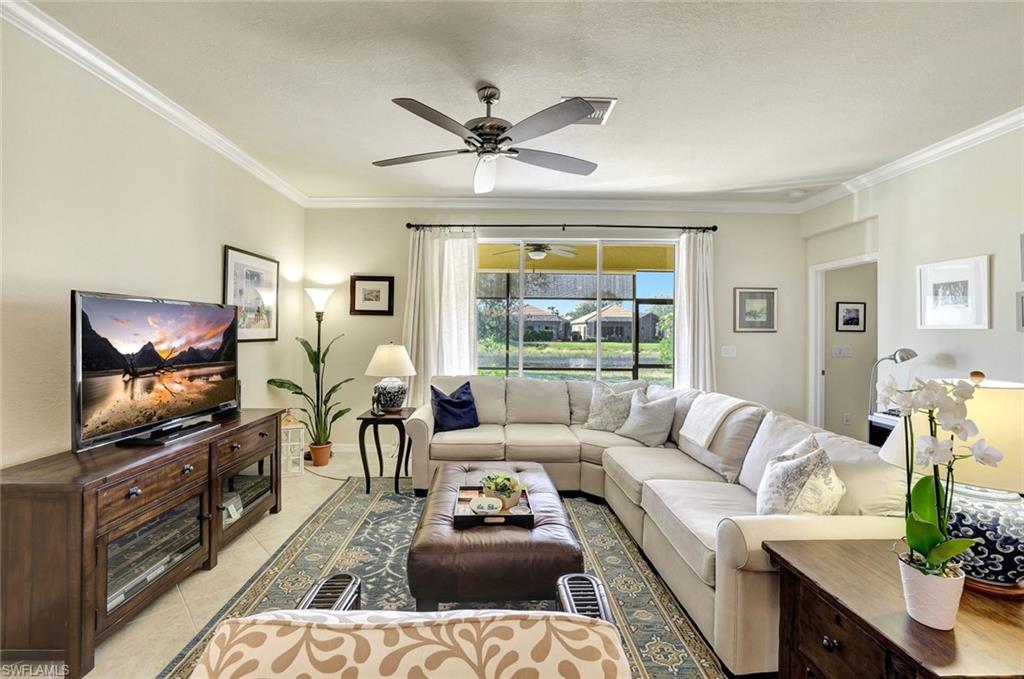Welcome to this impeccable Magnolia floorplan attached villa in the gated community of The Groves at Orange Blossom, featuring over 1,400 sq. ft. of move-in ready living space with 3 bedrooms (third bedroom can also serve as a den, office, or flex space), 2 full baths, and a 2-car garage. Enjoy serene privacy from your extended lanai with a beautifully landscaped view, while inside, elegant tile floors are laid on a diagonal throughout the entire home. A retractable front door screen and custom glass door entry lead you into a bright, inviting space enhanced by impact windows and doors, custom lighting, and lighted sconces in the family room that add a touch of sophisticated charm. The kitchen is a chef’s delight with undermount lighting, stainless steel appliances, and sleek quartz countertops. Gorgeous landscaping surrounds the property and enhancing curb appeal. A true resort lifestyle with access to multiple pools, tennis, pickleball, basketball, sand volleyball, a splash park, fitness center, and fishing pier are just some of the amenities located at The Groves at Orange Blossom Ranch and accessible Orange Blossom Ranch. Ideally located, residents are minutes from world-class shopping and dining on Fifth Avenue South and Third Street South, stunning Gulf beaches, and top-rated schools, making this the perfect blend of elegance, convenience, and Naples living at its finest.