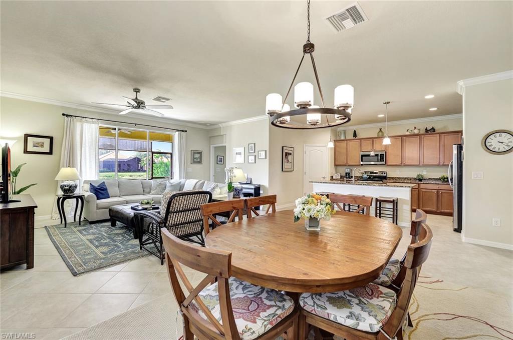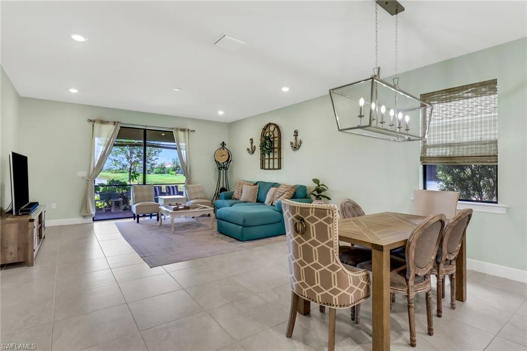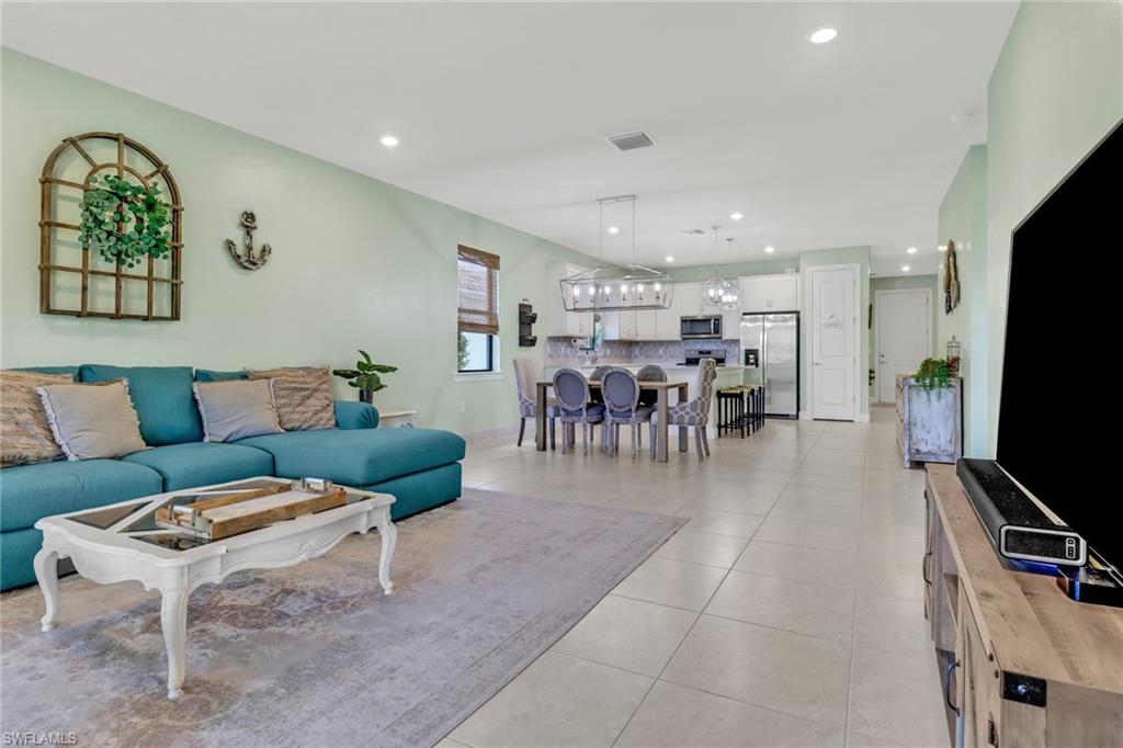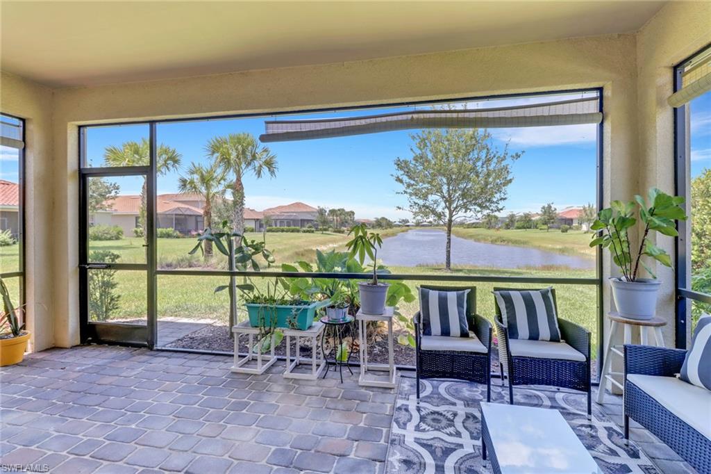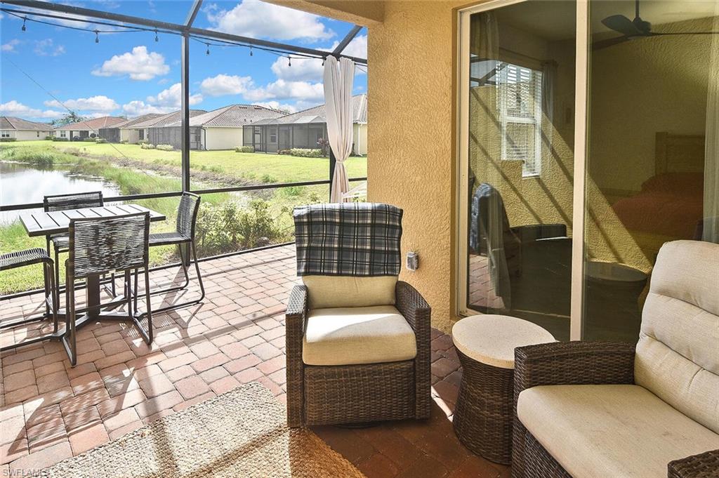 Experience relaxed luxury in this beautifully appointed 2-bedroom plus den villa, perfectly situated on one of the most desirable homesites in Orange Blossom Ranch. With an expansive side lot and a stunning water view, this home offers a rare sense of space and serenity. Step inside to discover a bright, open floor plan with tile flooring throughout—effortlessly blending sophistication with everyday comfort. The kitchen flows seamlessly into the great room and dining area, all opening to a screened lanai overlooking tranquil water views—ideal for morning coffee or evening gatherings. The primary suite is a private retreat featuring a spacious walk-in closet and a spa-inspired bath with vanity and a walk-in shower. Additional highlights include a den perfect for a home office or guest space, a separate laundry room, and a two-car garage. Orange Blossom Ranch residents enjoy a vibrant, resort-style lifestyle with amenities including a community pool, bocce ball, clubhouse, fitness center, and playground—all just moments from Publix, schools, and shopping. Live where comfort meets elegance in one of Naples’ most welcoming communities.