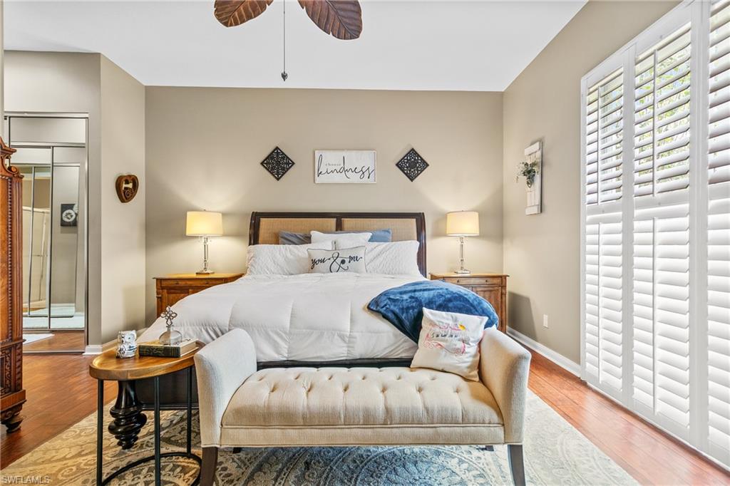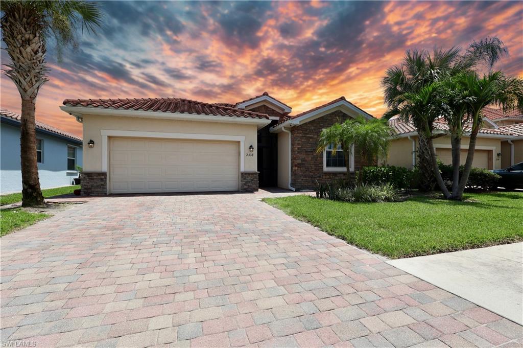 MOTIVATED Seller, Bring all reasonable offers. Welcome to your dream home in the heart of Orange Blossom Ranch—one of Naples’ most coveted gated communities. Tucked away in a quiet cul-de-sac, this meticulously maintained 3-bedroom, 2-bathroom Oakmont floor plan stunner is packed with upgrades and designed for both elegance and comfort. From the moment you arrive, you’ll be captivated by the home’s curb appeal—arched windows, a side-entry double garage, brick paver driveway, tile roof, and beautifully manicured landscaping. Step inside and you’re instantly greeted by streams of natural light dancing across porcelain tile flooring and plantation shutters. The open layout flows effortlessly, leading to a light-filled den that can be your perfect home office, creative studio, or cozy library retreat. The kitchen is a chef’s delight with Corian countertops, newer stainless steel appliances, and upgraded lighting that gives a warm, modern vibe. The split floor plan allows for privacy, while the spacious primary suite stuns with a unique his-and-hers dual bathroom setup—yes, two full bathrooms in the owner’s suite! Hardwood floors in the bedrooms and den add warmth and charm throughout. Step out onto your enclosed lanai, now a bright sunroom—ideal for morning coffee or winding down in the evening. And with a lot large enough to add your dream pool, you can truly create your own backyard oasis. Peace of mind comes standard with a new roof, new A/C system featuring microbial defense, new water heater, central vacuum, and solid block construction by Divosta—quality you can count on. Whether you're an empty nester ready to downsize, a growing family seeking more space, or a snowbird chasing sunshine, this home delivers it all. Residents enjoy low HOA fees and resort-style amenities: two sparkling pools and spas, fitness center, tennis and basketball courts, Bocce ball, Pickleball, playgrounds, BBQ areas, and more—all within minutes of A-rated schools, shopping, dining, and the world-famous beaches of Southwest Florida. Don’t miss this rare opportunity to own a slice of paradise that perfectly balances luxury, comfort, and lifestyle. Move-in ready and waiting for you!