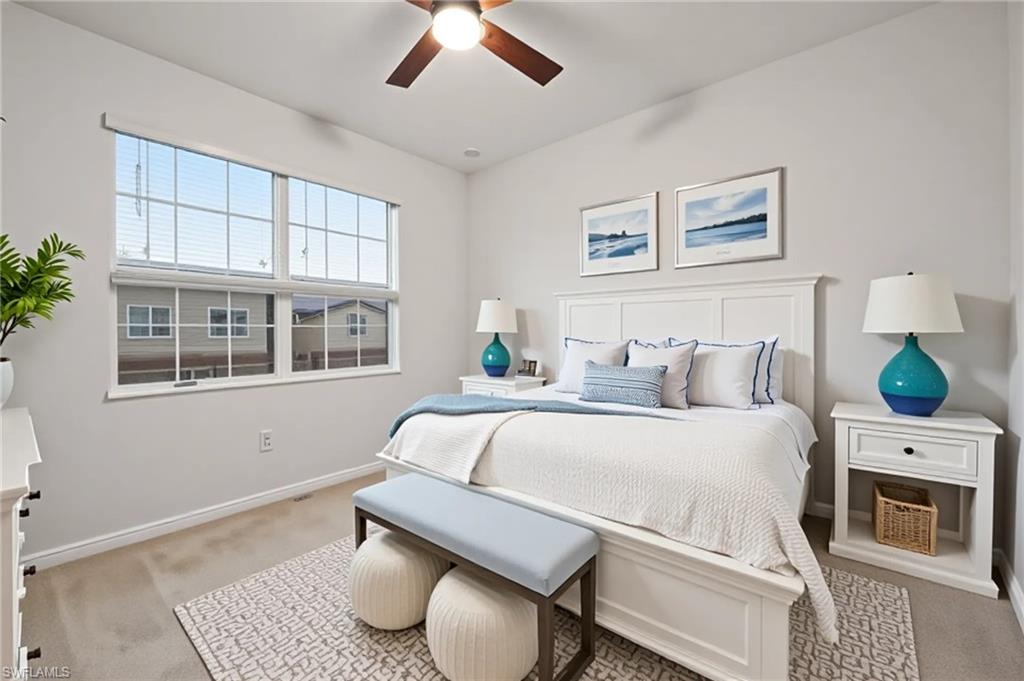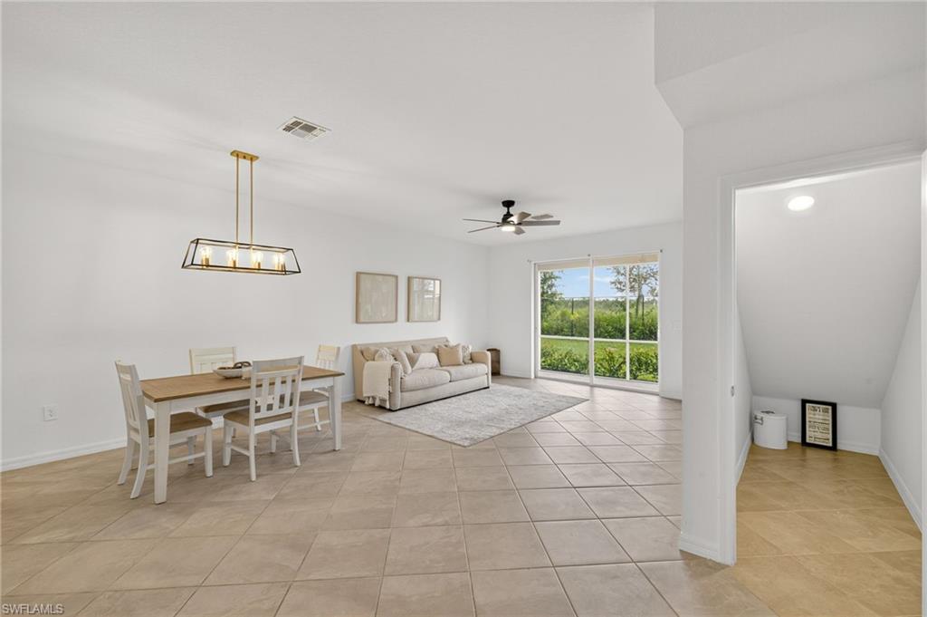 Seller incentive: Temporary buydown credit available to reduce the buyer’s interest rate and lower monthly payments during the initial years. (Subject to lender approval and program guidelines) Welcome to 2878 Blossom Way, a spacious and stylish townhome offering peaceful lake views in the highly sought-after gated community of Orange Blossom Ranch in Naples, Florida. This beautifully maintained 3-bedroom, 2.5-bath home features 1,879 square feet of well-designed living space across two levels. Whether you're searching for a full-time residence, seasonal getaway, or investment opportunity, this property combines comfort, functionality, and location in one complete package. Seller financing may be available—please inquire for details. Upon entering, you'll immediately appreciate the bright, open-concept layout. The main floor features neutral tile flooring and a seamless flow between the living, dining, and kitchen areas. Large sliding glass doors fill the space with natural light and open to a screened-in lanai with serene lake views and a separate storage room, creating the perfect setting for morning coffee, outdoor dining, or evening relaxation. The modern kitchen is both stylish and functional, offering granite countertops, stainless steel appliances, a center island with breakfast bar seating, and ample cabinetry for storage. Whether you're cooking for yourself or entertaining guests, this kitchen is designed to meet your needs. Upstairs, the spacious primary suite serves as a private retreat with peaceful lake views, two walk-in closets, and an en-suite bathroom featuring dual vanities and a glass-enclosed walk-in shower. Two additional guest bedrooms provide comfort and flexibility for family, visitors, or a home office. A full guest bathroom with a tub/shower combination and a convenient upstairs laundry room complete the second level. Additional highlights include a one-car attached garage, a paver driveway, and generous closet space throughout. The home has been lovingly maintained and is move-in ready. Orange Blossom Ranch is known for its resort-style amenities and vibrant, family-friendly environment. Residents enjoy access to two community pools with spas, a fitness center, tennis and basketball courts, sand volleyball, multiple playgrounds, and scenic walking and biking paths. The community clubhouse and frequent social events foster a welcoming neighborhood atmosphere. Located in a rapidly growing area of North Naples, this home is zoned for some of Collier County’s top-rated schools—all within walking distance. NAPLES Classical Academy is just a 15-minute drive away. You're also just minutes from new shopping centers, restaurants, and outdoor recreation. Plus, the white sand beaches and vibrant downtown Naples are within easy reach. Disclaimer: Some images has been virtually staged for illustrative purposes only.