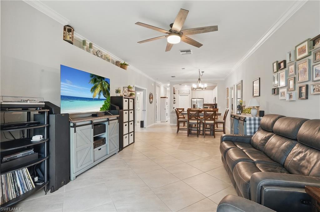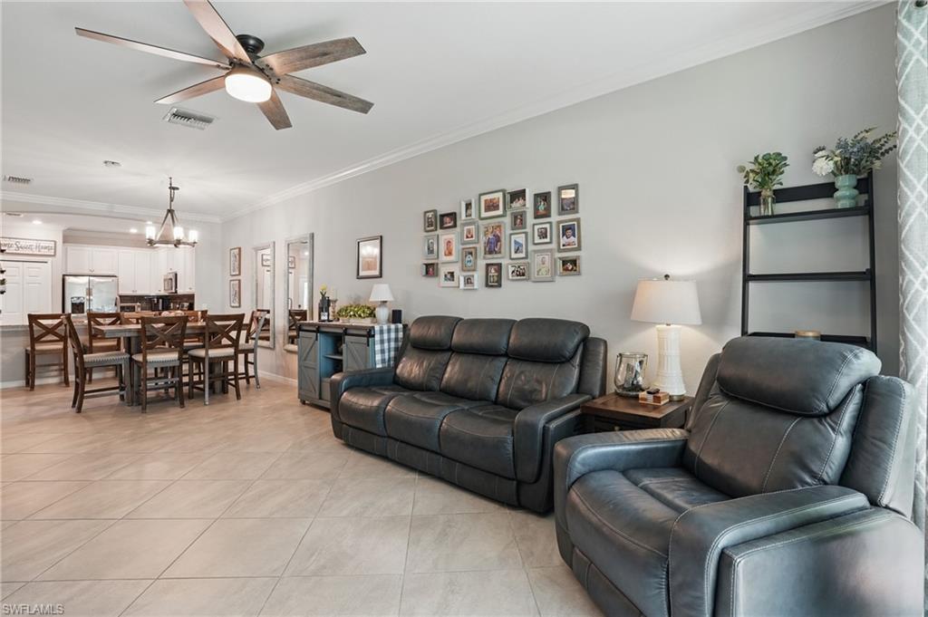 Welcome the most rare and highly desirable villa located in the gated community of Orange Blossom Ranch, just steps from the community’s full suite of resort-style amenities. This upgraded 3-bedroom, 2-bathroom home features white shaker cabinets, gray tile flooring, crown molding, upgraded builder paint in a soft designer gray, and custom pocket doors that enhance both flow and functionality. The open-concept layout transitions seamlessly to a spacious screened lanai—ideal for relaxing or entertaining—while offering direct backyard access to the community’s amenity campus. Orange Blossom Ranch offers one of the most complete lifestyle packages in the area, including two resort-style pools, a modern fitness center, tennis and basketball courts, a fishing pier, bocce ball, sand volleyball, playgrounds, a clubhouse, and scenic walking and biking paths. Adding to the appeal, this home is just minutes from the upcoming Publix plaza, which will be accessible via a private community road currently under construction. The plaza will include not only Publix but also a variety of everyday conveniences such as a smoothie shop, coffee shop, and even a Chipotle. Opportunities like this don’t come often—this is one of the best-located villas in Orange Blossom Ranch, offering exceptional upgrades, a walk-to-everything lifestyle, and unbeatable convenience in one of Naples’ fastest-growing areas.