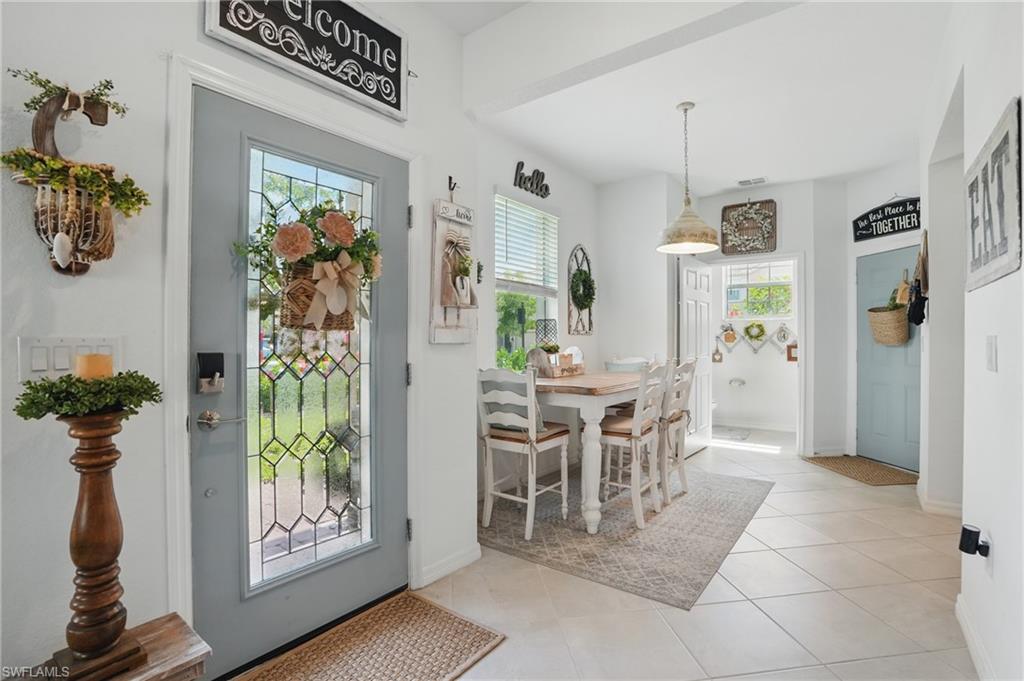 Welcome to 1822 Alameda Drive, a beautifully updated villa located in the highly sought-after community of Orange Blossom Ranch. This larger model offers a spacious and inviting floor plan, featuring bright white cabinetry, modern finishes, and thoughtful upgrades throughout. The home boasts new tile flooring in the primary bedroom that seamlessly flows into the main living areas, creating a cohesive and elegant feel. A highlight of the property is the custom-designed, oversized lanai — complete with an included spa / hot tub — offering the perfect space for outdoor living, relaxation, and entertaining. Orange Blossom Ranch is a vibrant, amenity-rich community featuring resort-style pools, spas, tennis, pickleball, basketball, volleyball, and bocce courts, as well as scenic walking trails, playgrounds, and a splash pad. Located in North Naples, the community also provides easy access to Big Corkscrew Island Regional Park, shopping, dining, and top-rated schools.