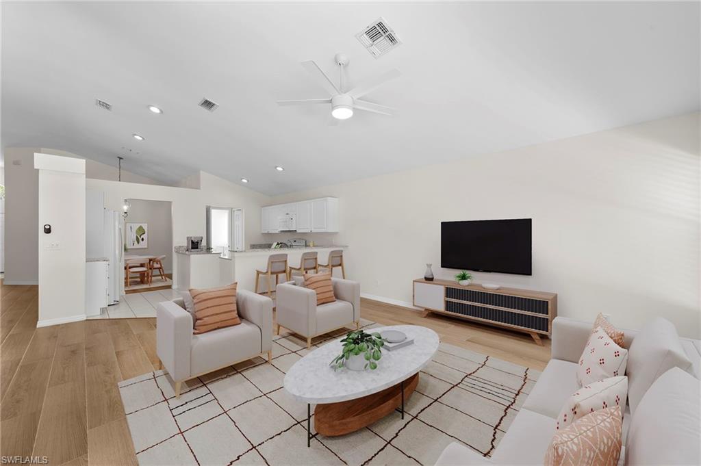 "Live Life Beautifully In Southwest Florida" in this Elegantly Updated Lakeview Condo in The Orchards – Central Naples. This beautifully updated 3-bedroom, 2-bathroom condo in the highly desirable Orchards community offers comfort, style, and an unbeatable location in the heart of Naples. Featuring brand-new wood flooring throughout, a fully renovated kitchen with new cabinets, tile backsplash, and stainless steel appliances, this home is both move-in ready and turnkey furnished — most furnishings are brand new and never used. The freshly painted interior boasts modernized bathrooms with quartz countertops, stylish tile work, and contemporary light fixtures. Enjoy tranquil mornings with stunning eastern lake views from your private screened lanai. Additional upgrades include plantation shutters on nearly every window and electric hurricane screens for peace of mind. The home includes a 1-car attached garage, an extended driveway, and guest parking conveniently located just across the street. All of this just one block from the community clubhouse, where residents enjoy a resort-style pool, fitness center, playground, tennis and pickleball courts. The Orchards is a gated community ideally located just: 3 miles to Vanderbilt Beach & The Ritz-Carlton Beach Resort Across from Tiburón & The Ritz-Carlton Golf Resort Less than 10 minutes to Mercato, 15 minutes to Downtown Naples & 25 minutes to Southwest Florida International Airport. Don’t miss this opportunity to own a stylish, low-maintenance home in one of Naples’ most central and convenient locations!