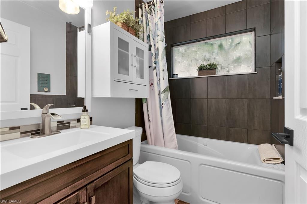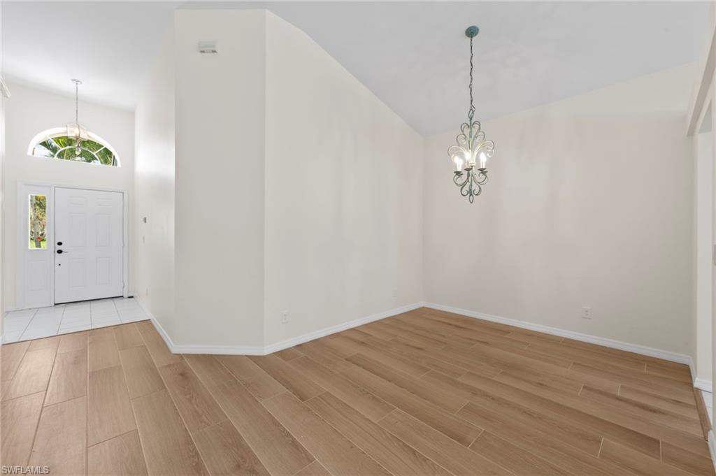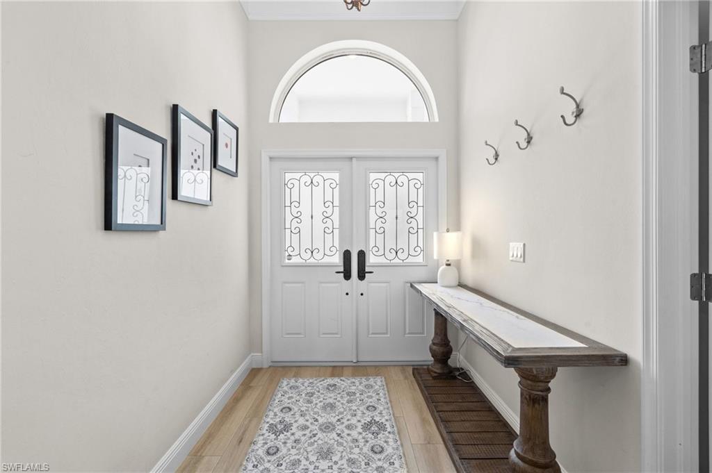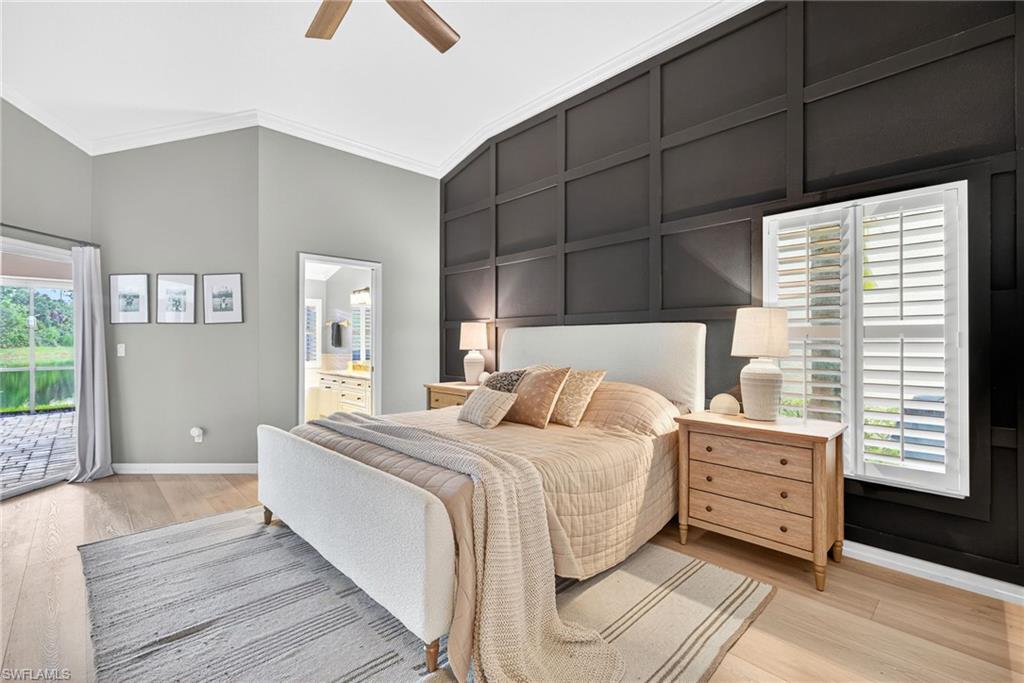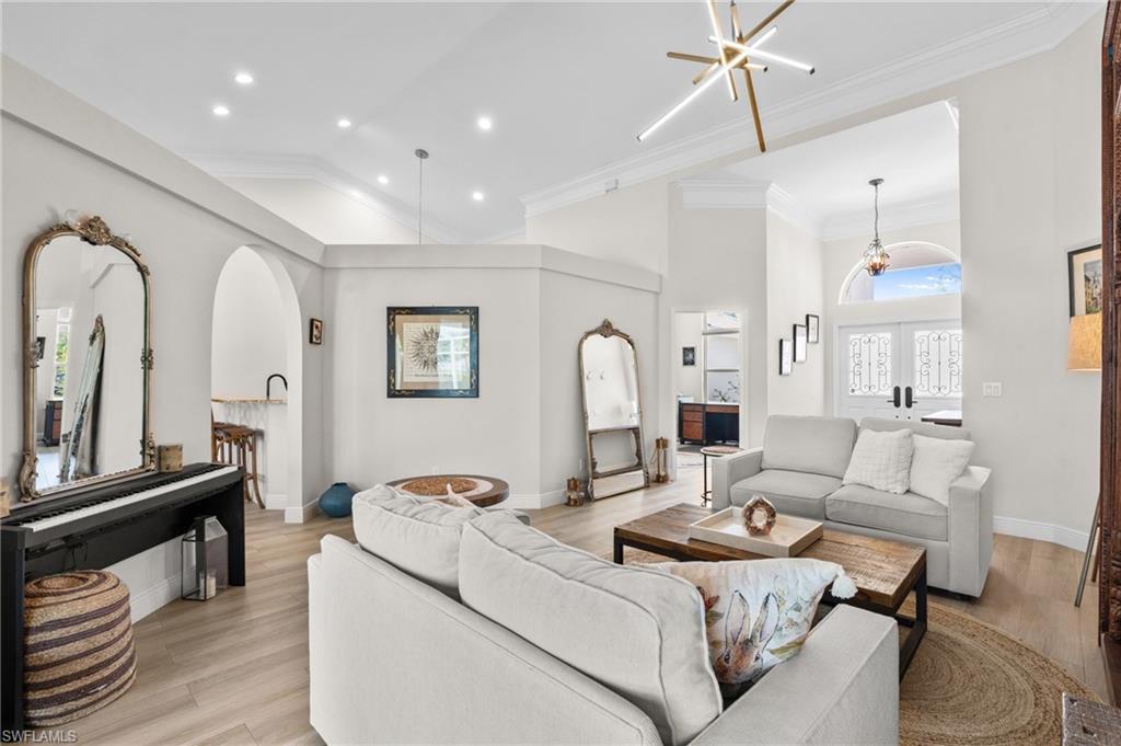 A rare opportunity to own a beautifully upgraded 4+ den / 3-bath lakefront home in the highly sought-after 34109 ZIP code. This spacious 2,626 sq. ft. residence underwent a complete remodeling in 2019, adding 450 sq.feet of living area, including a reconfigured new metal roof, an additional custom-built room and extensive interior and exterior enhancements. 3rd bathroom added in place of the laundry room, washer and dryer moved to the garage. What used to be a dining room is now an office, but can also be used as additional room or home gym or yoga studio. Enjoy unobstructed lake views through premium custom impact windows installed throughout the home, paired with impact-rated front and garage doors for full hurricane protection. A new AC system with completely redesigned ductwork ensures clean, efficient airflow year-round. Luxurious wood-look tile flooring creates a seamless, tranquil aesthetic across the entire home. The 2019 renovation also included a $400k+ custom addition by a renowned contractor, expanding the living space, and transforming the 800 sq. ft. lanai with a fully renovated pool, picture screen pool cage and cypress wood ceiling—an ideal setting for relaxing or entertaining. The main living area features soaring cathedral ceilings and elegant crown molding throughout. The spacious kitchen and all three bathrooms have been fully updated, complemented by designer lighting, wood plantation shutters, custom closets, and numerous additional custom upgrades. Ideally situated within the Orchards community and just 3 miles from Vanderbilt Beach and Mercato, minutes from top-rated North Naples public and private schools, this home offers the perfect combination of luxury living, convenience, and the highly desirable North Naples lifestyle. The Orchards neighborhood features 2 community pools with hot tubs, a clubhouse, tennis, pickle-ball and basketball courts, kids playground and an established community where you would be welcomed. Don’t miss your chance to own this lakefront paradise!