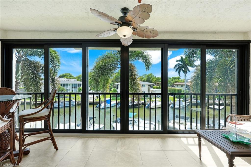 Bring your boat and your toothbrush! This unique waterfront, second floor end unit #109 offers a fully furnished, open floor plan with two screened lanais, two covered parking spaces, and easy boating access to Naples Bay. Features include three bedrooms, two bathrooms, an updated kitchen, 19-inch tile throughout, in-unit laundry, wheelchair accessibility, hurricane impact windows, plantation shutters, new lighting, new ceiling fans, and fresh paint. Conveniently located less than a mile from Tin City and the 5th Avenue restaurants, this charming Sea Eagle community includes 18 units which are hurricane resistant due to the building’s elevated structure. No units have been damaged by any hurricanes. Enjoy the beautiful pool and the spacious covered patio area with your guests and neighbors. Other amenities include an elevator, individual storage lockers, a bicycle storage room, and a conveniently located garbage chute. Sea Eagle is a boater's paradise. Boat slips are available at no additional cost. Enjoy a short boat ride to dinner at The Boat House, The Dock, Celebration… etc. Take a leisurely ride along the intercoastal waterway to Keewaydin Island and Marco Island. Come check out this rare opportunity for yourself