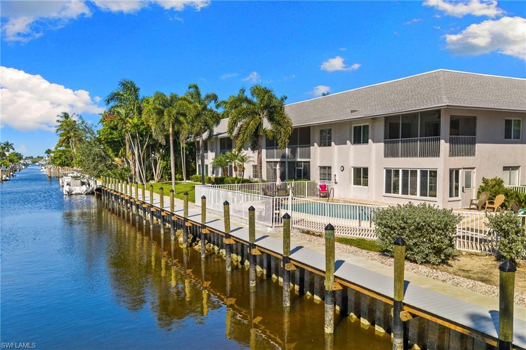 Investors - endless potential - prime investment opportunity on the water in Naples and close to downtown 5th Avenue, Naples. This well-maintained, solid concrete block construction quadruplex on the water offers four units with excellent income potential. Six ample parking spaces, a large shared heated pool, with a 6-foot privacy fence give the occupants a perfect getaway retreat. Each furnished unit has two full baths and two full bedrooms, a fully equipped kitchen with granite countertops, laundry room, dining room, open-concept living room (second-floor units have vaulted ceilings in living area) and a lanai overlooking the water. Each unit has wood/tile flooring, plantation shutters, custom glass shower doors and new ceiling fans. First-floor units offer a conjoining door that allows for the entire first floor to be shared as one unit. (Perfect for a large family.) Each unit can be rented individually. Boaters enjoy a brand new 60-foot boat dock with composite decking, boat slip equipped with bumpers to protect your vessel and quick, no-bridge access to Naples Bay and the Gulf. Your vision, your opportunity!