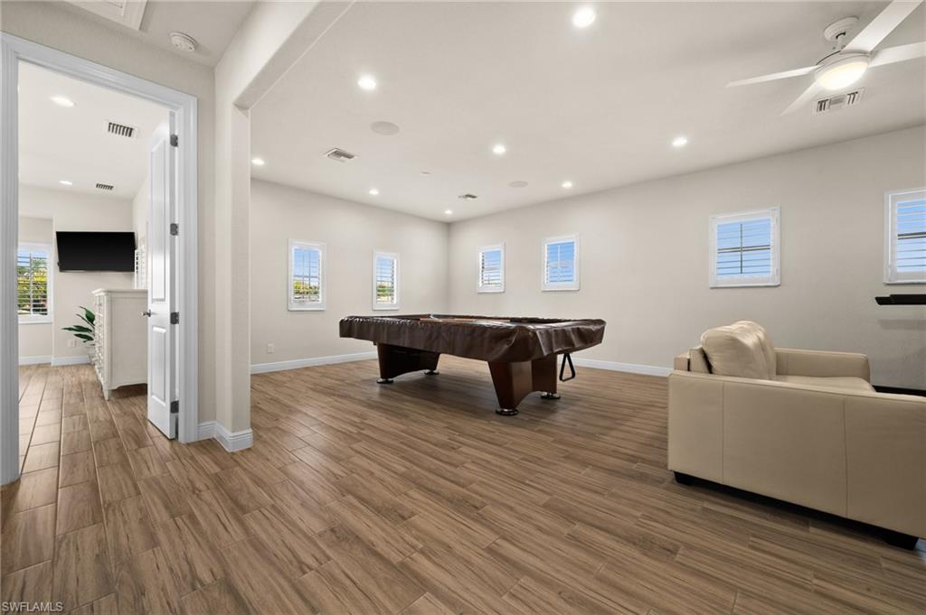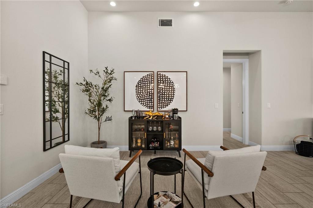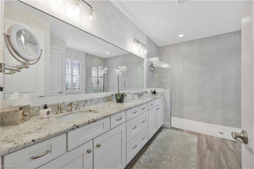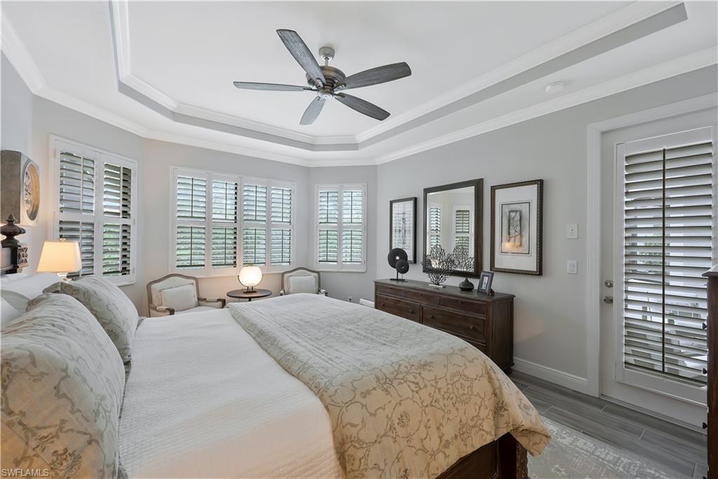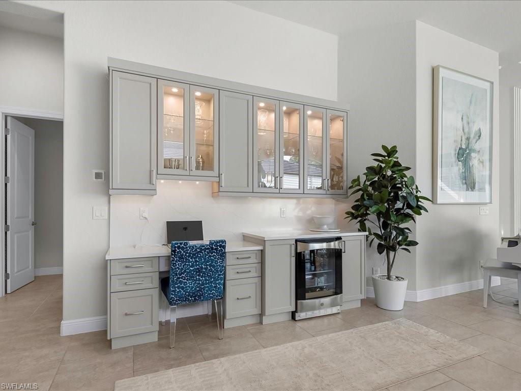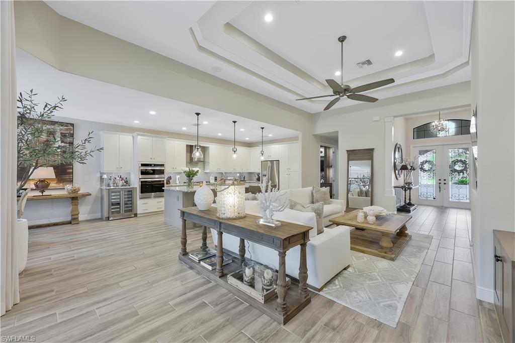 Tucked inside one of Naples’ most exclusive enclaves, this distinguished residence stands out as one of the most extensively upgraded homes ever available in Palazzo at Naples. The beautifully customized Toll Brothers property, built in 2018, welcomes you with impeccable curb appeal, top of the line finishes and fixtures, and impact glass doors and windows. The open concept Serino floorplan features exceptionally high ceilings, a columned entry, and a natural flow between indoor and outdoor living. The private lanai setting is an absolute dream with a saltwater pool, calming water features, an outdoor kitchen fit for a grill master, and covered lanai space complemented by a one of a kind firepit. Palazzo is one of the few communities in the area with natural gas, which fuels this home’s full house Generac generator, an invaluable feature for year round peace of mind. Style and luxury combine to make the perfect owner’s suite complete with dual walk in closets, built ins, floor to ceiling shower tile, gorgeous coffered ceiling work, and upgraded lighting accents. Even more enhancements include (1) a brand new A/C system installed in August 2025, (2) a new 2024 gas pool heater, (3) custom built interior plantation shutters, (4) Delta Heat outdoor appliances, (5) a Sonos indoor/outdoor speaker system, and (6) a new super sized washer and dryer. With no CDD and low HOA fees that cover all landscaping and common area maintenance, this stunning home provides both convenience and accessibility to beaches, shopping, dining, I-75, and top clubs Quail Creek Country Club, Quail Village Golf Club, and the Longshore Lake Club.