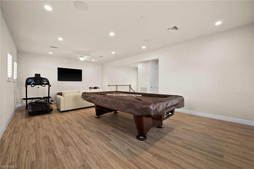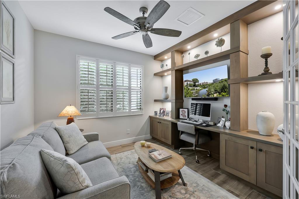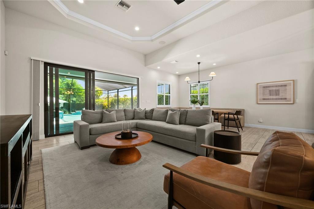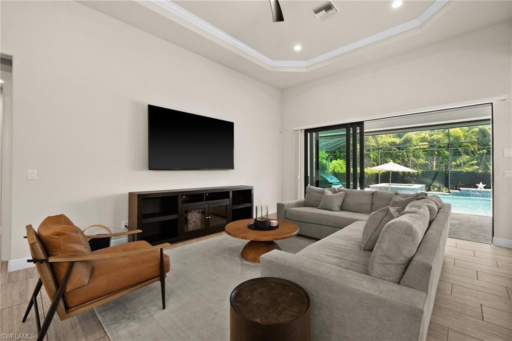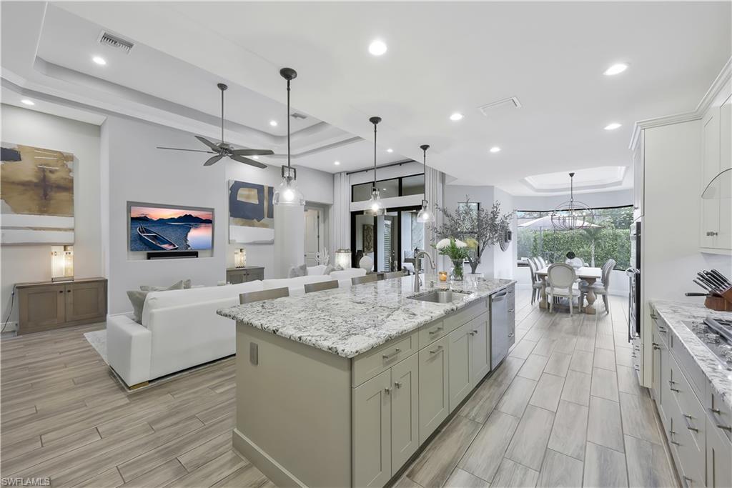 Do not miss this opportunity - this home shows like a model with nearly every builder upgrade! Luxury and charm are combined with world-class craftsmanship to deliver this showcase Toll Brothers built home in the exclusive gated natural gas community of Palazzo at Naples. Situated on a premium Western-facing .25-acre oversized lot, this one-owner home features 3 bedrooms plus den, 2 full bathrooms plus a powder bath and an oversized 2-car garage. As you enter the foyer, you are greeted by a dramatic wood planked barrel ceiling that leads to the open concept great room area with soaring dual-tray ceilings. A true focal point, the custom built-in entertainment console features a beautiful stone accent wall with an abundance of natural light provided by the optional transom windows. Over $270,000 in builder upgrades including impact windows and doors, mitered glass window in dining area, expanded bedrooms, expanded kitchen and dining room area, expanded master bathroom, 4’ garage extension and much more. The gourmet-inspired kitchen features upgraded cabinetry and appliance package, granite countertops with glass mosaic backsplash, upgraded upper cabinets with lighting, dry bar with built-in wine cooler, pantry with pull-out drawers and more. The master bedroom boasts two walk-in closets with built-in cabinets, upgraded wood flooring, tray ceiling and a luxurious master bathroom with free-standing tub, ceiling-mount tub filler, designer wallpaper, casement mirrors and upgraded shower with multiple heads. Glass inserted French doors lead you into the den/study, with upgraded wood flooring and a custom built-in desk that offers additional storage and organization. Enjoy the private outdoor area, finished with a large saltwater and gas heated custom pool with spa and water fountain, upgraded shell stone pavers, outdoor shower and rear privacy wall. Additional features include crown molding throughout the home, custom draperies and plantation shutters, epoxy garage flooring, built-in linen closets, masonry core foam insulation package and radiant barrier, roughed-in outdoor kitchen prep and designer light fixtures. A hidden gem nestled in the heart of North Naples, Palazzo at Naples offers its residents a low maintenance lifestyle and low HOA fees that include lawn care and dual gated entry ways. Palazzo residents also have access to join the Quail Creek Golf and Country Club, where they can choose between a social/sport or golf membership.