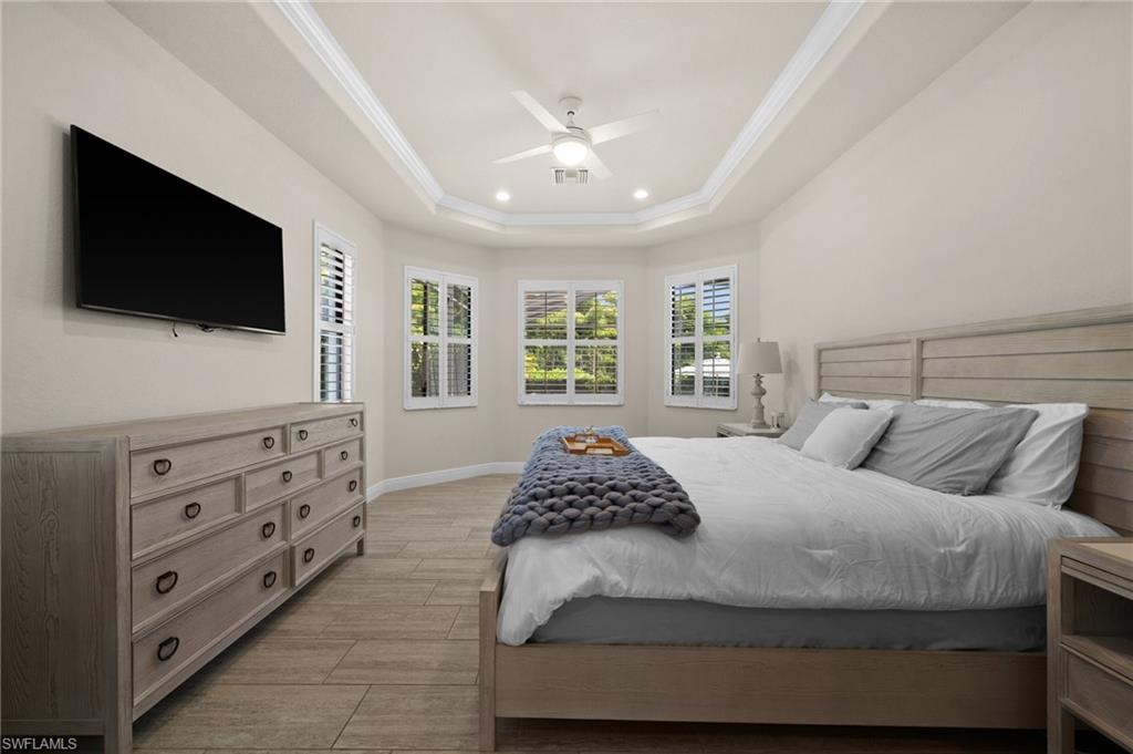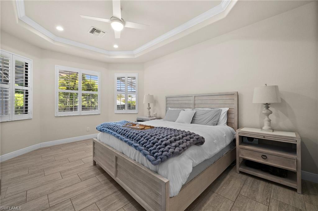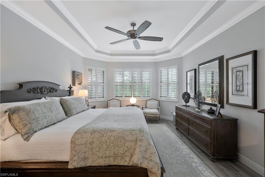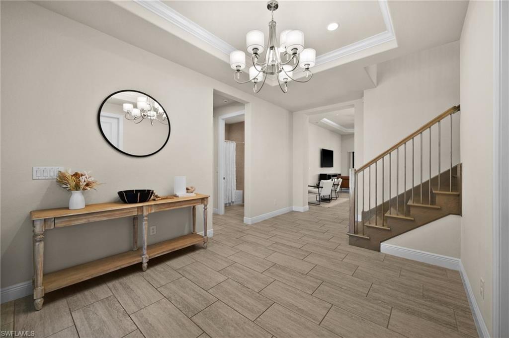 Discover refined living in this stunning two-story home located in the gated community of Palazzo. This spacious residence offers 5 bedrooms + den, 4 full baths, and a 2-car garage, with the primary suite, guest bedroom, and office on the main level—an ideal layout for comfort and convenience. This home welcomes you with soaring ceilings, creating a bright and open feel. The chef’s kitchen features a large island with seating, granite countertops, and premium stainless-steel appliances. Additional highlights include two main-level suites, a mahogany staircase, crown molding, surround sound throughout, and a new HVAC system. Upstairs, you will find three additional bedrooms and a versatile den. The screened lanai with a sparkling pool provides a private outdoor retreat perfect for relaxation or entertaining. Ideal North Naples located near Naples’ beaches, shopping, dining, and cultural attractions, this home offers timeless design paired with modern comfort.