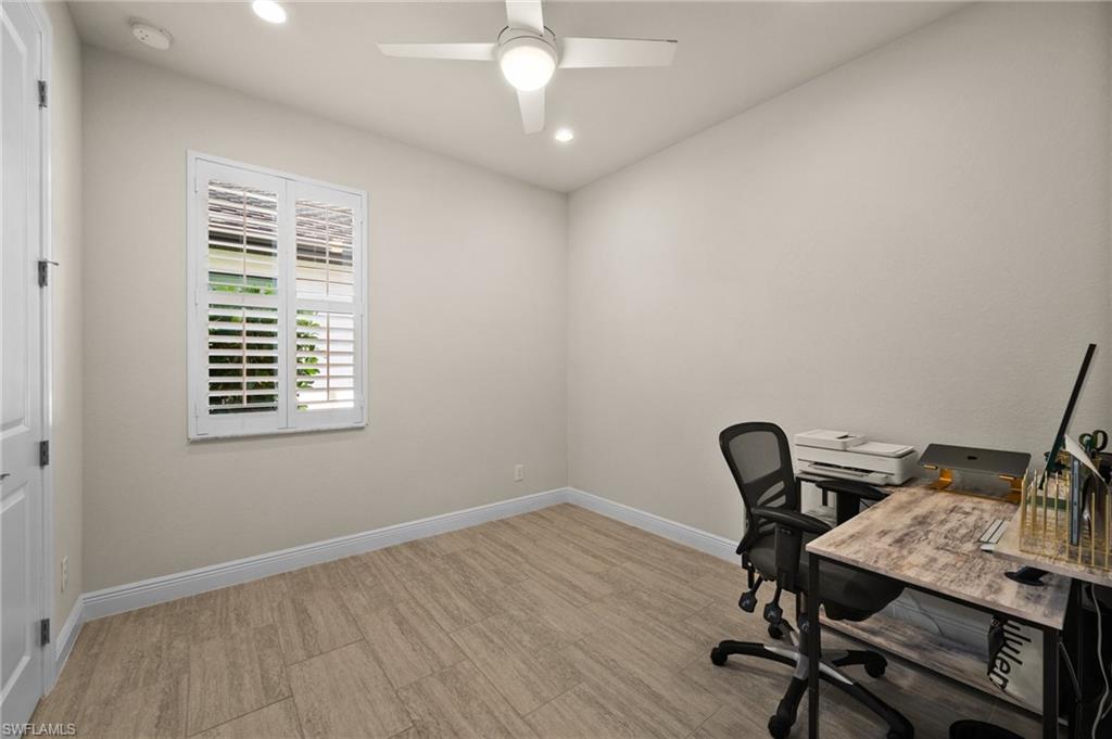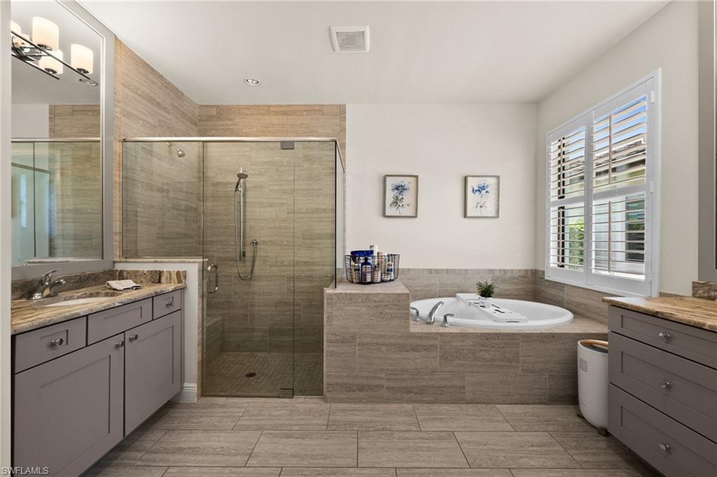 Welcome to this exceptional Toll Brothers residence in Palazzo at Naples, a boutique gated community offering luxury living in one of North Naples most sought-after locations. Built in 2018, this beautifully upgraded home features 3 bedrooms, a spacious den, and 2.5 bathrooms, all thoughtfully designed to deliver modern comfort, style, and functionality. Showcasing quality craftsmanship throughout, the home includes rich wood-look tile flooring, custom ceilings and lighting, and an open-concept layout ideal for both everyday living and entertaining. The gourmet kitchen is a true showpiece, complete with sleek cabinetry, stainless steel appliances, a natural gas cooktop, and an oversized quartz waterfall island, perfect for hosting gatherings or enjoying quiet evenings at home. The luxurious primary suite offers a serene retreat with a freestanding soaking tub, a massive walk-through shower, elegant tile finishes, and two large custom walk-in closets for ample storage. Step outside to your own private backyard oasis featuring a sparkling pool and spa, surrounded by lush landscaping, ideal for year-round relaxation and entertaining. Additional highlights include hurricane-impact doors and windows, storm smart electrionic shutters on the lanai, a custom-designed laundry room, natural gas access, an oversized two-car garage, no CDD fees, and low HOA dues. Enjoy peace of mind with a whole-home Generac generator, Storm-Smart Electronic shutters on the lanai, and the added benefit of being located outside of a flood zone. Residents have the option to join nearby Quail Creek for additional lifestyle amenities. And with a convenient location just off Immokalee Road and I-75, you're only 6 miles to the Gulf’s white-sand beaches, 20 minutes to RSW International Airport, and close to top-rated schools, championship golf, upscale dining, shopping, and more. This is a rare opportunity to own a beautifully upgraded home in a prime North Naples location.