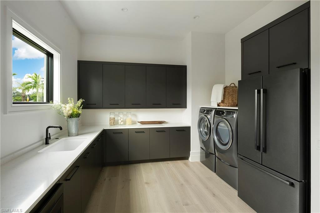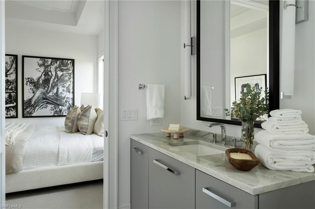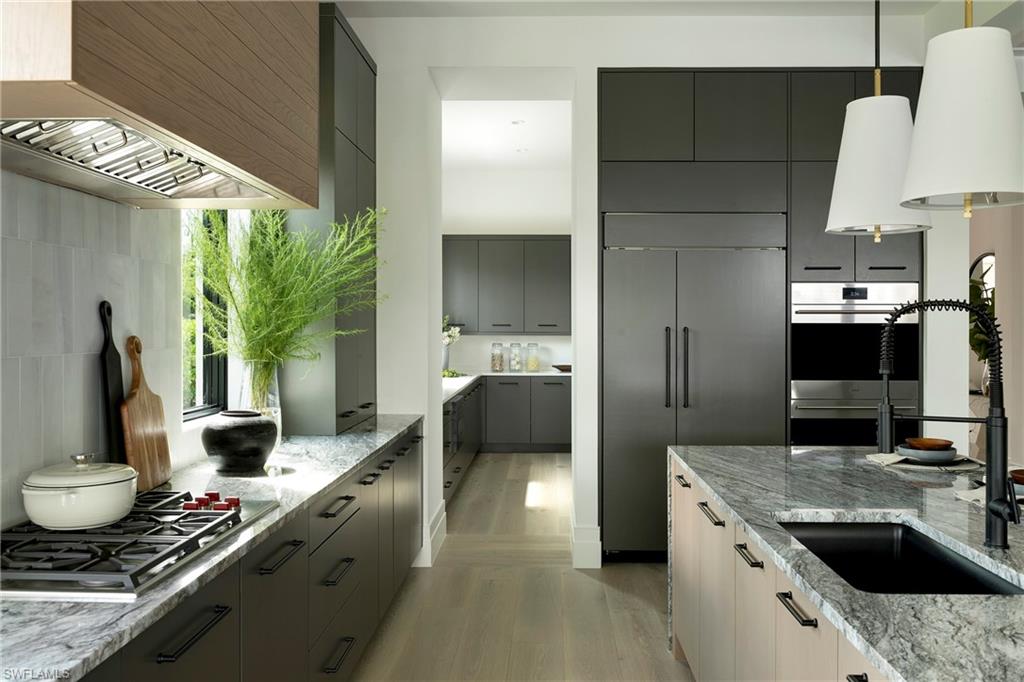 DESIGNER FURNISHED AND MOVE-IN READY HOME AVAILABLE NOW! Seagate Development Group and Theory Design present the professionally designed and furnished Laguna Model Custom Home in PALISADES, one of Seagate’s newest, gated communities in the heart of Naples. This custom home is a collaboration between Seagate Development Group and Theory Design with Architecture by JMDG Architecture, and custom landscape & hardscape design by Outside Productions. Enjoy a pacific modern design with steel gray and neutral tones with black accents, warm European White Oak floors, tray ceilings and textured wallcovering accents. This custom home features 3 bedrooms, study, 3 full and 2 half baths, and an oversized 3-car garage. The outdoor living area features electric roll down screens, tongue and groove stained ceiling, outdoor kitchen, stone fireplace, turf sun deck, pool bath, custom pool with water feature wall, spa and lush landscaping. The home has an open floor plan with tray ceilings throughout. The gourmet kitchen includes two tone cabinetry, glass upper cabinets with lighting, tile backsplash, custom hood, under cabinet lighting, island with 3” mitered waterfall countertop, paneled Sub Zero/Wolf appliance package, windows for natural lighting, and walk-in pantry with cabinetry and refrigerator. The great room includes a bar with an ice maker and undercounter beverage refrigerator. The master suite features a sitting area with sliding glass doors leading to the covered lanai. The master bathroom features honed marble floors and comes equipped with Kohler plumbing fixtures including a private water closet, soaking tub, spacious shower with 3 showerheads and a linen closet. Additional luxury features include 9.45” European White Oak wood floor throughout, custom built-in closets, 1 ¾” solid interior doors, Emtek door hardware, linear HVAC diffusers in common areas, level 5 drywall, double pane Andersen impact windows & doors, Control4 home automation system, sound system, spray foam insulation, custom iron front door, natural gas, lush landscaping, and interior designer selected custom light fixtures and furnishings. Palisades is an enclave of 25 custom homes situated in a premier Naples location with abundant amenities. Palisades is only minutes away from Mercato, Waterside Shops, 2 Ritz-Carltons, and other exceptional shopping, dining, and beachfront destinations. Seagate’s portfolio of companies specialize in custom homes, renovations, interior design, estate management, and land development. Together, bringing exceptional concierge levels of service to everything we do. SALES CENTER OPEN DAILY.