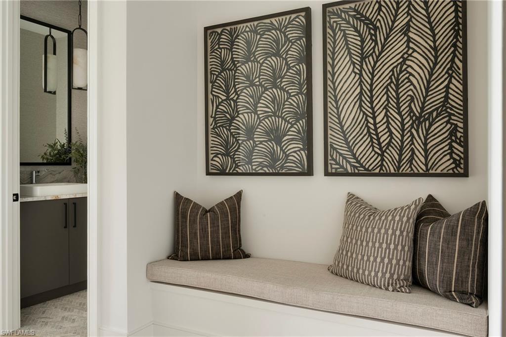 FULLY FURNISHED HOME READY EARLY WINTER 2026. Seagate Development Group and Theory Design present the professionally designed and furnished Coronado Model Custom Home in Palisades, one of Seagate’s newest, gated communities in the heart of Naples. This custom home is a collaboration between Seagate Development Group and Theory Design with Architecture by JMDG Architecture, and custom landscape & hardscape design by Outside Productions. Enjoy a modern design with charcoal, linen and dove gray tones, warm stained European White Oak flooring, and wood and wall covering accents throughout. This custom home features 4 bedrooms, study, clubroom, 4 full and 2 half baths, and an oversized 3-car garage. The outdoor living area features electric roll down screens, tongue and grooved stained ceiling, outdoor kitchen, lounge space, pool bath, custom pool with spa and lush landscaping. The main floor has an open floor plan with double stepped tray ceilings throughout. The gourmet kitchen includes custom stacked cabinetry, natural stone backsplash, custom hood, island with waterfall countertop, paneled Sub Zero/Wolf appliance package. The master suite features a sitting area with sliding glass doors leading to the covered lanai. The master bathroom features honed marble floors and comes equipped with Kohler plumbing fixtures including a private water closet, dual vanities, soaking tub, and spacious shower with 3 showerheads. The custom staircase leads to the second floor which offers 2 VIP guest suites and a clubroom with a built-in bar with undercounter beverage fridge. Additional luxury features include 9.45” European White Oak wood floor throughout the main floor and clubroom, custom built-in closets, 1 ¾” solid interior doors, Emtek door hardware, linear HVAC diffusers in common areas, level 5 drywall, double pane Andersen impact windows & doors, Control4 home automation system, sound system, spray foam insulation, custom iron front door, natural gas, lush landscaping, and interior designer selected custom light fixtures and furnishings. Palisades is an enclave of 25 custom homes situated in a premier Naples location with abundant amenities. Palisades is only minutes away from Mercato, Waterside Shops, 2 Ritz-Carltons, and other exceptional shopping, dining, and beachfront destinations. Seagate’s portfolio of companies specialize in custom homes, renovations, interior design, estate management, and land development. Together, bringing exceptional concierge levels of service to everything we do. SALES CENTER OPEN DAILY. This listing contains rendering photos.