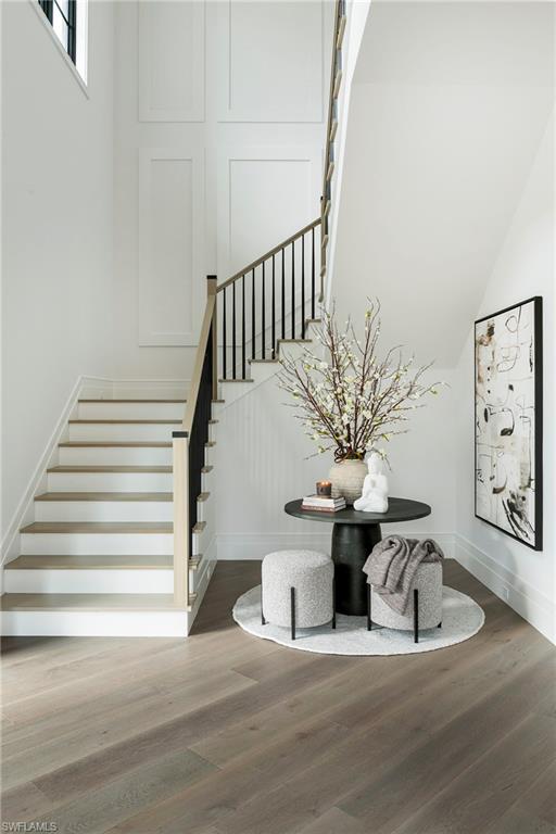 DESIGNER FURNISHED AND MOVE-IN READY HOME AVAILABLE NOW! Seagate Development Group and Theory Design present the professionally designed and furnished Newport Custom Home in Palisades, one of Seagate’s newest gated communities in the heart of Naples. This custom home is a collaboration between Seagate Development Group and Theory Design with Architecture by JMDG Architecture, and custom landscape & hardscape design by Outside Productions. Enjoy a coastal modern design with earthy colors, natural muted European White Oak floors and textured wall-covering accents. This custom home features 4 bedrooms, study, clubroom, 4 full and 2 half baths, and an oversized 3-car garage. The outdoor living area features electric roll down screens, tongue and groove stained ceiling, outdoor kitchen, stone fireplace, lounge space, pool bath, custom pool with water feature wall, spa and lush landscaping. The main floor has an open floor plan with double stepped tray ceilings throughout. The gourmet kitchen includes two tone stacked cabinetry, full height natural stone backsplash, natural stone custom hood, under cabinet lighting, island with waterfall countertop, paneled Sub Zero/Wolf appliance package and walk-in pantry. The dining area includes a bar with an ice maker and a full height wine refrigerator. The master suite features a sitting area with sliding glass doors leading to the covered lanai. The master bathroom features natural stone floors and comes equipped with Kohler plumbing fixtures including 2 private water closets, dual vanities, and an oversized shower with 4 showerheads and a soaking tub. The custom staircase leads to the second floor which offers 2 VIP guest suites as well as a clubroom with a built-in bar with undercounter beverage fridge. Additional luxury features include 9.45” European White Oak wood floor throughout the main floor and clubroom, custom built-in closets, 1 ¾” solid interior doors, Emtek door hardware, linear HVAC diffusers in common areas, level 5 drywall, double pane Andersen impact windows & doors, Control4 home automation system, sound system, spray foam insulation, custom iron front door, natural gas, lush landscaping, and interior designer selected custom light fixtures and furnishings. Palisades is an enclave of 25 custom homes situated in a premier Naples location with abundant amenities. Palisades is only minutes away from Mercato, Waterside Shops, 2 Ritz-Carltons, and other exceptional shopping, dining, and beachfront destinations. Seagate’s portfolio of companies specialize in custom homes, renovations, interior design, estate management, and land development. Together, bringing exceptional concierge levels of service to everything we do. SALES CENTER OPEN DAILY.