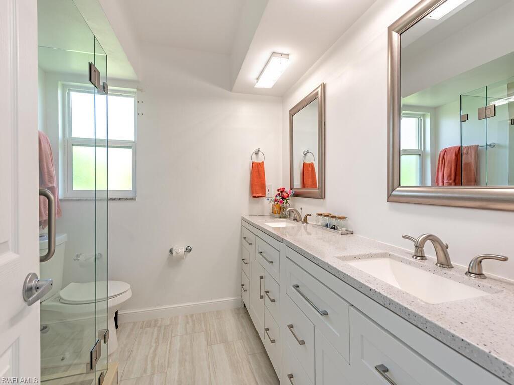 Looking for a meticulously maintained pool home with over 2700 sf. of living space, 5 bedrooms 3.5 baths in a community with NO HOA FEES, on a quiet cul-du-sac situated on a 1/3 acre of land that feels like your own private retreat? Well, here it is! Listen to just some of the amenities and upgrades that this home offers and see why we think this is arguably the best deal in all of North Naples, let alone Palm River Estates. ENPHASE WHOLE HOME ENERGY SYSTEM (2022) resulting in electric bills of $25 per month. HURRICANE WINDOWS AND SLIDERS THROUGHOUT (2022). Hybrid hot water heater and Tesla charger (2022). New Roof (2018). New Washer (2023). New gutters (2024). New 24X24 Porcelain tile (2024). New piping throughout the whole house (2025). New electrical panel, surge protector and pool pump breaker (2025). Complete Pool Renovation (2021). New Dishwasher and Stove (2021). New Washing Machine (2023). New Refrigerator (2024). Pavered driveway. 2 car garage with plenty of storage space. Beautiful wide entry. Huge Formal Living room. Formal Dining area. Open concept kitchen with level 5 exotic granite, high-end stainless-steel appliances, real hardwood cabinets, 2 pantry's, breakfast bar, wine fridge, and island cooking station. Large living room overlooking the pool. Recessed lighting. Large master bedroom with separate seated dressing area, walk-in closet and sliders to the lanai and pool. Stunning updated master bathroom includes dual vanities, stepdown walk-in shower with built-in seat and 4x12 grey carrara porcelain tiled walls and pebble stone floors. Beautiful pool bath with marble top dual vanity, stepdown walk-in shower with 3x6 stone floors, porcelain tile up the walls and stone listello accents. Huge lanai with versailles pattern stone floors, gorgeous midnight blue pool and jacuzzi spa with rainbow glass waterline tile and accents. Large utility room with LG washer and dryer, folding table, utility tub and tons of storage space. You'll be hard pressed to find a home with these upgrades and amenities, in this condition, in this North Naples location, for this price. If you're looking for all this and more your search has ended. Now come and see what a real deal looks like in Naples Florida. (Realtors see attachments for complete list of upgrades, cost, and brochures). Link in confidential remarks regarding the solar system and batteries.