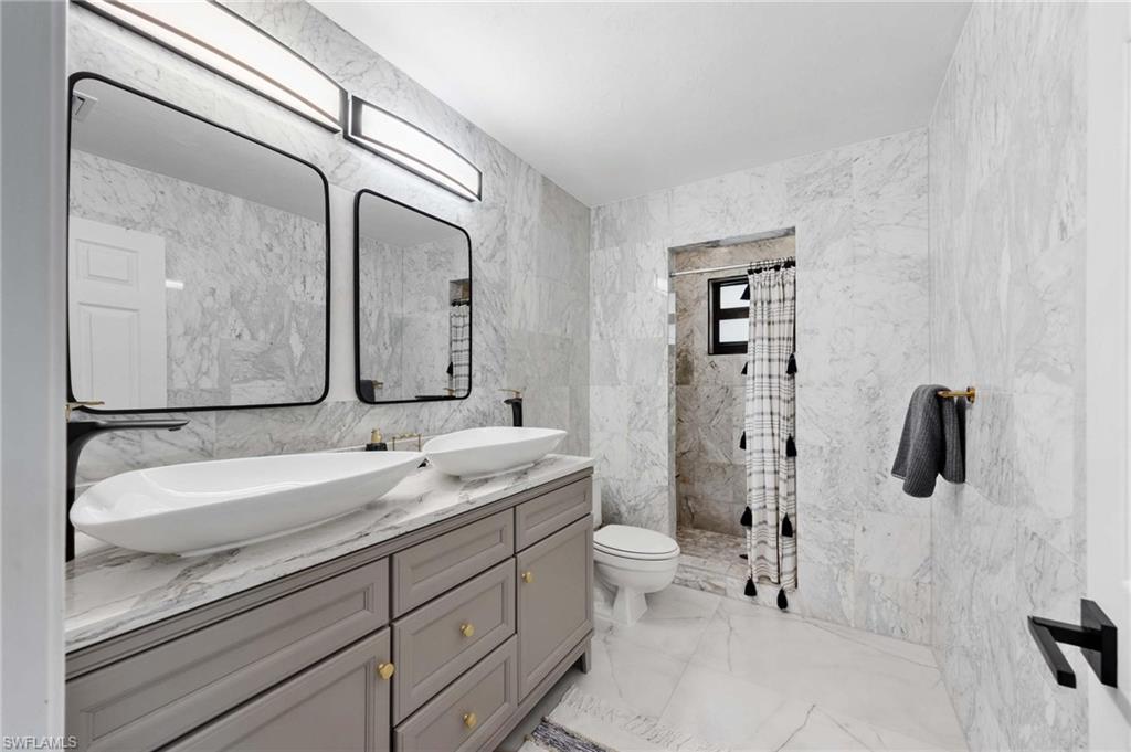 Tucked away in a quiet and highly desirable Naples neighborhood, this stunning 3-bedroom plus den, 2.5-bath residence offers the perfect blend of modern elegance and everyday comfort. Completely renovated in 2019, the home has been thoughtfully upgraded to provide peace of mind and a luxurious living experience. From the moment you arrive, you'll notice the attention to detail—starting with a newer roof, impact-resistant windows and doors, and a whole-house generator powered by an inground 500-gallon propane tank. Inside, the open-concept layout invites connection, conversation, and plenty of natural light. Vaulted ceilings enhance the sense of space, while plantation shutters and custom window treatments add a refined touch throughout. The gourmet kitchen is a true centerpiece—perfect for casual mornings or elegant entertaining. You'll love the high-end appliances, handcrafted cabinetry, and exquisite finishes that make this space as functional as it is beautiful. The primary suite is your private retreat, featuring a spa-inspired walk-in shower and upscale designer finishes. Two additional bedrooms and a den offer flexibility for guests, a home office, or hobby space. Step outside to a generous screened lanai and paved patio—ideal for outdoor dining, relaxing with a book, or planning your dream pool. The fenced backyard provides plenty of space for family activities or a garden oasis. Located in FEMA's preferred "X" flood zone, this home may not require flood insurance—adding yet another layer of value. Enjoy sunny mornings in the kitchen and peaceful evenings on the lanai, a true reflection of the home’s warmth and welcoming layout. House has a newer roof. House also has a whole house built-in vaccum system. The seller will consider owner-financing with the right terms. This move-in-ready gem is a rare find in Naples—schedule your private showing today before it’s gone!