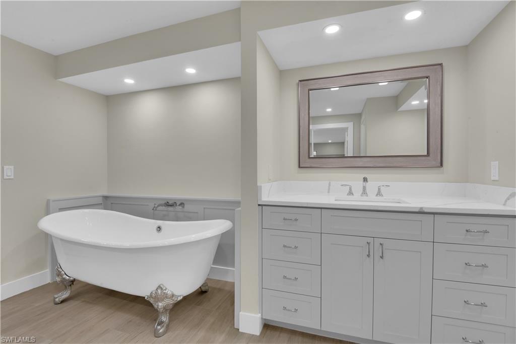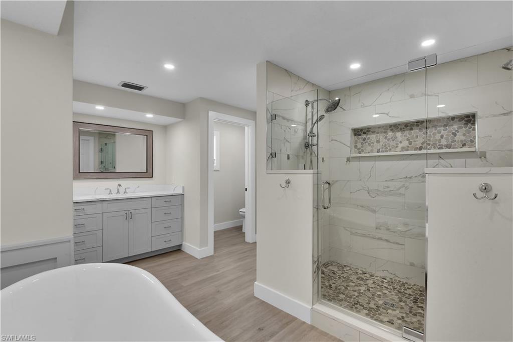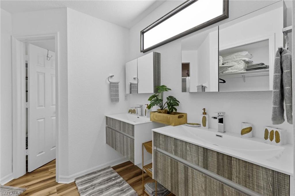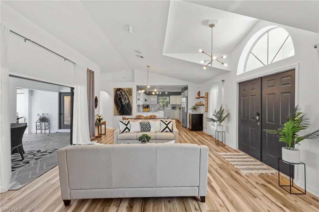 Stunning Palm River Estates Pool Home, Fully Renovated Modern Oasis. Welcome to this beautifully renovated 4-bedroom, 3-bathroom pool home situated on a spacious, south-facing lot within the desirable Palm River Estates in North Naples. This contemporary residence offers a luxurious living experience defined by thoughtful design, superior craftsmanship, and modern conveniences. Step inside to discover a fully renovated interior featuring gorgeous hardwood floors and an open-concept layout ideal for entertaining and comfortable family living. The gourmet kitchen showcases custom-designed wood cabinetry, top-of-the-line Bosch appliances, and an expansive center island seamlessly flowing into the great room. Every detail was carefully considered, with no expense spared, impact windows and doors, new electrical and plumbing systems, and a brand-new HVAC system and water heater, epoxy coating on the garage floor. Enjoy the convenience of a bespoke laundry room within the air-conditioned living space, complemented by a spacious pantry designed for ample storage. The versatile floor plan effortlessly accommodates family life, guests, and the modern work-from-home lifestyle. Step outside onto your aesthetically contemporary tiled pool lanai, perfect for relaxing, dining al fresco, or hosting gatherings. Located minutes away from premier shopping, dining, and pristine Naples beaches, this home perfectly combines contemporary luxury with an exceptional location. With a roof replaced in 2017, this property ensures both style and peace of mind for years to come. Don’t miss the opportunity to own this extraordinary residence in Palm River Estates, your perfect Naples retreat awaits!