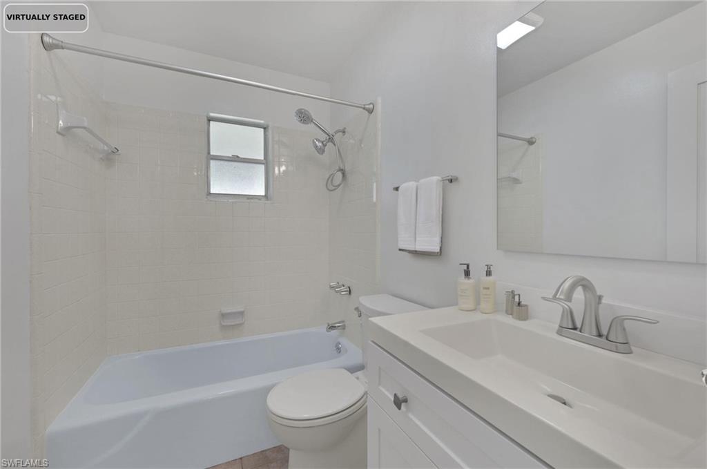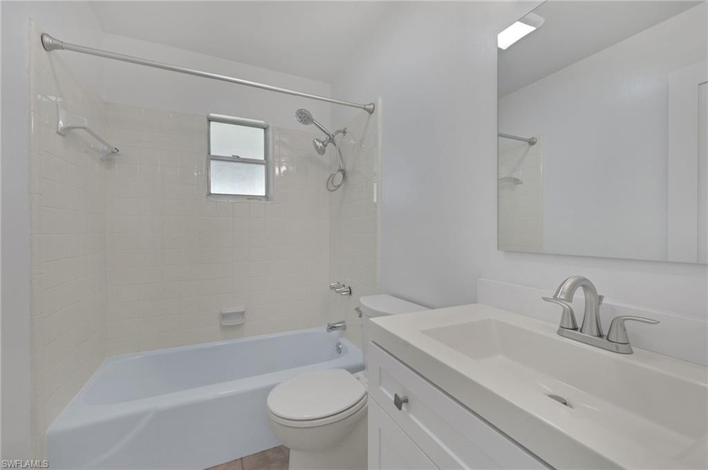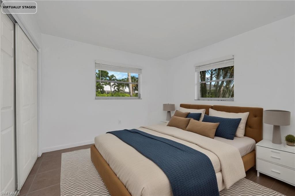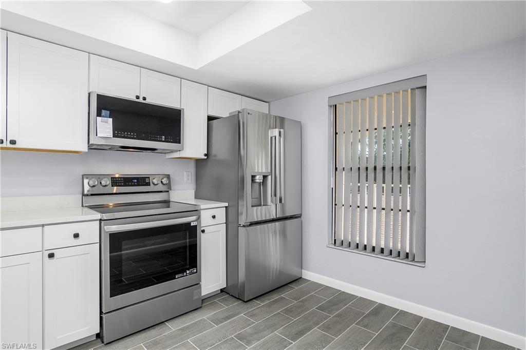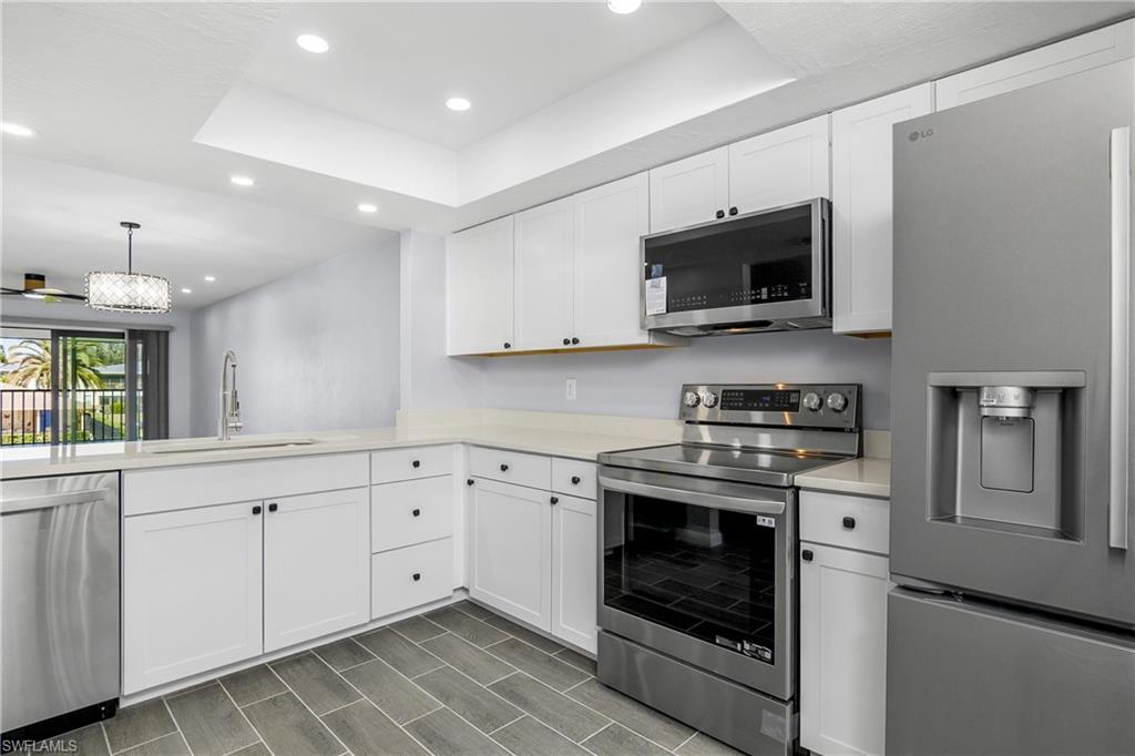 Motivated Sellers! Bring All Offers! Totally Remodeled End unit located in the desirable North Naples community of Palm River! This community is in walking distance to great dining, shopping, close to 41, The Mercato and within a 5 minute drive west to beach! This brightly lit unit offers an open floor plan with 1377 sq. ft. under air, large split bedrooms, new tile flooring throughout and in lanai, a remodeled kitchen and baths with quartz countertops & self closing cabinetry, new stainless steel LG appliances (with warranty), new A/C system (with a 5 year Warranty), new heavy duty sliding glass doors, new blinds, and new lighting fixtures throughout! The laundry room is located in the residence, the oversized screen lanai offers you a view of the community pool and lake. Unit also includes a covered carport, a 2nd assigned parking spot and an exterior storage closet! This is a pet friendly community & new owners can rent without a waiting period!