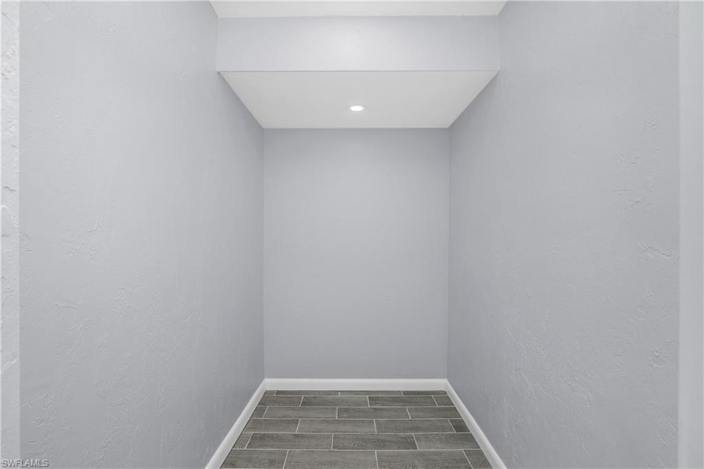 Welcome to Courtwood! Situated in the highly desirable North Naples area, this 55+ community consists of only 35 units and is well-maintained and peaceful. The property is conveniently located 3.5 miles from Wiggins State Park Beach and near NCH Hospital, shopping centers, and world-class dining, with easy access to I-75. This ground-floor condominium features a 2-bedroom, 2-bathroom split floor plan with an enclosed lanai that provides additional living space and is located just steps away from the community pool. The kitchen has been remodeled with new appliances and upgraded cabinets offering ample storage. The kitchen, bathrooms, and entryway feature elegant tumbled marble tile flooring. Peace of mind is assured as both the condominium and carport are situated in a no-flood zone and have impact-resistant windows and sliding doors. Additionally, the roof was replaced in 2024 and the air conditioner in 2022. Schedule your showing promptly, as this is the lowest-priced unit in Courtwood.
