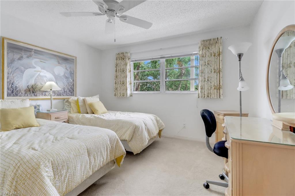 This beautiful 2-bedroom, 2-bathroom condo located in the heart of North Naples! This well-appointed residence features a bright and spacious layout, perfect for both relaxation and entertaining. Enjoy your morning coffee on the private screened lanai, where you can bask in the warm Florida sun and take in serene views. Both bedrooms are generously sized, offering comfortable retreats with plenty of natural light. The master suite includes an ensuite bathroom for added privacy and convenience. **Important: Per HOA regulations, only one car is allowed per household.**