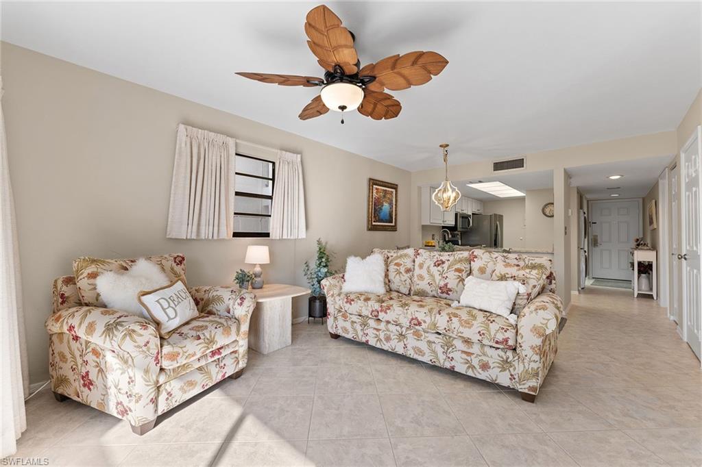 Welcome to Hidden Lake Villas, a beautifully maintained community in the heart of Park Shore, just minutes from the Gulf. This first-floor, two-bedroom, two-bath residence offers a thoughtfully designed floorplan with sought-after southern exposure from the private lanai. Recent upgrades include luxury vinyl plank flooring, new baseboards, fresh interior paint, updated fans, and a new chandelier—creating a light, coastal-inspired interior. The open-concept living and dining areas provide a warm and inviting setting for everyday living or entertaining. With its ground-floor convenience, this unit is ideal for a lock-and-leave lifestyle. Residents enjoy access to lush tropical landscaping, vibrant community amenities, and an unbeatable location near world-class shopping, dining, and the optional Park Shore Beach membership. Perfect for seasonal or full-time residents seeking a true Naples lifestyle.