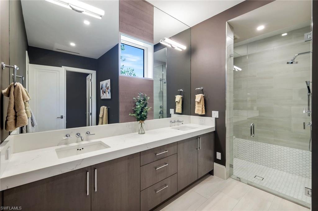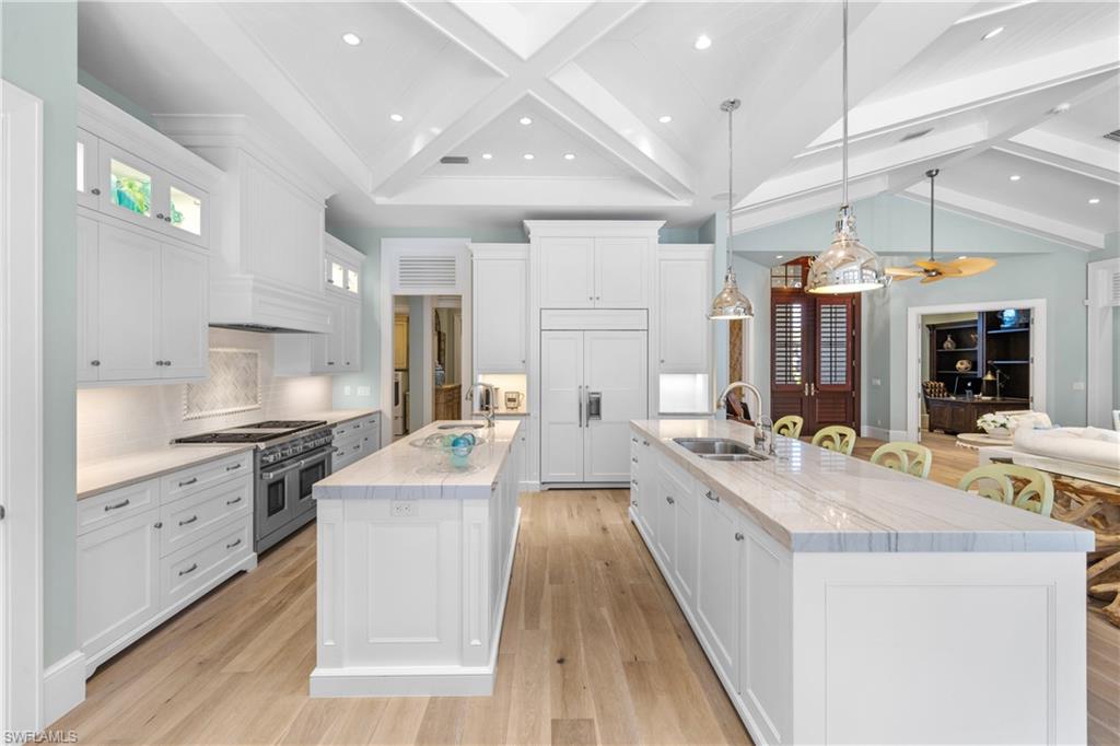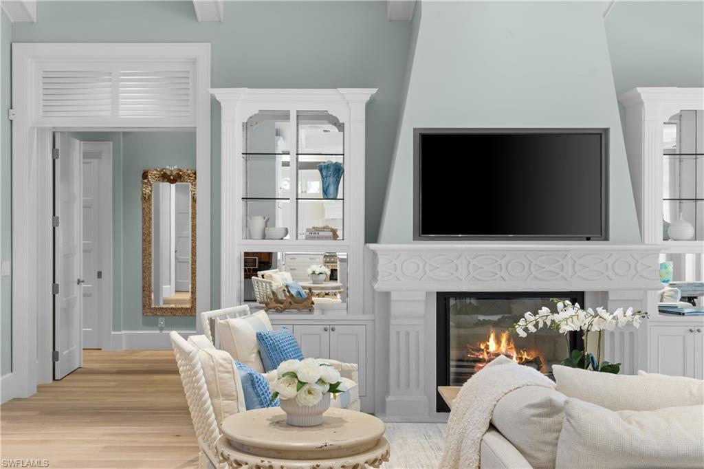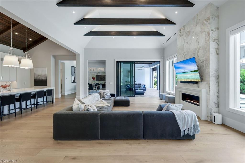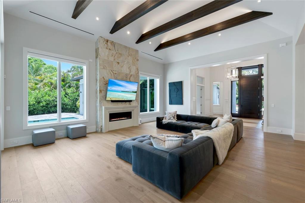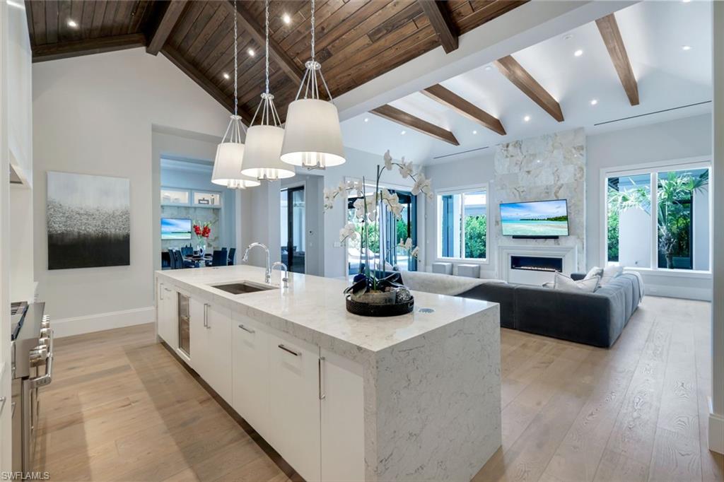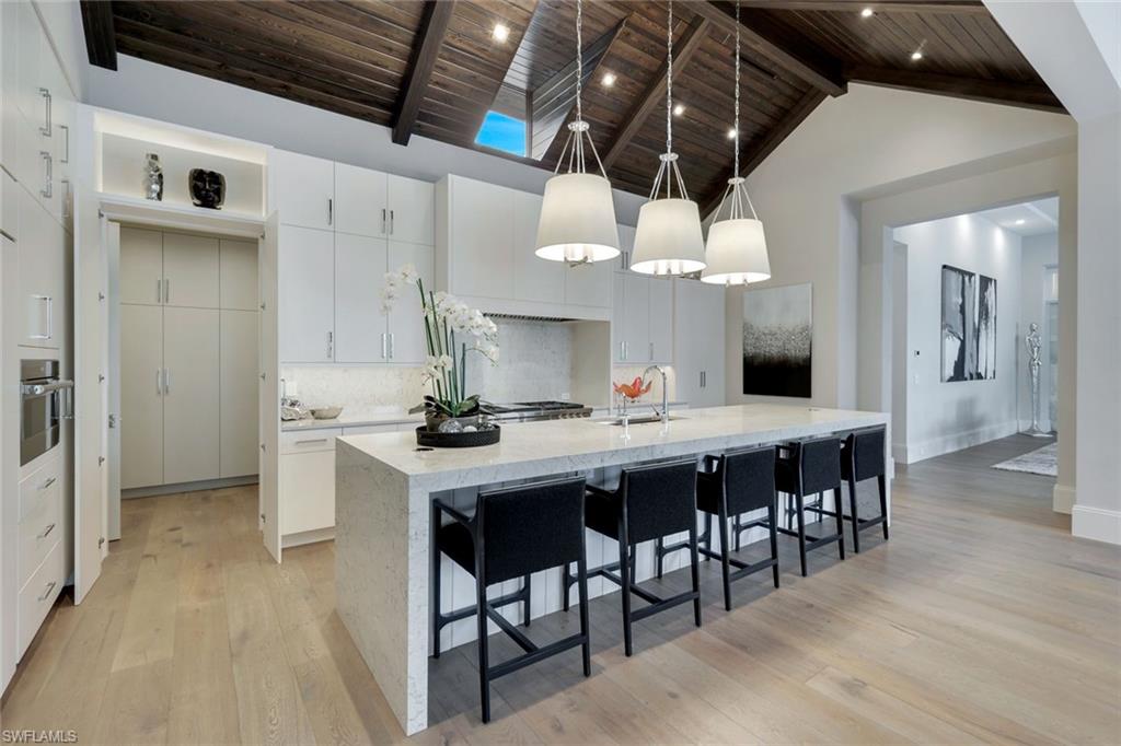 Presenting a truly exceptional custom-built estate in the prestigious Park Shore neighborhood of Naples, Florida. Designed with unparalleled craftsmanship and attention to detail, this award-winning masterpiece blends sophistication, comfort, and a prime location into one extraordinary offering. As you arrive, the home's elegant facade is framed by extensive mature landscaping, setting the stage for the grandeur within. The stunning mahogany front entrance doors open to a light-filled interior with soaring cathedral ceilings, white oak flooring throughout, and a striking fireplace anchoring the living space. The chef's kitchen is a statement in luxury, featuring dual islands, handcrafted Ruffino cabinetry, Calcite quartzite countertops, and top-tier Wolf, Sub-Zero, and Miele appliances. A walk-in pantry and a butler's pantry--complete with a second dishwasher and wine cooler--offer both convenience and refined entertaining options. Designed for both relaxation and hosting, the home boasts an exceptional outdoor living space with total backyard privacy. The south-facing saltwater pool and infinity-edge spa are bathed in sunlight all day, complemented by tranquil fountains, a marble pool deck, and a sun shelf for lounging. The outdoor kitchen, gas fire pit patio, and lanai with a fire pit table create a seamless indoor-outdoor lifestyle, perfect for entertaining under the Naples sky. Thoughtfully designed for guests and residents alike, the first level features a primary wing with spacious closets and a spa-like primary bath, a private guest suite with an en-suite bath, and an office space with custom built-in cabinetry. The second-level VIP suite offers an expansive retreat with an oversized, opulent bathroom, a private balcony, and a loft for added versatility. Perfectly positioned near Naples' renowned beaches, fine dining, and upscale shopping, this exquisite residence delivers the ultimate in luxury and lifestyle--a rare opportunity to own a truly one-of-a-kind home in one of Naples' most sought-after locations. Experience the essence of Park Shore living--schedule your private tour today.