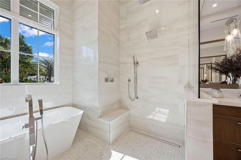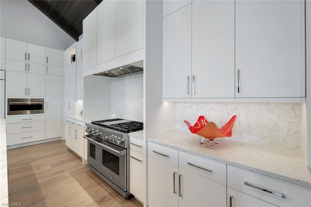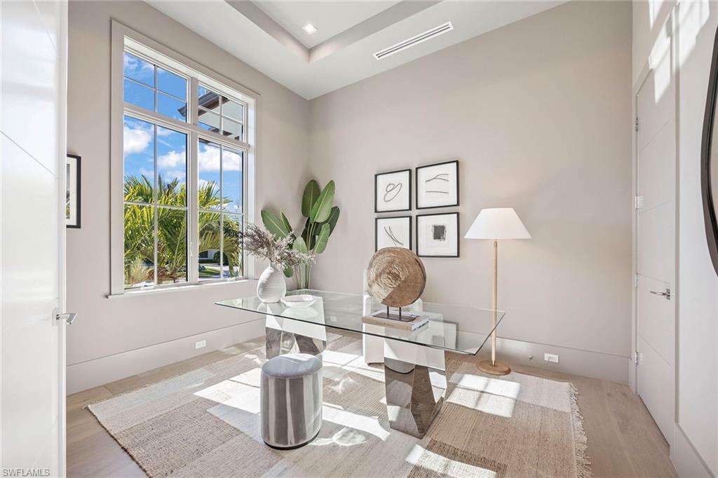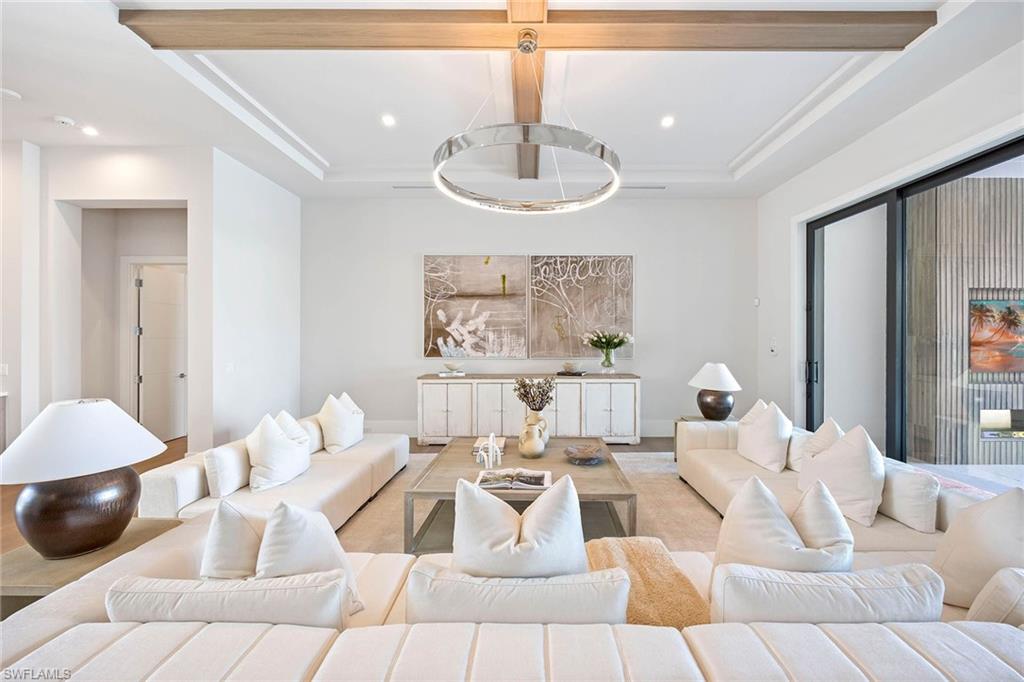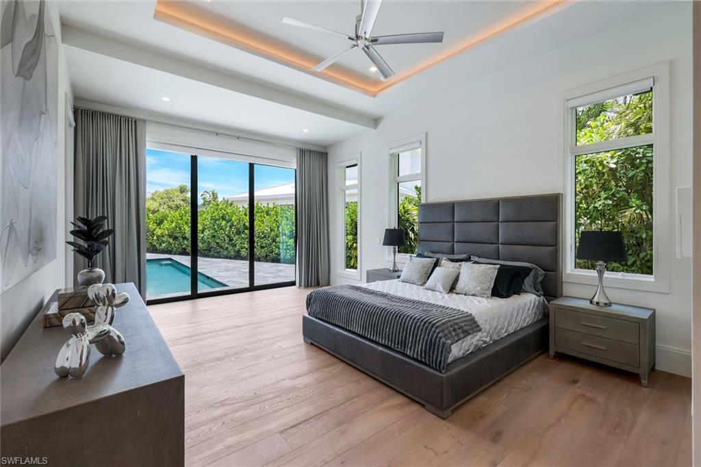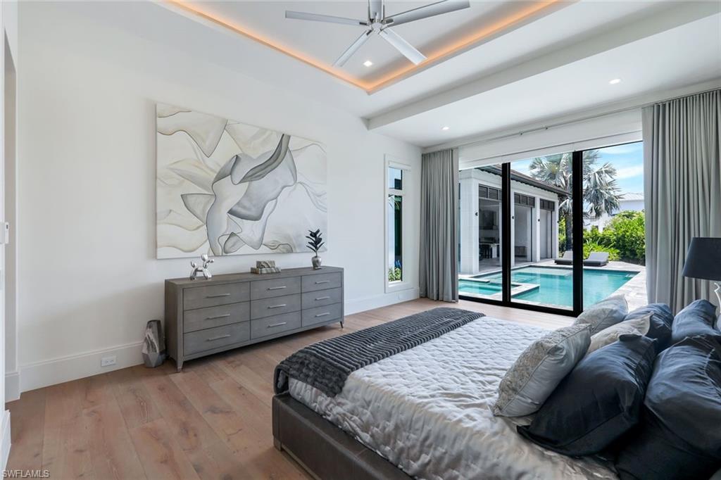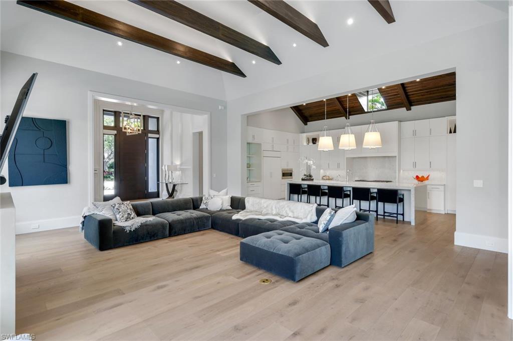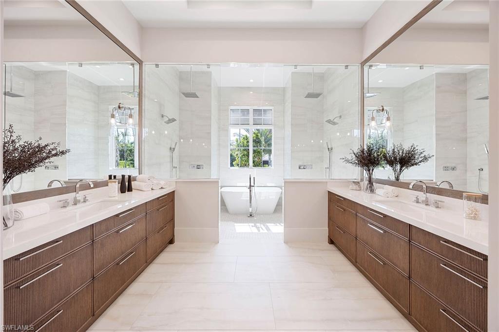 Presenting a truly exceptional custom-built estate in the prestigious Park Shore neighborhood of Naples, Florida. Designed with unparalleled craftsmanship and attention to detail, this award-winning masterpiece blends sophistication, comfort, and a prime location into one extraordinary offering. As you arrive, the home's elegant facade is framed by extensive mature landscaping, setting the stage for the grandeur within. The stunning mahogany front entrance doors open to a light-filled interior with soaring cathedral ceilings, white oak flooring throughout, and a striking fireplace anchoring the living space. The chef's kitchen is a statement in luxury, featuring dual islands, handcrafted Ruffino cabinetry, Calcite quartzite countertops, and top-tier Wolf, Sub-Zero, and Miele appliances. A walk-in pantry and a butler's pantry--complete with a second dishwasher and wine cooler--offer both convenience and refined entertaining options. Designed for both relaxation and hosting, the home boasts an exceptional outdoor living space with total backyard privacy. The south-facing saltwater pool and infinity-edge spa are bathed in sunlight all day, complemented by tranquil fountains, a marble pool deck, and a sun shelf for lounging. The outdoor kitchen, gas fire pit patio, and lanai with a fire pit table create a seamless indoor-outdoor lifestyle, perfect for entertaining under the Naples sky. Thoughtfully designed for guests and residents alike, the first level features a primary wing with spacious closets and a spa-like primary bath, a private guest suite with an en-suite bath, and an office space with custom built-in cabinetry. The second-level VIP suite offers an expansive retreat with an oversized, opulent bathroom, a private balcony, and a loft for added versatility. Perfectly positioned near Naples' renowned beaches, fine dining, and upscale shopping, this exquisite residence delivers the ultimate in luxury and lifestyle--a rare opportunity to own a truly one-of-a-kind home in one of Naples' most sought-after locations. Experience the essence of Park Shore living--schedule your private tour today.