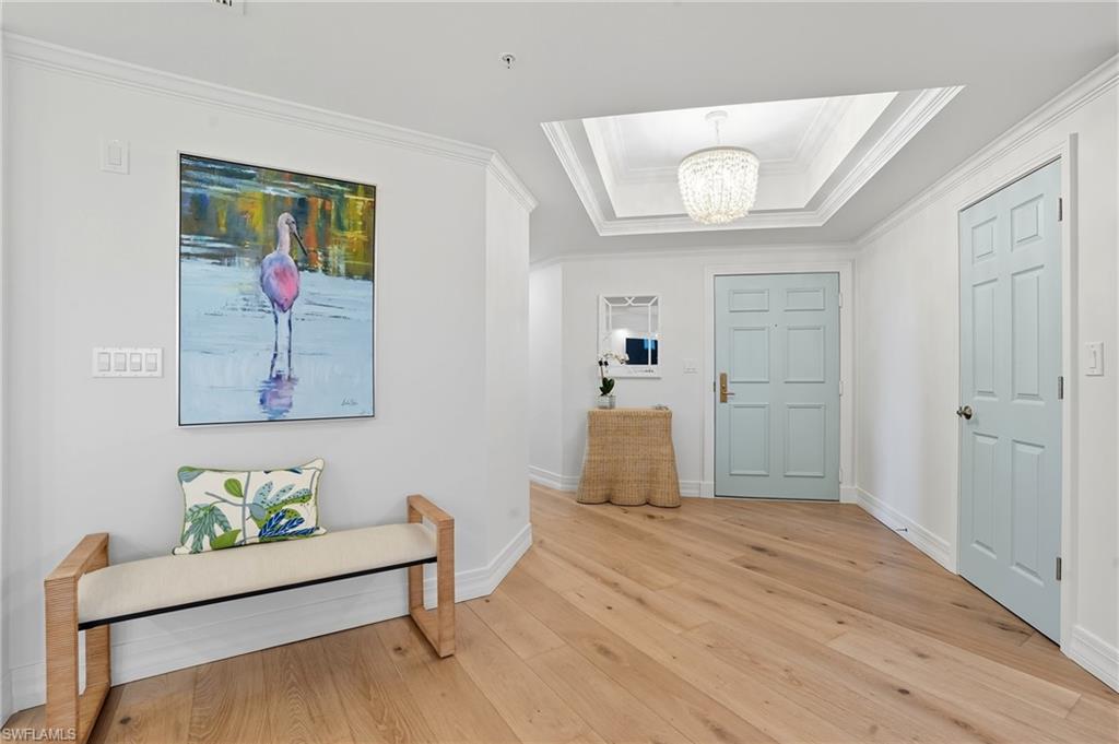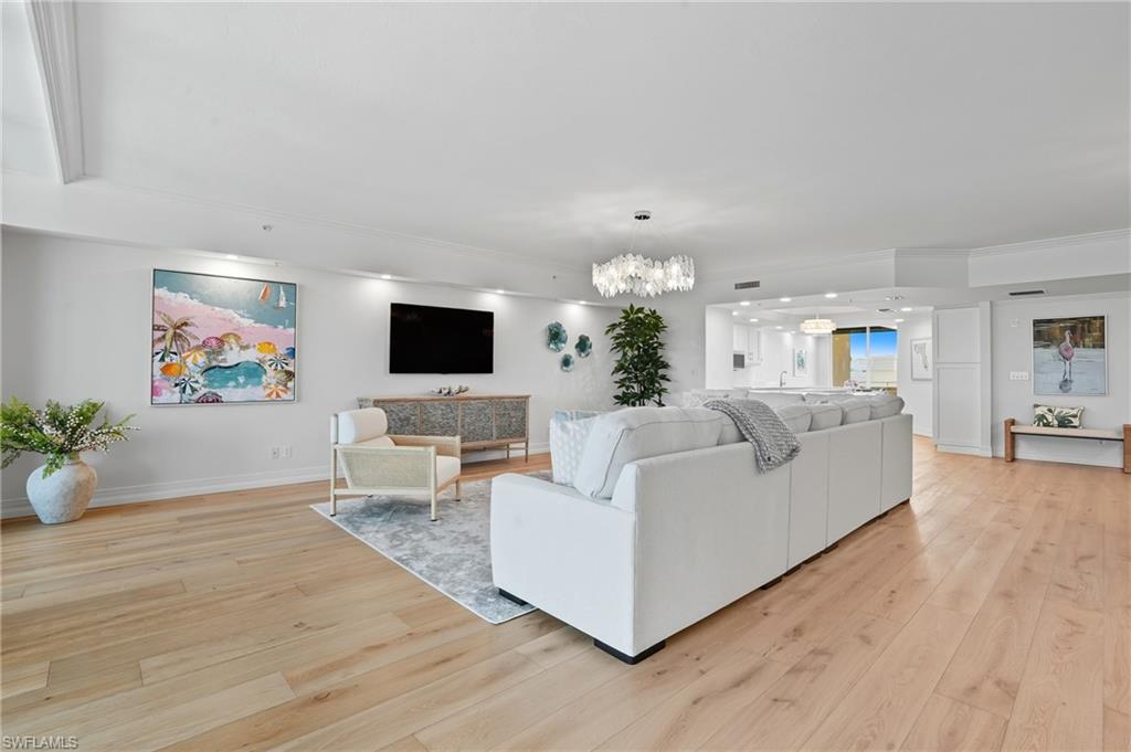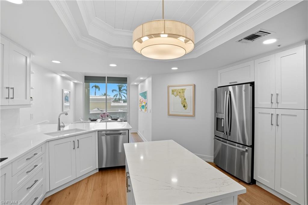 Experience unparalleled luxury living with this stunning 9th-floor condo offering spectacular views of the bay and Gulf of Mexico, located in the highly sought-after Pelican Isle. Indulge in breathtaking sunsets over the Gulf from the comfort of your own home. This property is a true paradise for beach and boating enthusiasts, situated on Wiggins Pass with direct Gulf-access and no bridges. Pelican Isle provides boat slips and lifts for vessels up to 55 feet, as well as a convenient beach shuttle for easy access to the shore (multiple slips currently available!) Features hurricane impact windows and doors, electric hurricane screens on both lanais and electric shutters on the West lanai, a new hot water heater (2023), and renovated bathrooms and kitchen. This exquisite residence features 2,677 square feet of living space, including an open-concept floor plan, three spacious bedrooms, three bathrooms, and dual balconies. The beautifully renovated chef’s kitchen boasts granite countertops, custom white cabinetry, stainless steel appliances, and an inviting eat-in area. One bedroom is set up as an office with a generous walk-in closet, private balcony, coffered ceilings and could be converted back to a bedroom. The spacious primary suite offers mesmerizing water views and a spa-like, remodeled bathroom with dual vanities and an oversized walk-in shower. Relax and unwind on your screened-in lanai, where you can enjoy the natural beauty of Southwest Florida, from the diverse wildlife to the dolphins and manatees gliding through the bay. Pelican Isle has a separate private Yacht Club membership available, ranked as one of the Top 50 Platinum Yacht Clubs in the world, granting access to endless boating opportunities, fine dining, fitness facilities, social activities, tennis, pickleball, and bocce courts. Residents also enjoy two pools with spas, a bike storage area, air-conditioned personal storage units, and secure, gated entry with 24/7 camera surveillance. The condo comes with assigned covered parking, guest parking, and a car wash area, as well as a newly renovated lobby and hallways. Located just minutes from Southwest Florida’s finest beaches—Vanderbilt Beach and Barefoot Beach—as well as premier shopping and dining at Mercato, Waterside Shops, and Naples’ iconic 5th Avenue, this residence offers easy access to both RSW and Naples airports.