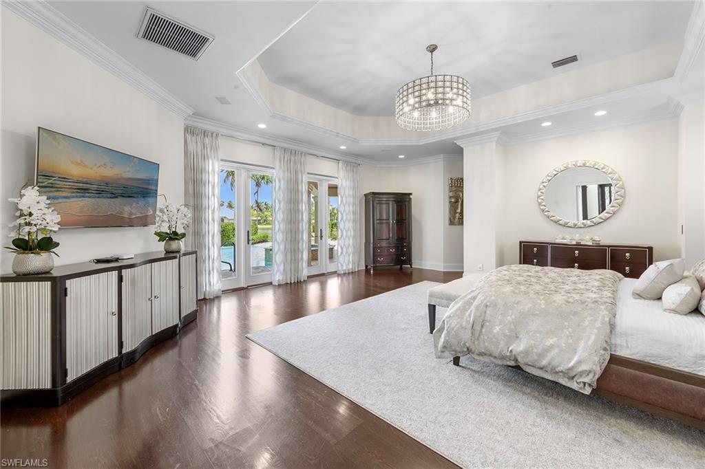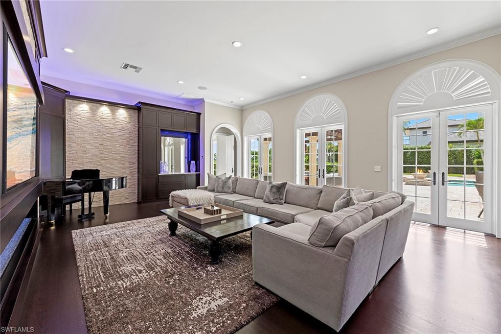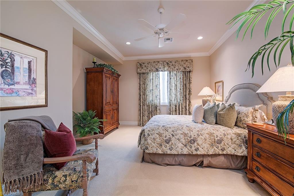 Luxurious estate in Bay Colony Golf! A life of unmatched elegance. On a premier golf course lot within the prestigious, guard-gated Bay Colony Golf Estates, this custom two-story home offers 8,976 square feet of thoughtfully designed living space. With four bedrooms, six baths and a three-car garage, the home blends spaciousness with sophistication. Designed for comfort and style, the residence features a private elevator, home theater, wine closet, multiple wet bars, a custom library, and a gourmet kitchen that opens to expansive indoor-outdoor living areas. High ceilings, quality finishes, and a seamless floor plan create an inviting environment for both everyday living and entertaining. Outdoors, the resort-style pool and spa, covered lanai, outdoor kitchen and private guest cabana provide a peaceful and private setting for relaxation or hosting. As a member of Bay Colony, you'll enjoy exclusive access to the Bay Colony Beach Club, offering beachfront dining, bar service and attended beach amenities. The community also features a private tennis center and is ideally just minutes from The Ritz-Carlton, Naples white-sand beaches, and world-class dining and shopping.