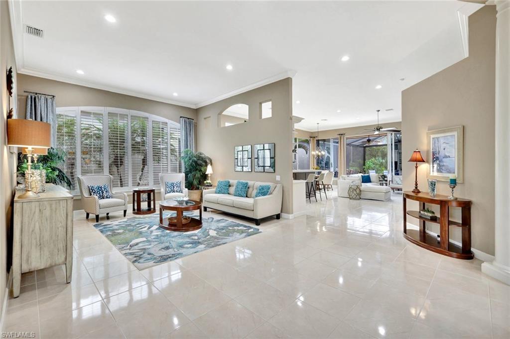 "The One" Awaits You in Portofino in the heart of Pelican Marsh! Welcome to your dream home with breathtaking views overlooking the serene lake and pristine golf course. With over 3,000 square feet of luxurious living space, this home is designed for both comfort and elegance. An Entertainer's Dream featuring expansive living, formal dining and family rooms with powder bath that are perfect for gatherings. Open gourmet kitchen, dinette area, and built-in cabinetry provide functionality, style and extra storage. Two Ensuite Guest Rooms are perfect for family and visitors, each with its own private bathroom. The Den/office is a flexible space designed for productivity or relaxation. Stunning Primary Suite enjoys sweeping views of the lake, pool and spa. The Primary Bath includes an oversized jetted tub, large walk-in shower and dual sinks. Two spacious walk-in closets, plus a linen closet offers generous storage in the Primary Suite. Finally, relax by your pool and spa while enjoying the lush landscaping, golf course lake and peaceful surroundings. LOCATION, LOCATION, LOCATION – A rare gem that offers ultimate privacy and convenience. Don’t miss the opportunity to make this spectacular home yours! Pelican Marsh is one of Naples most desirable communities, located just minutes from pristine beaches, world-class dining, upscale shopping and cultural attractions. Pelican Marsh offers extensive amenities including state of the art fitness facility, casual and team tennis and pickle ball as well as a fantastic al fresco dining and bar at Courtside. Experience the best that Southwest Florida has to offer.