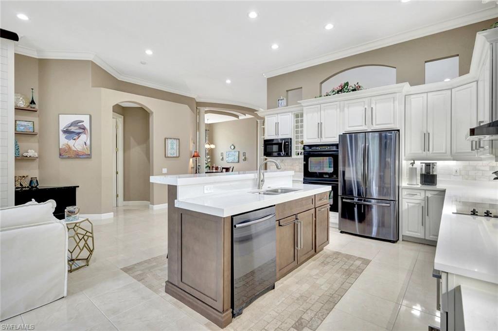 A refined sense of privacy and coastal elegance defines this beautifully reimagined residence at Nine Thousand Nine Terranova Drive, set within the intimate enclave of Terrabella in Pelican Marsh. Thoughtfully curated to enhance both seclusion and effortless entertaining, the home unfolds with an impressive new open kitchen anchored by bespoke cabinetry, a spacious island, Sub-Zero refrigeration, Wolf cooking appliances, and a well-appointed wet bar that seamlessly transitions into the inviting great room. Expansive pocketing glass doors draw the eye to the lush tropical outdoor sanctuary, where a renovated pool and spa are framed by vibrant plantings and serene preserve views, creating a tranquil backdrop for sunset gatherings. A new roof and air-conditioning systems installed in twenty twenty-four elevate the home’s modern comfort, while refined millwork, designer lighting, and curated finishes add depth and sophistication throughout. The private primary suite offers a calming retreat with dual custom closets, a spa-inspired bath, and direct access to the lanai. Two guest en-suites provide exceptional comfort for visitors, and the dedicated office or den with double door entry and tailored built-ins offers an elegant environment for work or quiet reflection. Within Pelican Marsh, residents enjoy a prestigious setting complemented by premier amenities, including Har-Tru tennis courts, pickleball, bocce, a state-of-the-art fitness center, and the popular Courtside Restaurant. Membership at the acclaimed Robert von Hagge–designed Pelican Marsh Golf Club is available but not required. The location places you moments from Naples’ celebrated Gulf beaches, Waterside Shops, Mercato, and the cultural offerings of Artis–Naples. Here, refined design, modern upgrades, and a coveted Pelican Marsh address come together to offer an elevated Naples lifestyle. Discover a residence that feels both luxurious and effortlessly livable.