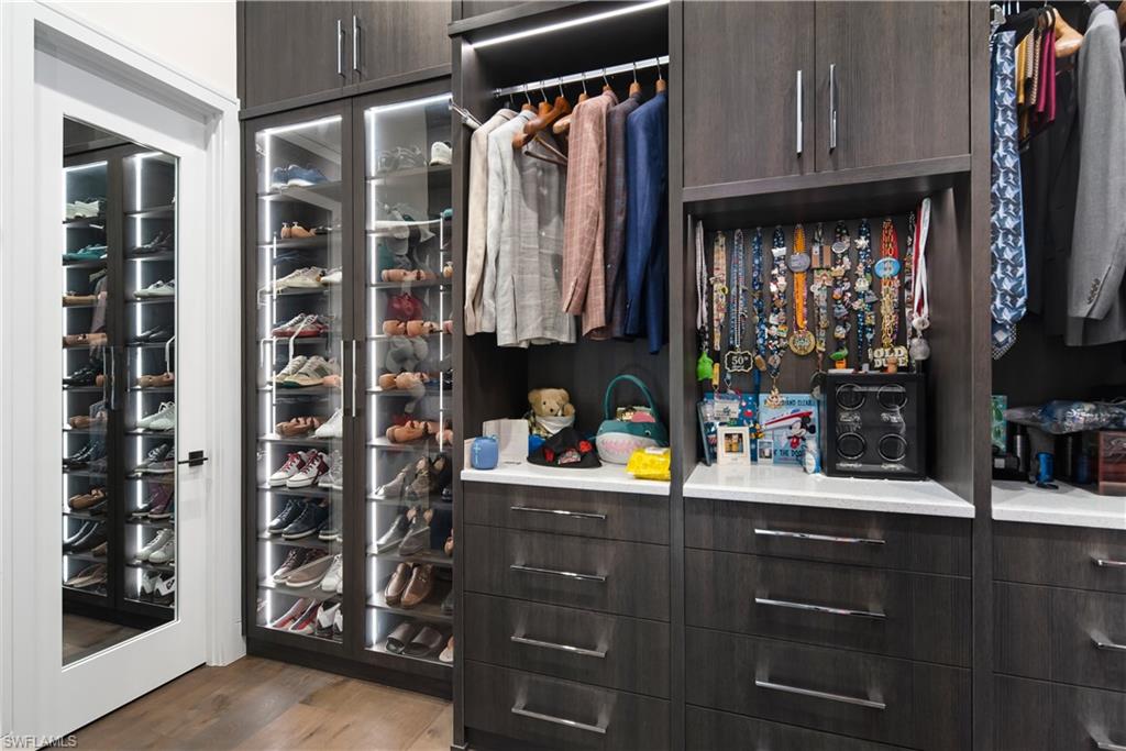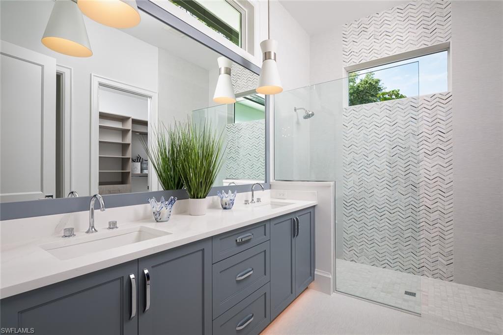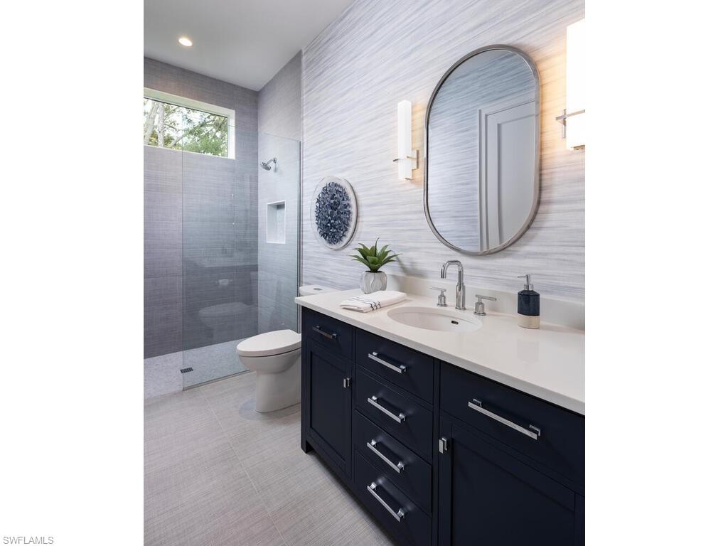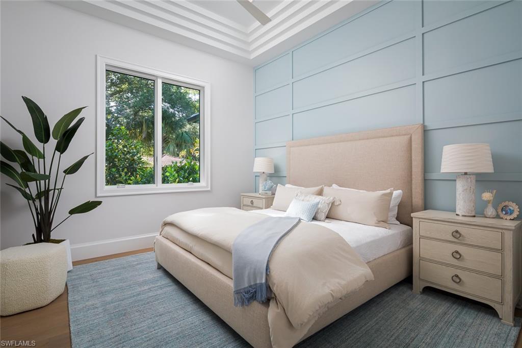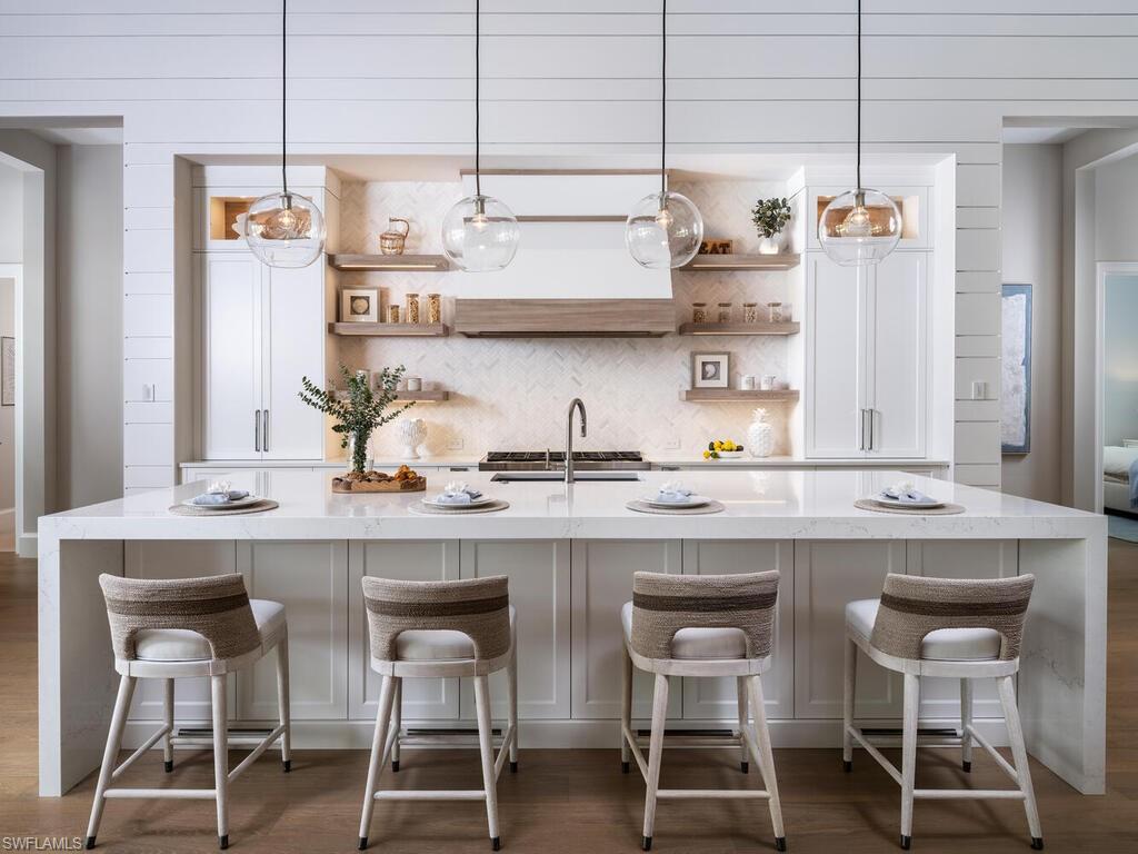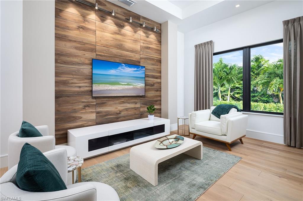 Discover a new standard of sophistication at 445 West Street, an exceptional custom-built residence that redefines the art of living in the heart of Naples. Nestled on a pristine 1.2-acre corner lot, this brand-new estate offers unparalleled privacy, seamlessly blending meticulous craftsmanship with timeless elegance. Upon arrival, you are greeted by meticulously landscaped grounds and a fully fenced perimeter, setting the stage for the architectural brilliance within. This 5-bedroom, 5-full-bath, and 1-half-bath residence is designed with the utmost attention to detail, incorporating a versatile den, a flex room, and expansive living spaces to meet every modern need. The home’s open-concept layout boasts exquisite finishes, from intricate coffered ceilings and mosaic tile accents to rich white oak wood floors and custom cabinetry. Chic light fixtures and hardware further elevate the space, creating an atmosphere of elegance at every turn. As you step into the grand foyer, your eyes are immediately drawn to breathtaking views of the saltwater pool, spa, and fountain, offering a serene and inviting backdrop. To the right, the primary suite is a true retreat, offering a spa-like bath, oversized closets, and a private office for moments of inspiration and productivity. To the left of the foyer, the great room elegantly combines the living, dining, and kitchen areas – a space designed for both grand entertaining and intimate gatherings. The gourmet kitchen is a culinary dream, featuring top-tier appliances, a gas range, and stunning Cambria quartz countertops. Custom cabinetry, a walk-in butler’s pantry, and a striking backsplash add both form and function. The adjacent dining area, with its floor-to-ceiling wine display, invites guests to indulge in fine dining while taking in the views. A sun-drenched breakfast nook overlooks the lanai, where the indoor-outdoor flow is seamless. Step outside into the expansive outdoor living area, designed for entertaining with a fully equipped summer kitchen. Positioned to capture the stunning western exposure, this private oasis offers panoramic views of Naples’ celebrated sunsets. For ultimate relaxation, the property features a sauna adjacent to the pool bath, providing a sanctuary to unwind and recharge. Surrounded by lush greenery, this residence offers the rare combination of privacy, tranquility, and the convenience of being moments from all the luxury Naples has to offer. At 445 West Street, the ultimate blend of unparalleled luxury, timeless design, and natural beauty awaits you.