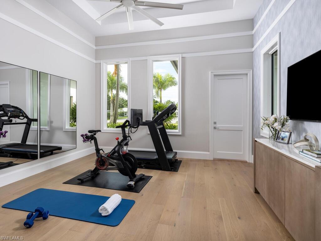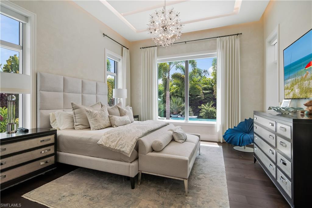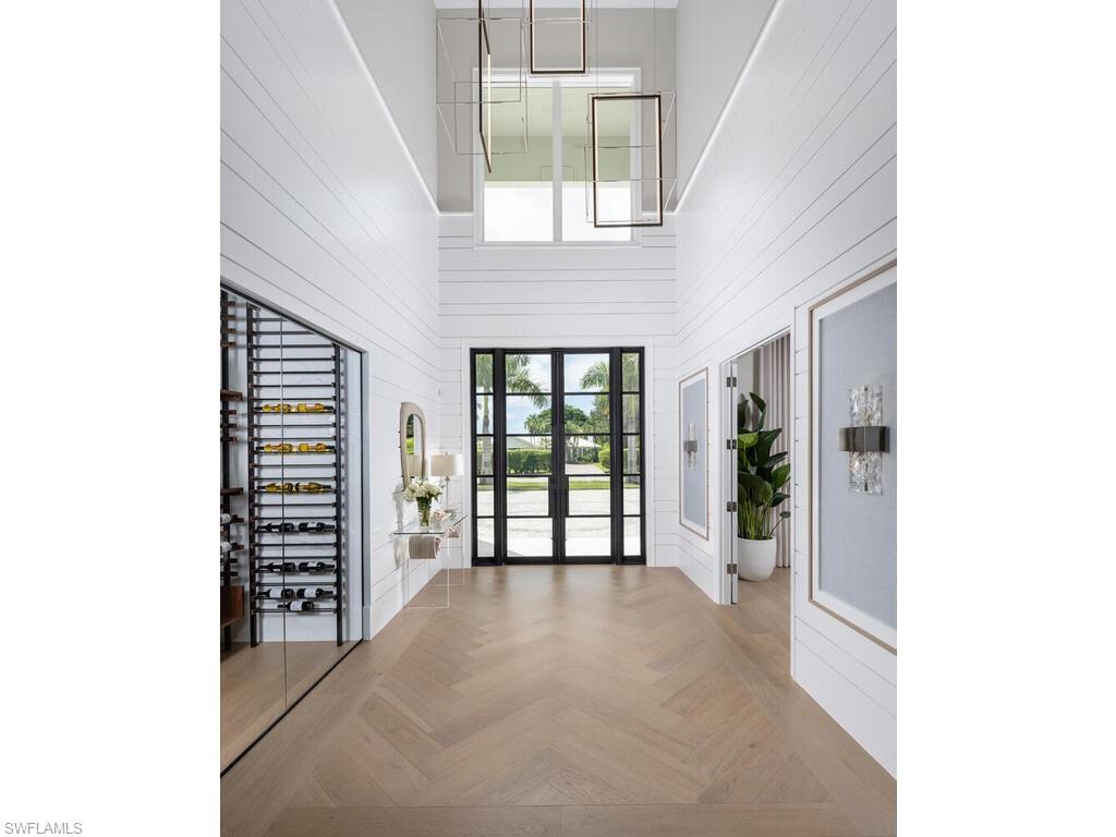 Top-of-the-line upgrades and high-end features have shaped this Naples home into a luxurious haven you'll want all for yourself! Experience idyllic indoor-outdoor entertaining across its two-level layout, from the fireplace-adorned great room under soaring ceilings to the chandelier-lit formal dining area and large covered patio overlooking the backyard sanctuary. A chef's dream come true, the gourmet kitchen highlights Sub-Zero and Wolf appliances, a Miele coffee machine, LG dishwasher, walk-in pantry, a built-in buffet, and an oversized island. Delight your guests with selections from the temperature-controlled wine cellar, movie nights in the soundproofed home theater with surround sound and a 4K HD projector, or a friendly billiards match in the game room. Comfort awaits in the five upper-level bedrooms, including a secondary suite and another with a mini wet bar. Enjoying its own wing on the main level, the primary suite has a private office, a sitting area next to bay windows, an oversized walk-in closet, and a beautifully remodeled bath. Admire the water views from the three balconies or the expansive backyard with a pool and guest cabana with a full bath. Other notable features include a brand-new roof, sauna, outdoor shower, remodeled laundry room with a brand-new LG washer/dryer, two remote-controlled entry gates, and peace of mind knowing the home is situated in the X500 flood zone. Moments away from Waterside Shops, Mercato, downtown Naples, and the beach, this opulent gem really does have it all. Come for a tour while it's available.